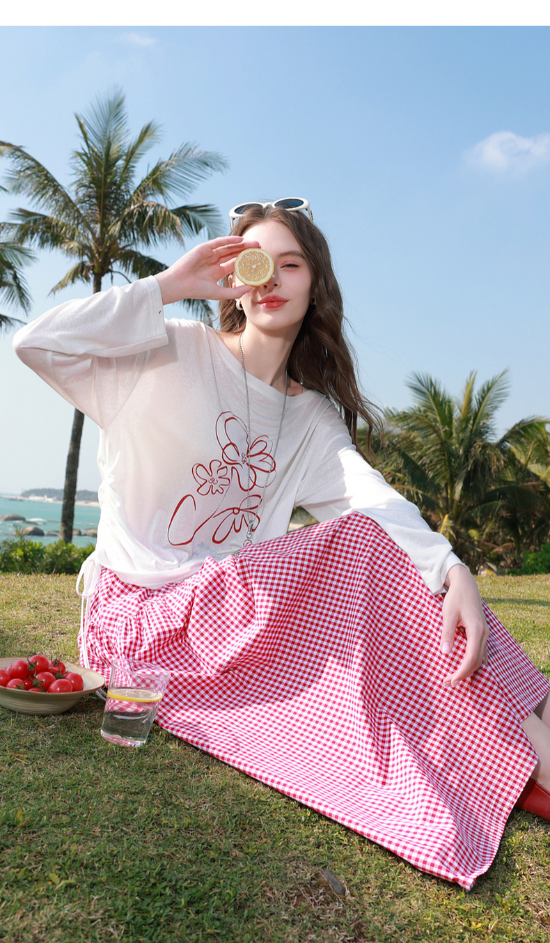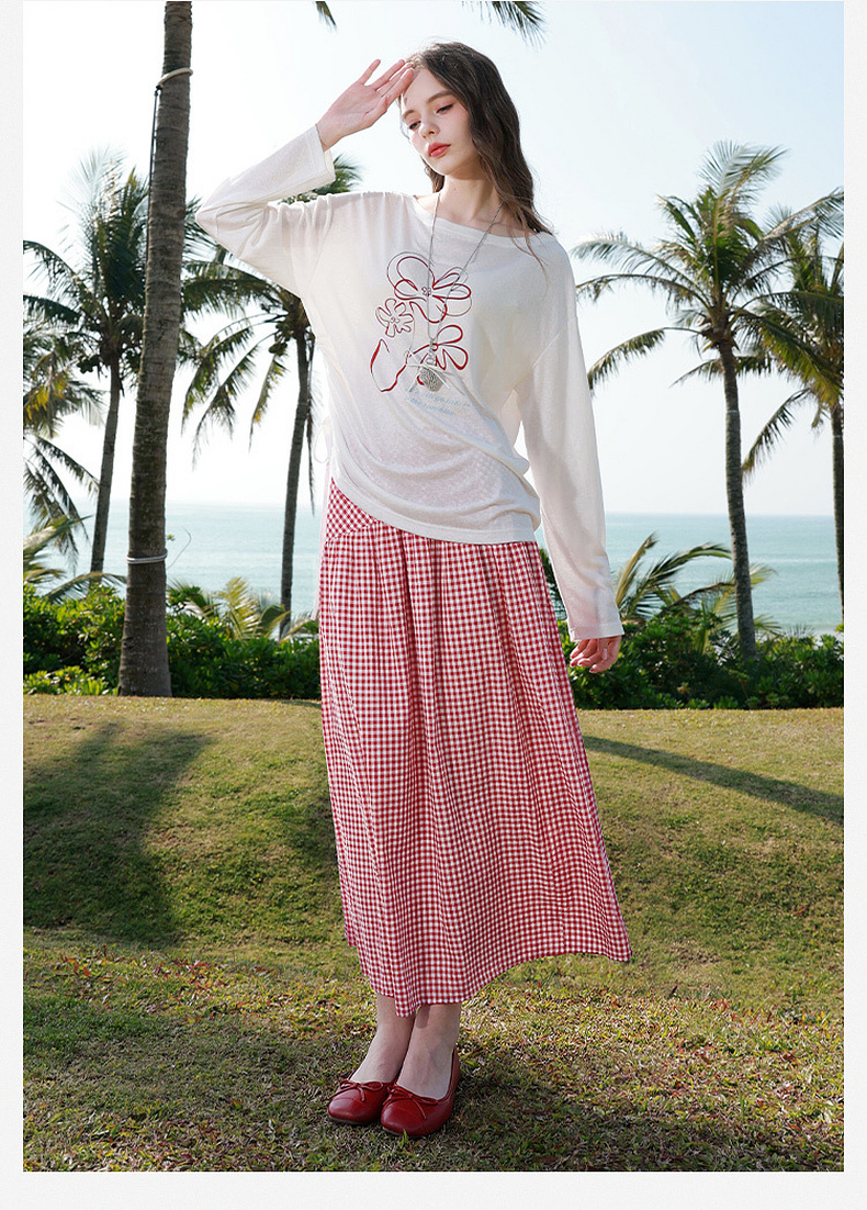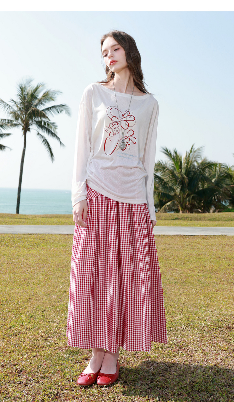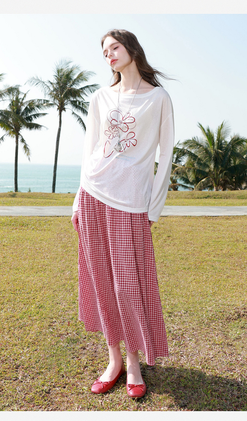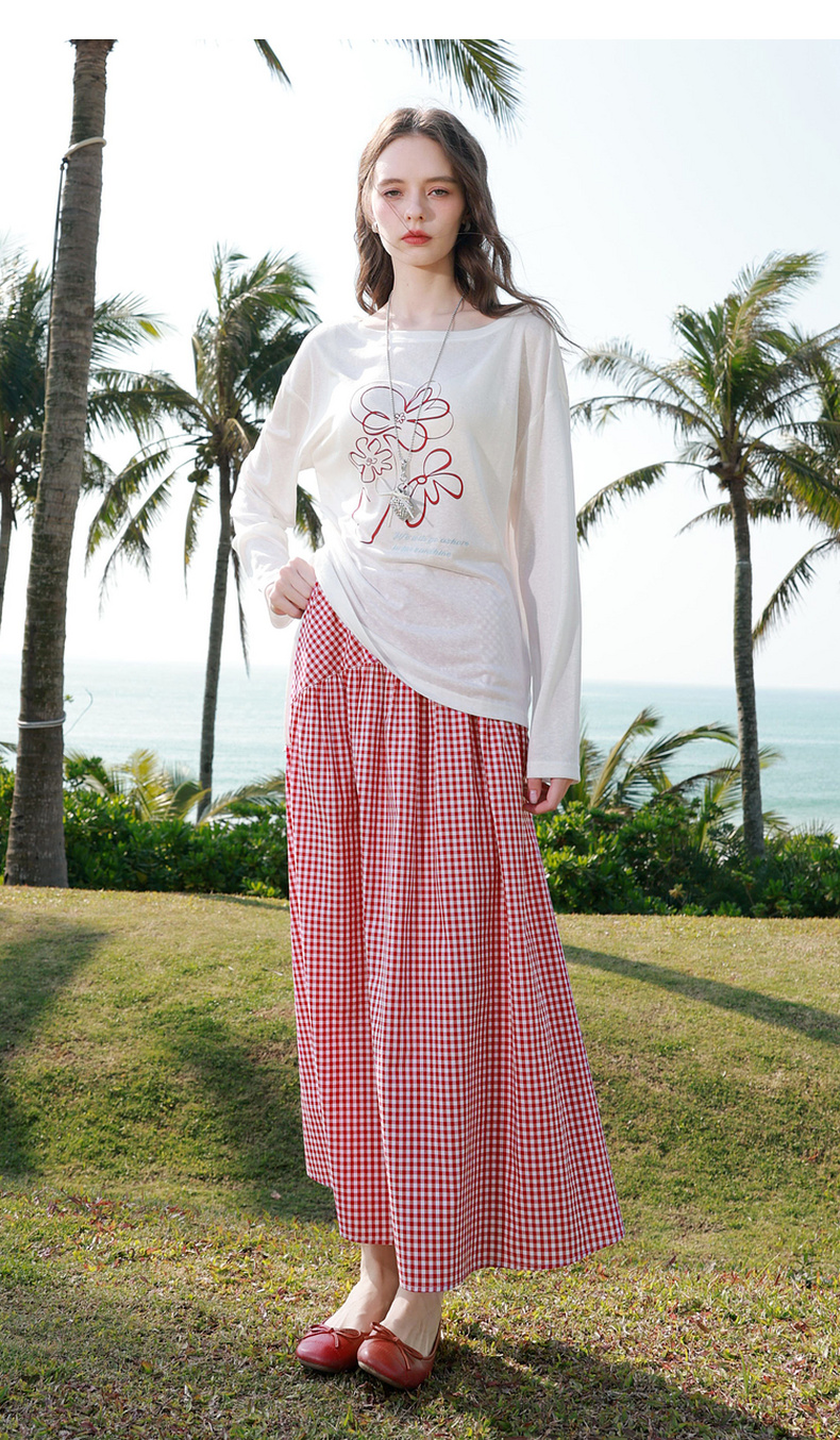 【100棉】三彩2026春季新款高腰半身裙格纹A字裙设计感长裙显瘦M