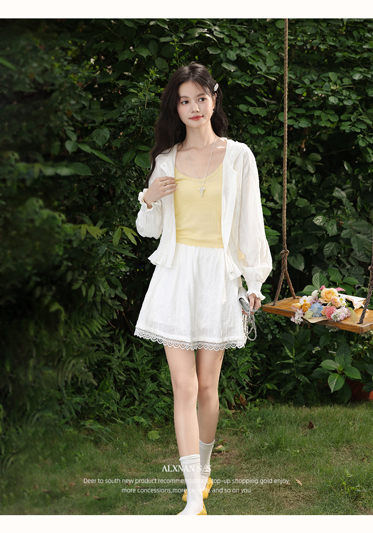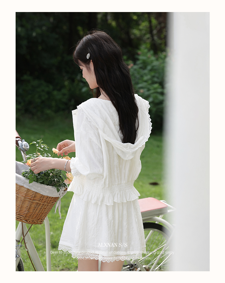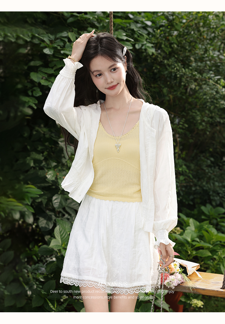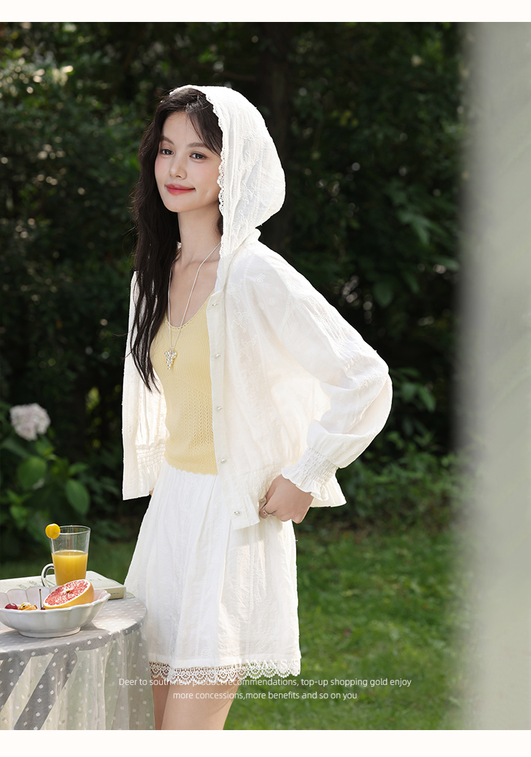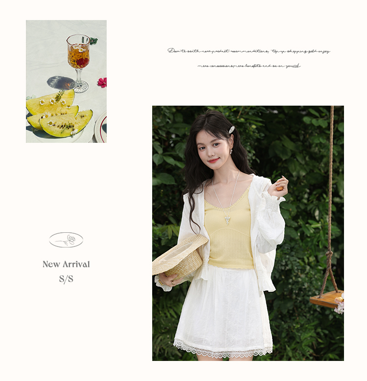 鹿向南「轻氧假日」米白色半身裙女夏刺绣蕾丝拼接小个子高腰短裙