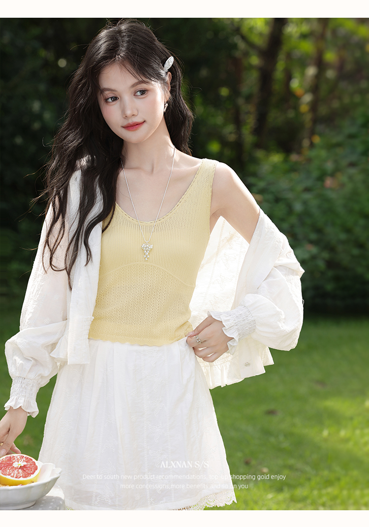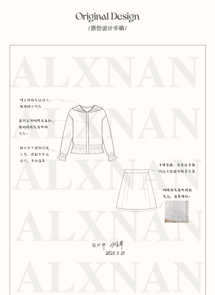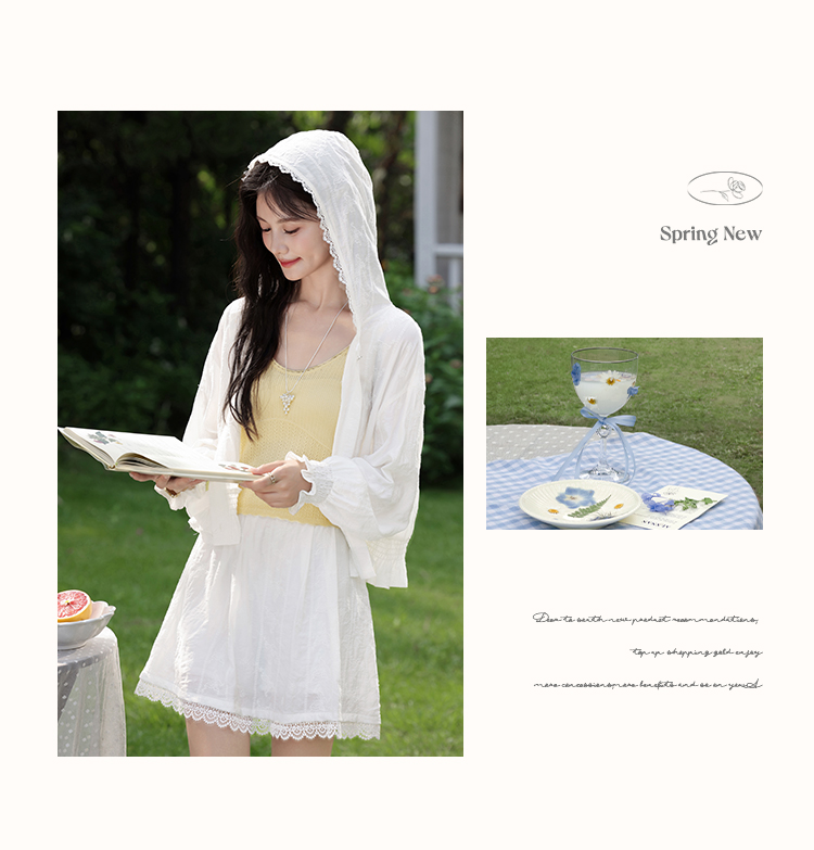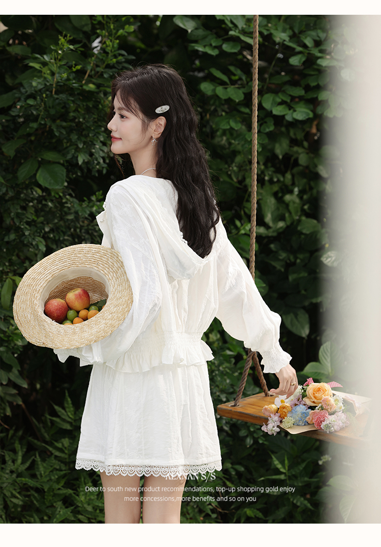 鹿向南「轻氧假日」米白色半身裙女夏刺绣蕾丝拼接小个子高腰短裙