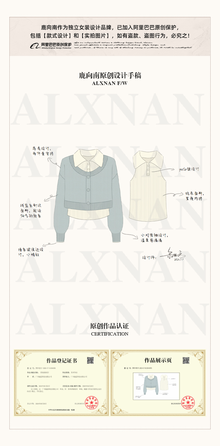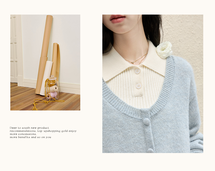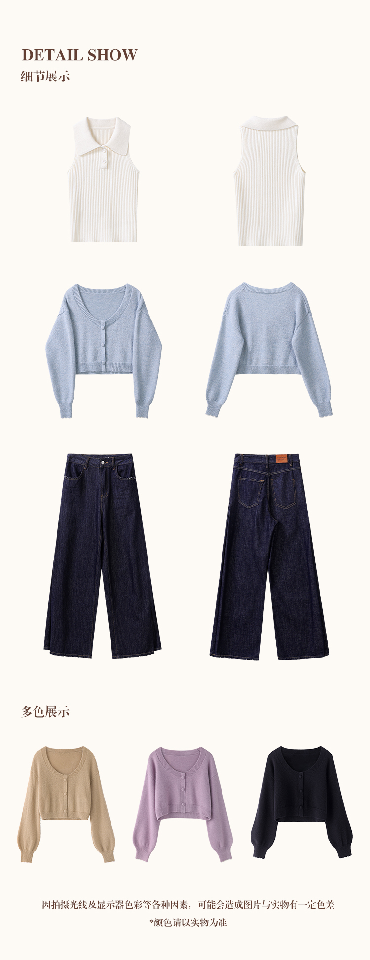 鹿向南「陷进温柔」蓝色针织毛衣女早秋新款杏色无袖背心时尚套装