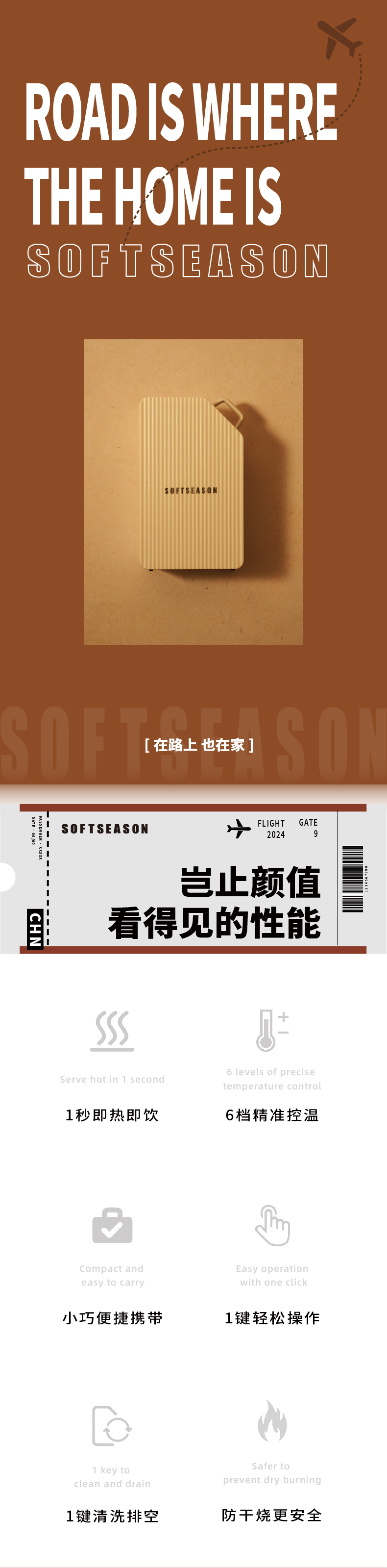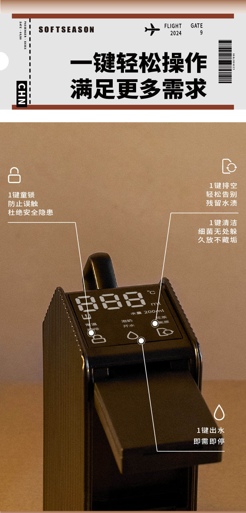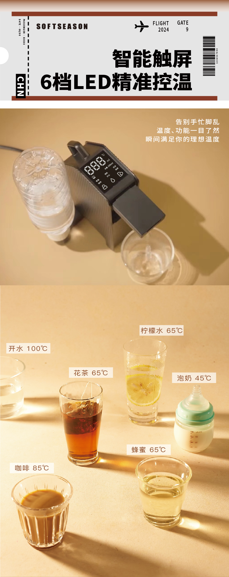 softseason便携式烧水壶 台式迷你即热饮水机家用办公旅行热水神器