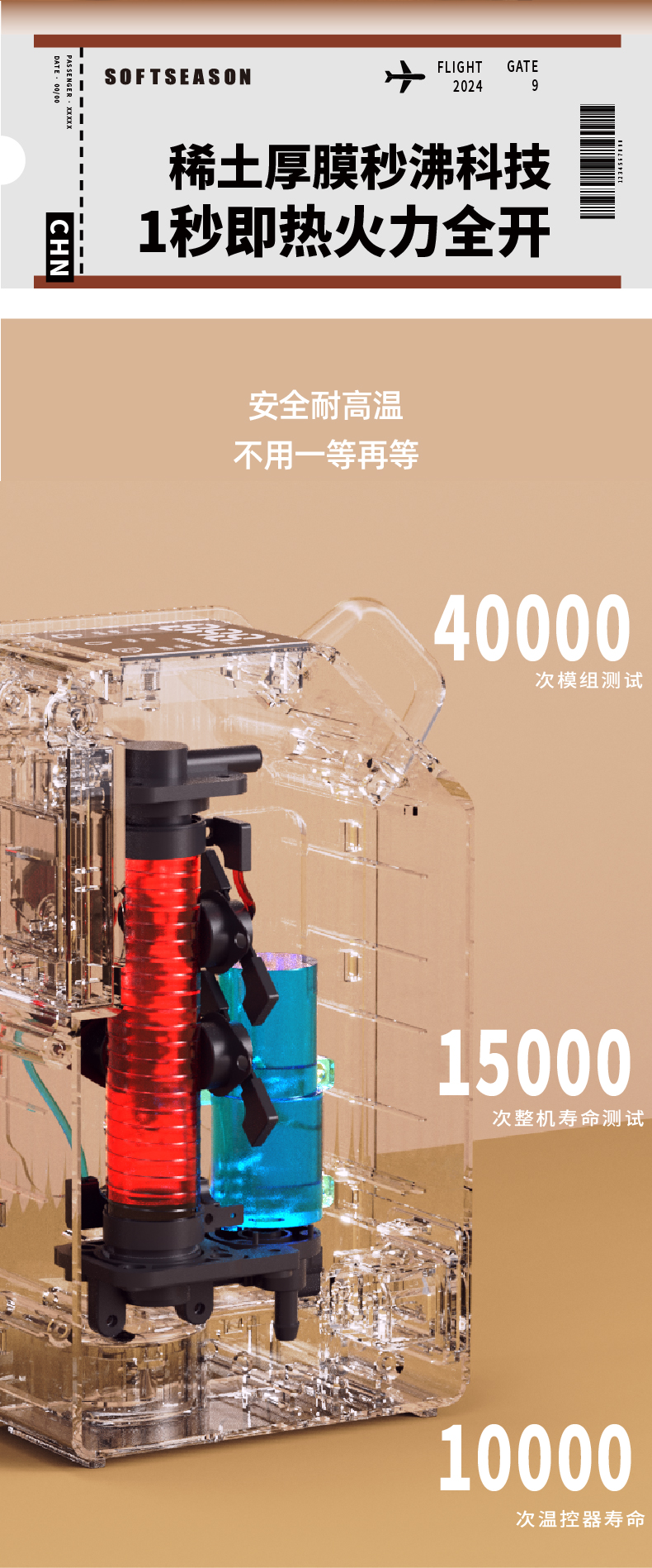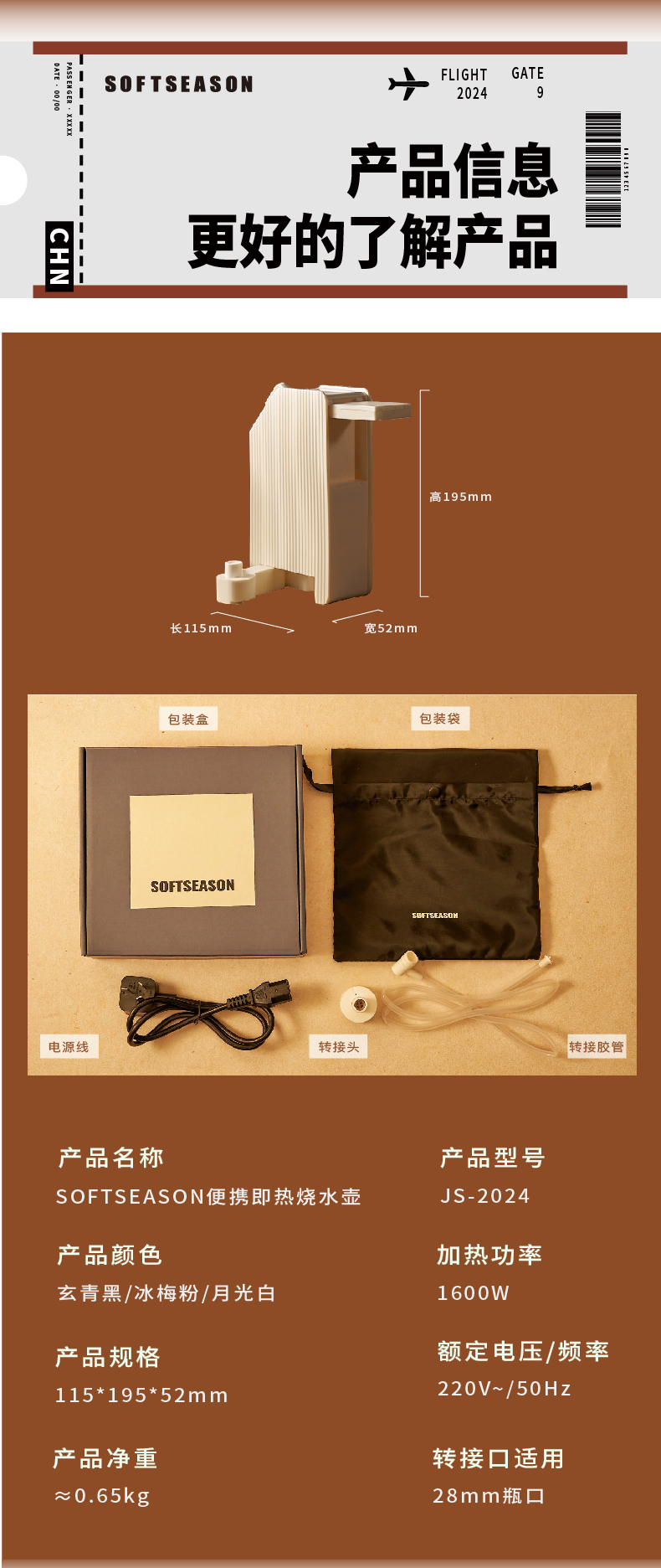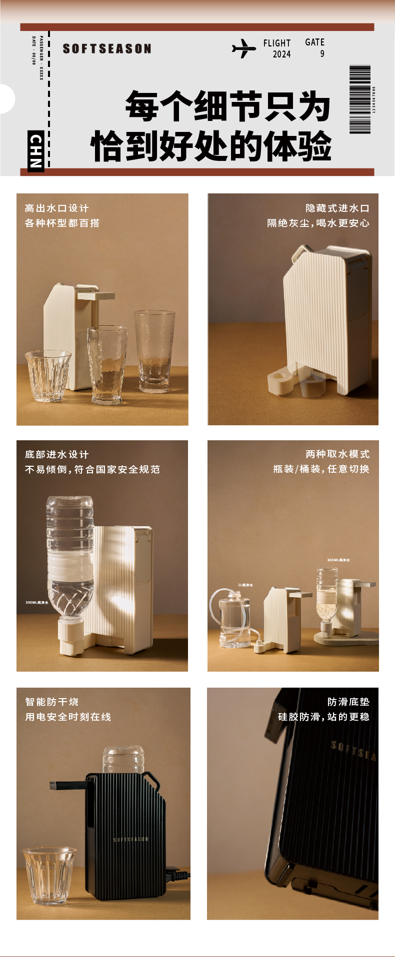 softseason便携式烧水壶 台式迷你即热饮水机家用办公旅行热水神器