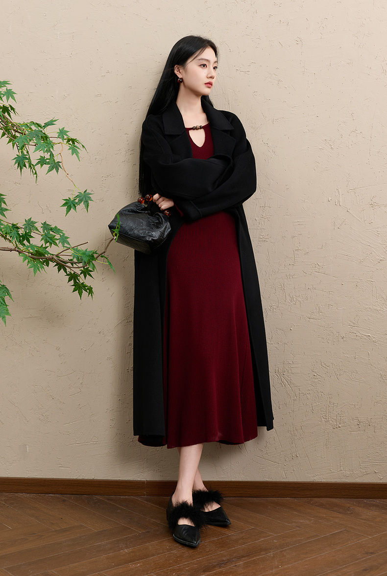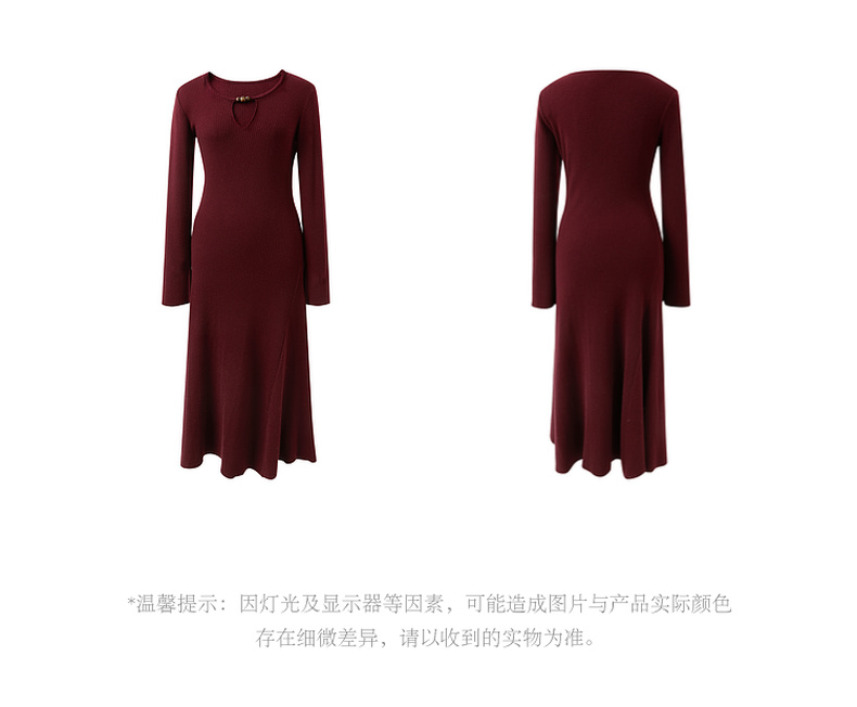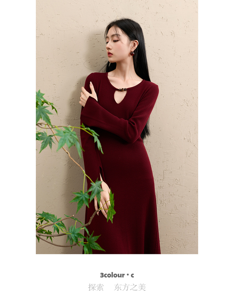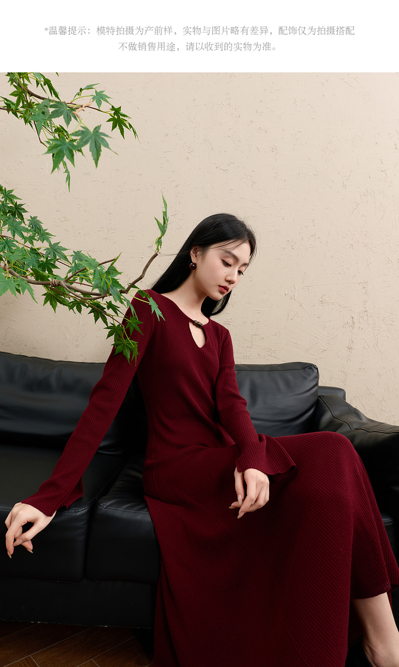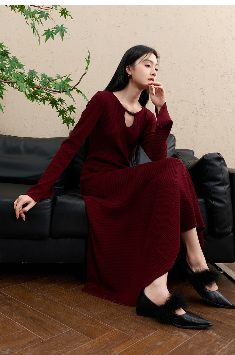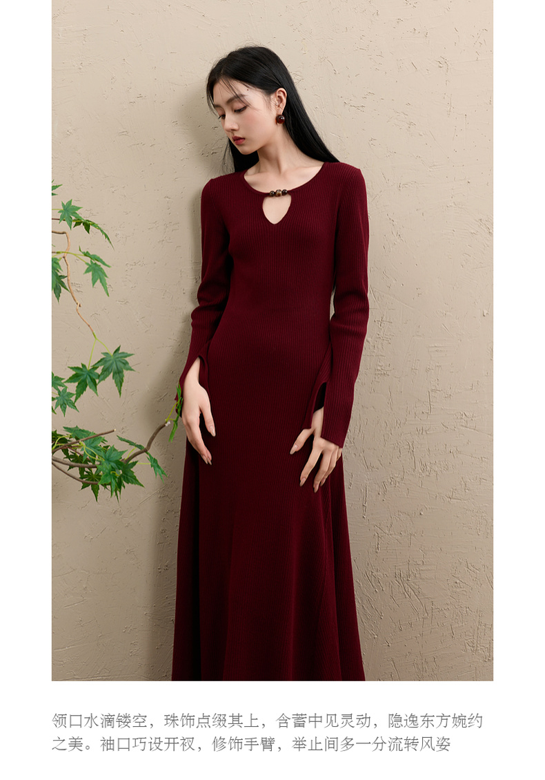 【社群秒杀】三彩【红尘悠悠】2025冬季新款坑条针织裙镂空连衣裙长裙C