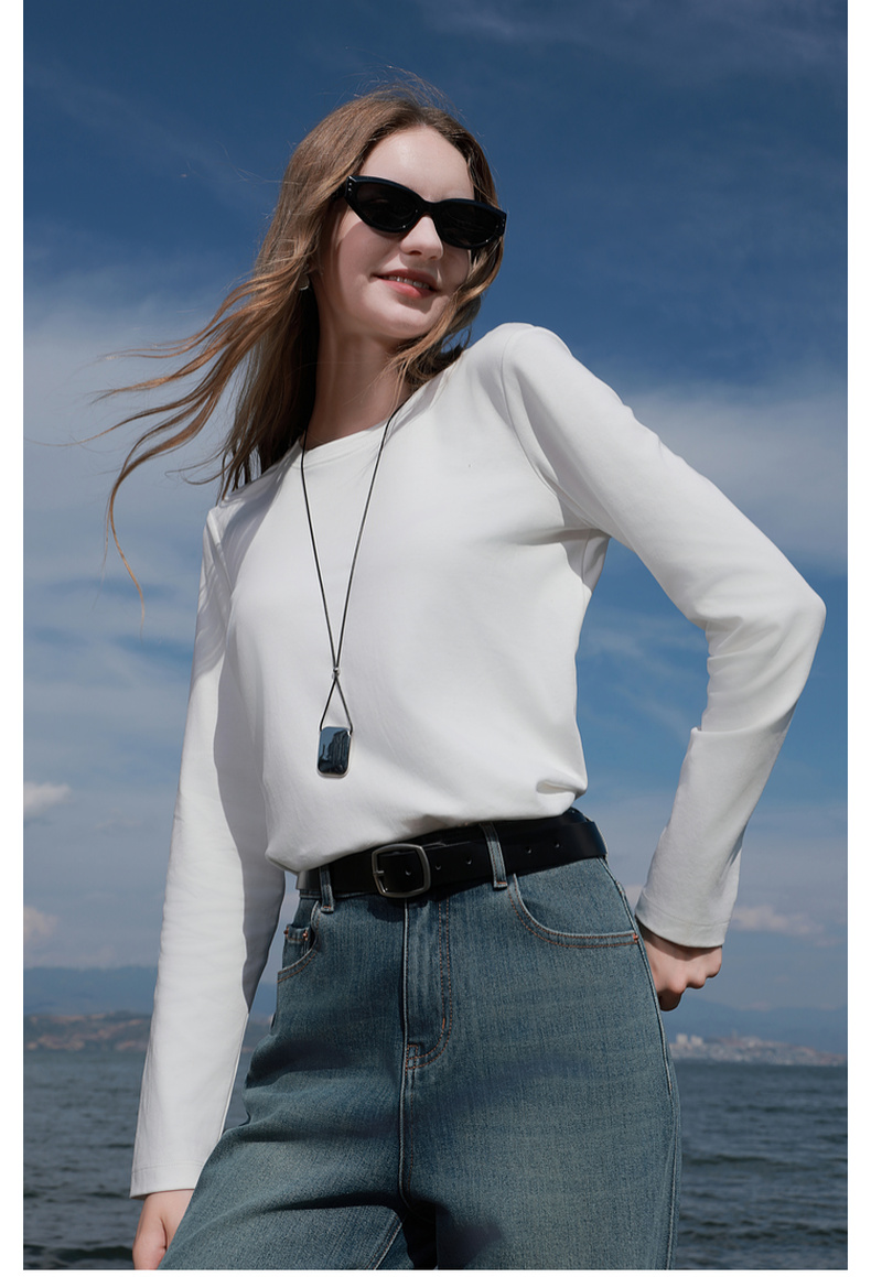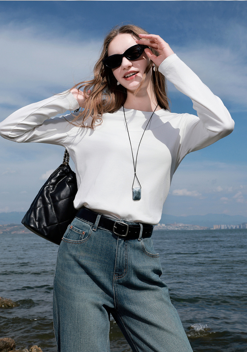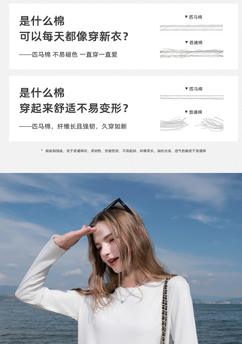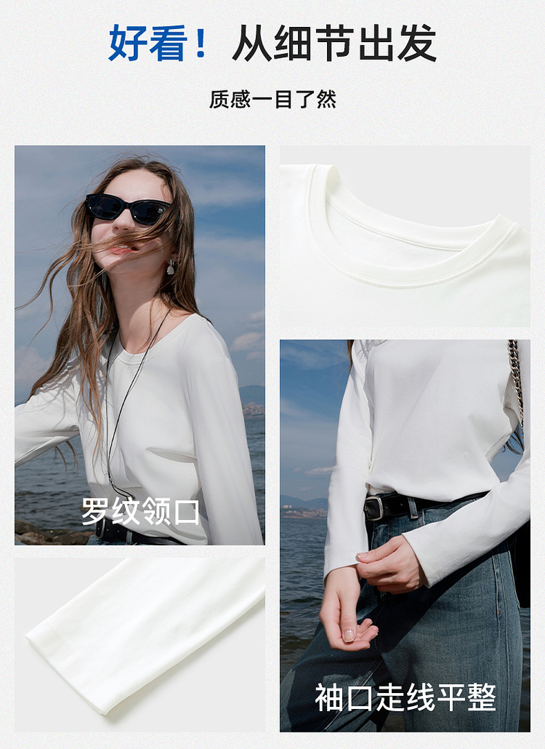 【匹马棉】三彩2026春季新款纯棉T恤圆领正肩长袖内搭Z