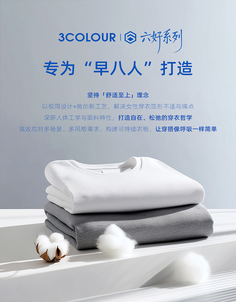 - 3COLOUR,一直致力于探索自我与时尚审美,用穿衣哲学折射生活主张,在流动中探寻恒久。