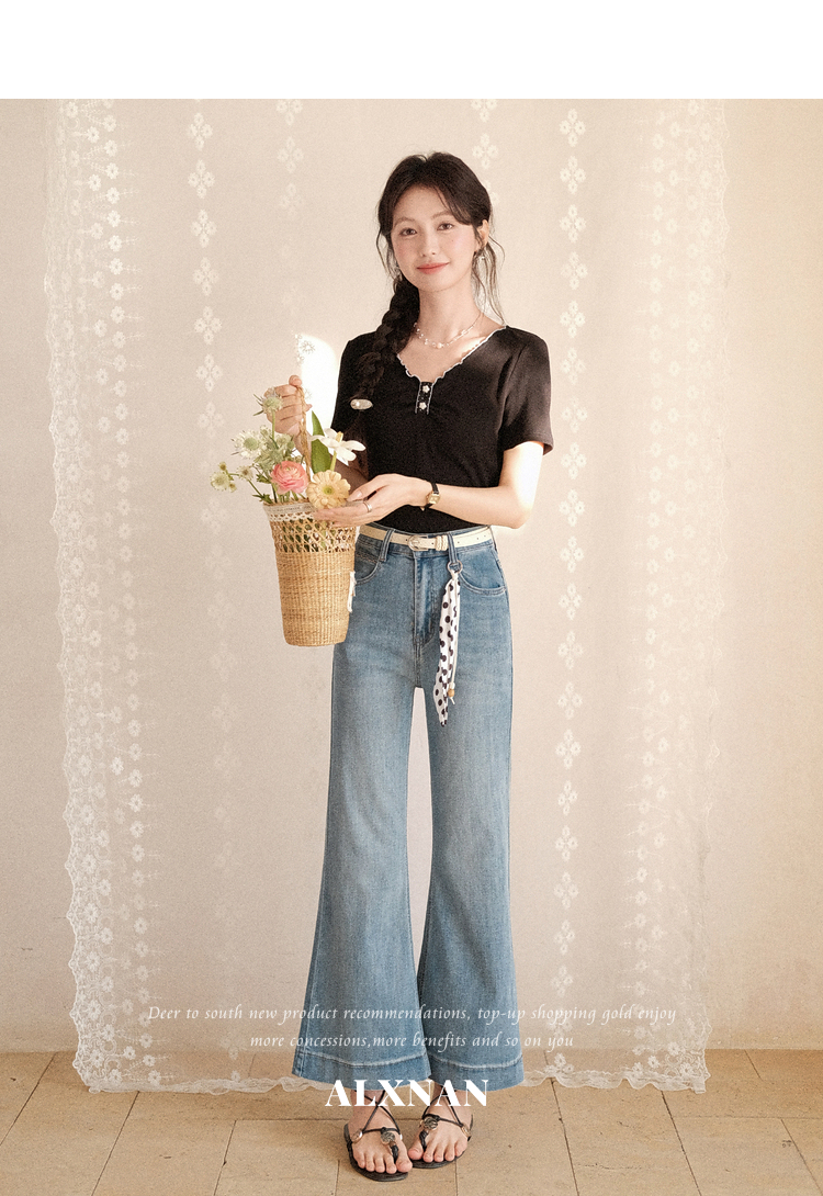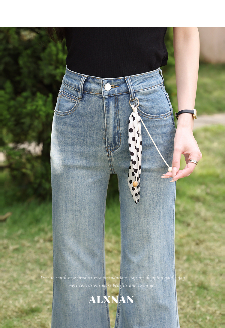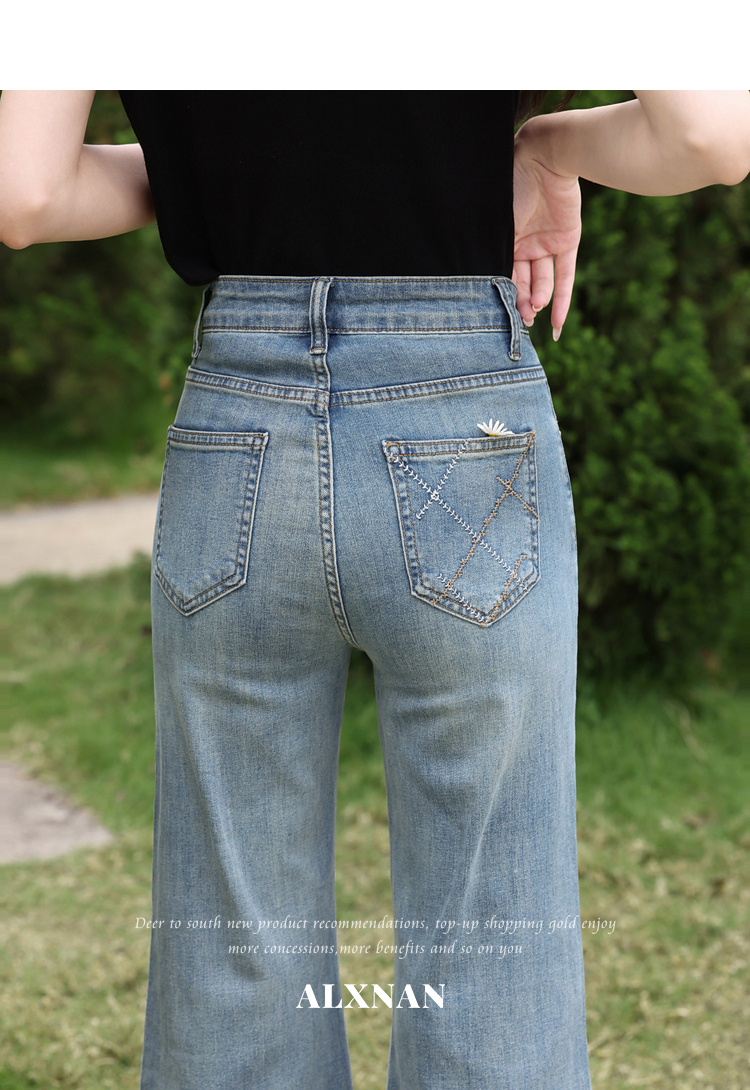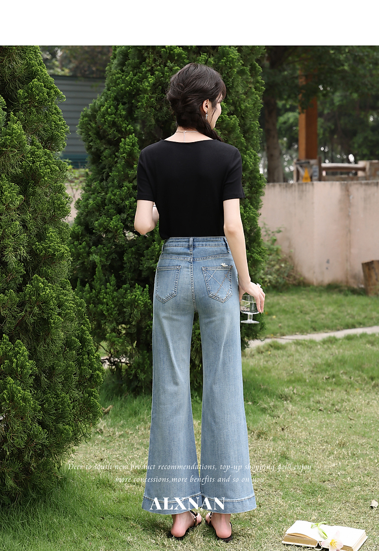 鹿向南【0417/20:00新品前1小时7折限量100件】微喇蓝色牛仔裤女