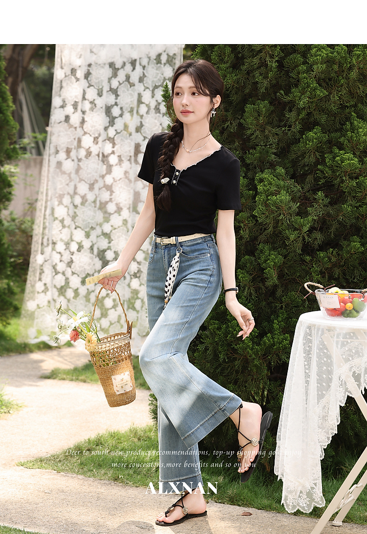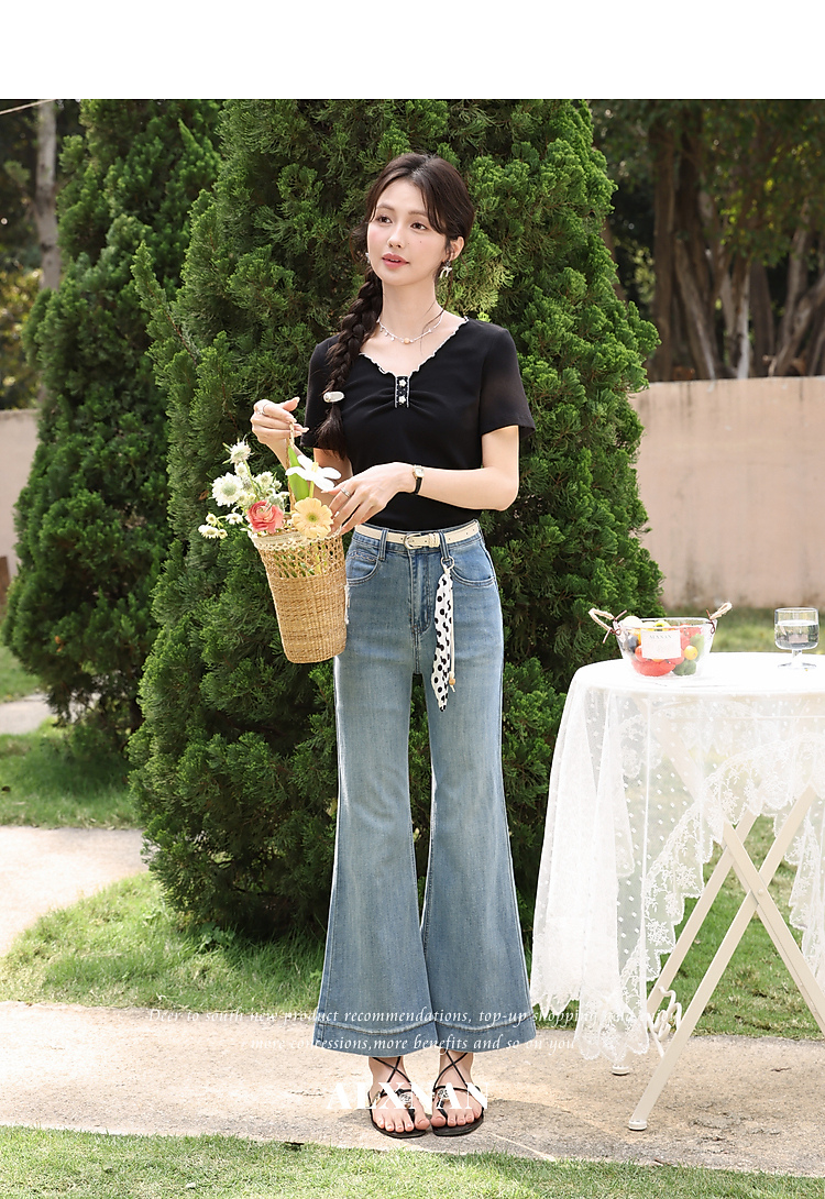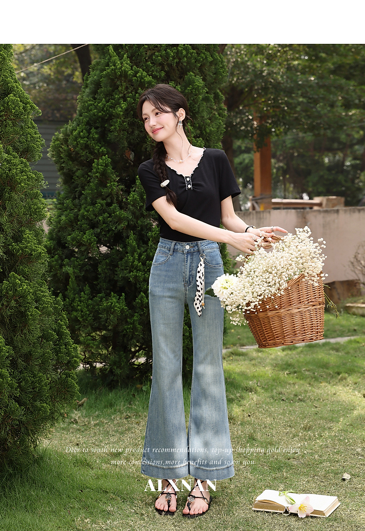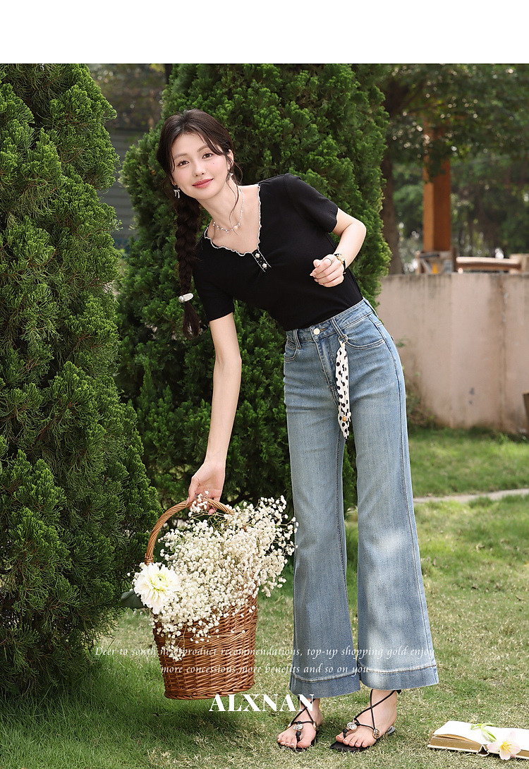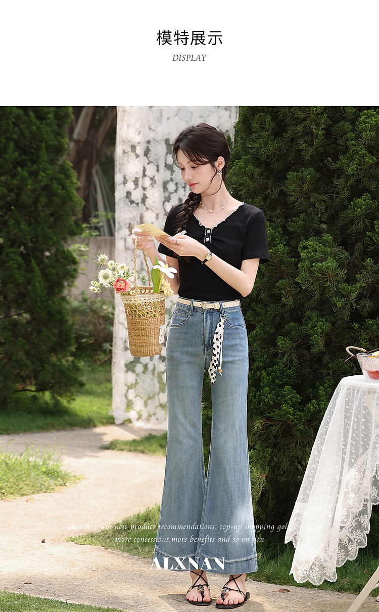 鹿向南【0417/20:00新品前1小时7折限量100件】微喇蓝色牛仔裤女