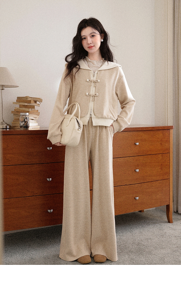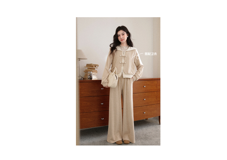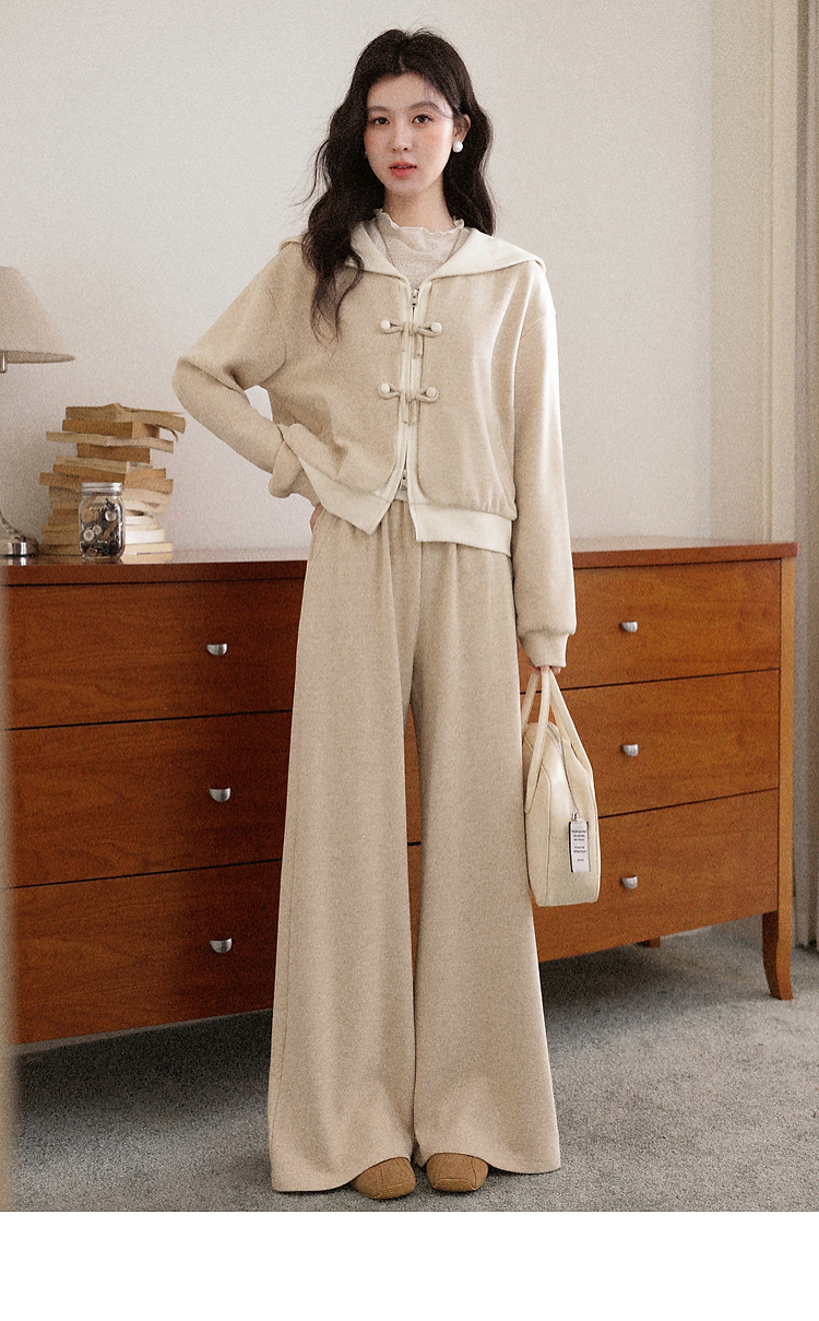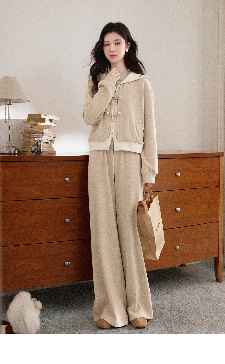 鹿向南「慵懒手账」燕麦色休闲裤秋冬新款高腰直筒宽松百搭裤子女