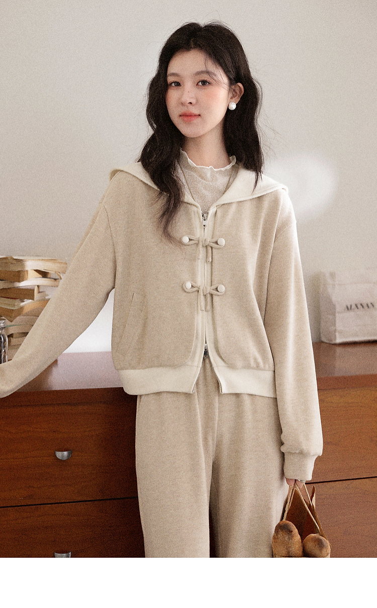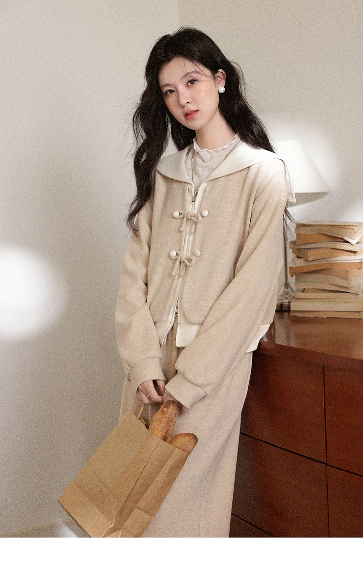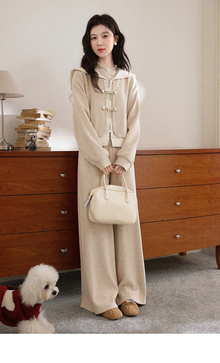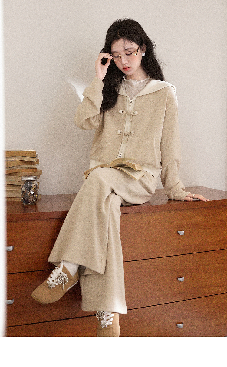 鹿向南「慵懒手账」燕麦色休闲裤秋冬新款高腰直筒宽松百搭裤子女