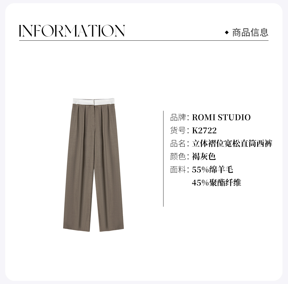 ROMI STUDIO 立体褶位宽松直筒慵懒感西裤女肌理感显高显瘦K2722