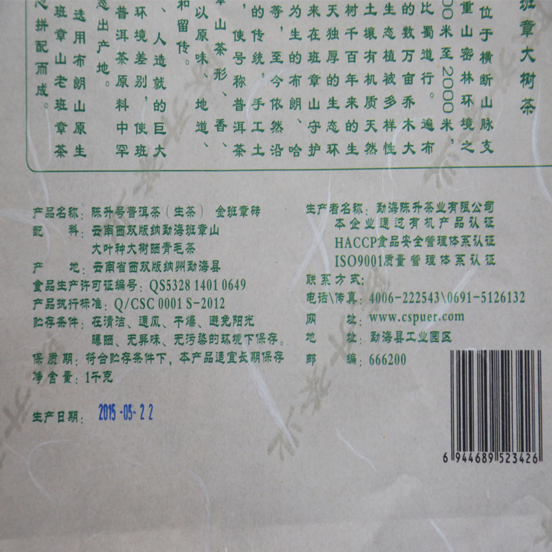 【品鉴装】陈升号2015年金班章7g(生茶)