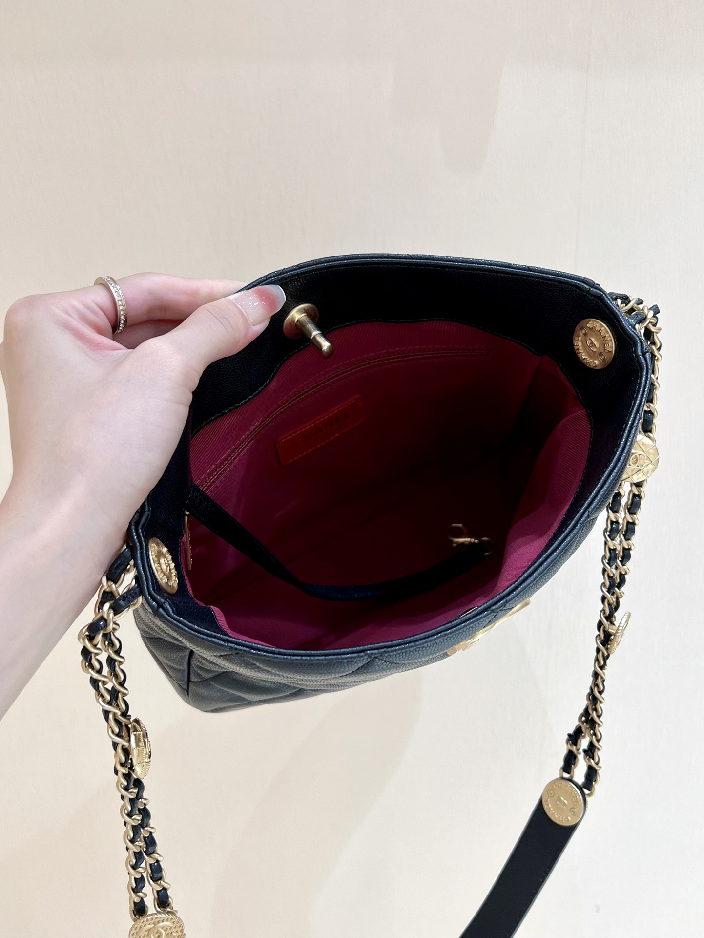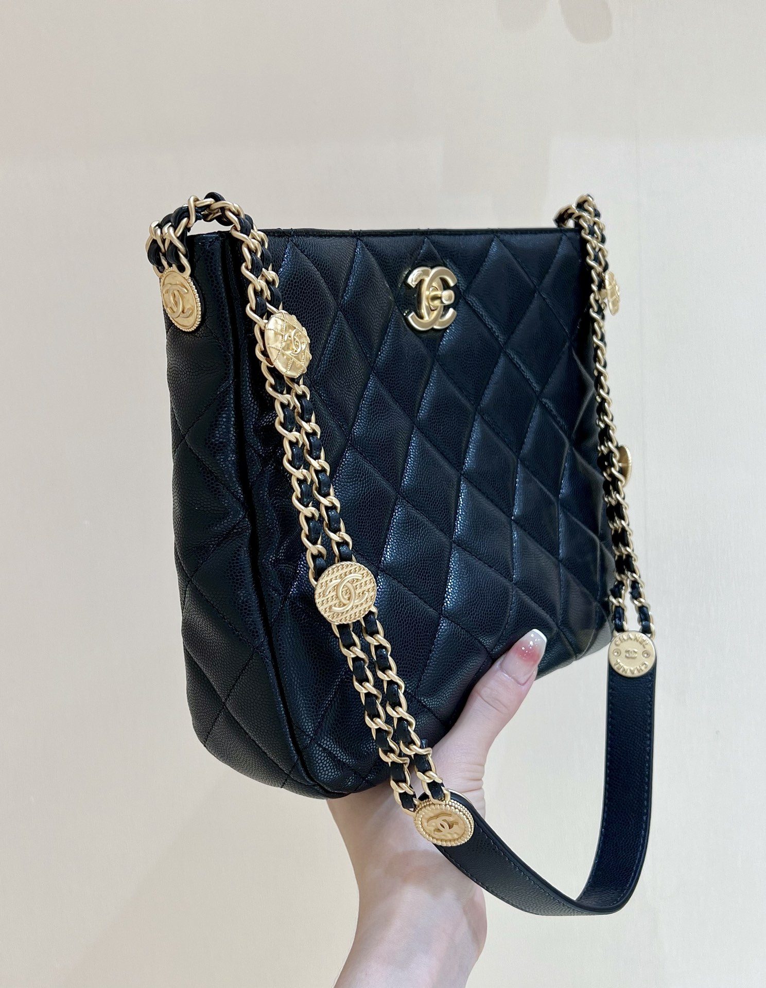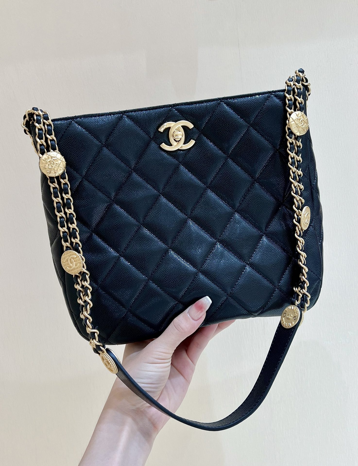 出货啦[庆祝][庆祝] 22A 高级手工坊系列[愉快]金币hobo腋下包 ZP 32500元购入 小香幸运金币包一直都是抢爆的款式,专柜真的超级难买[流泪]一个包就有十枚幸运金币,上身绝对酷爆,自重也不重哦!经典嬉皮包版型无需介绍[愉快][愉快]还是最最贴心的荔枝牛皮! 编号AS3400 尺寸21*25*7.5cm