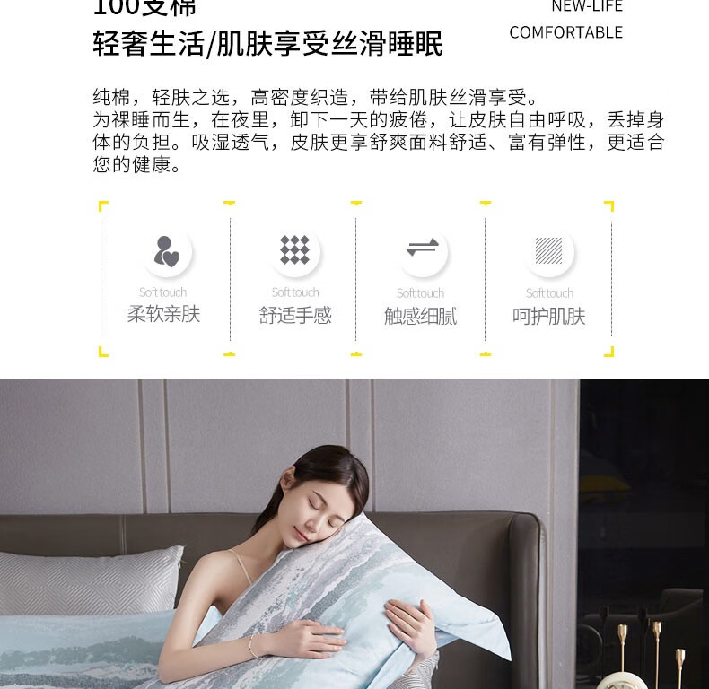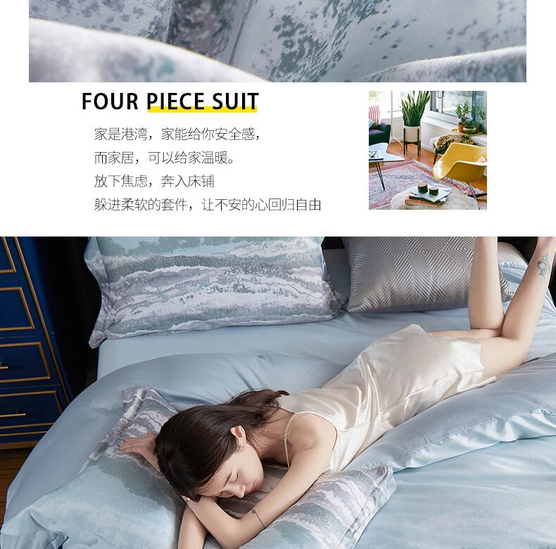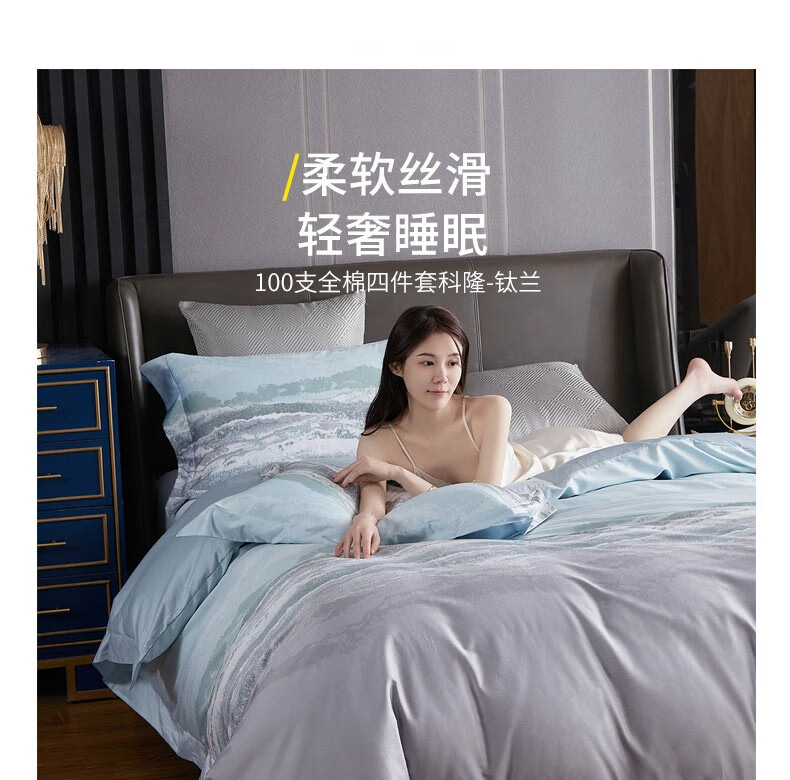 恒源祥(HYX)礼业TBK3016全棉四件套科隆太空灰 科隆-钛蓝 220*240