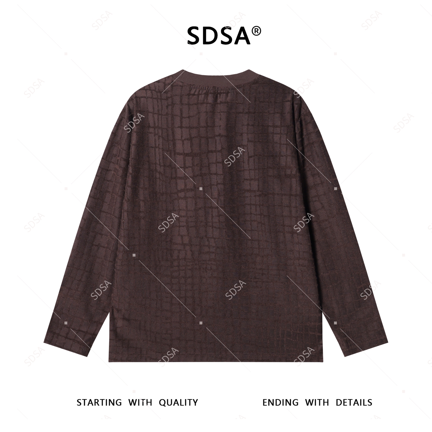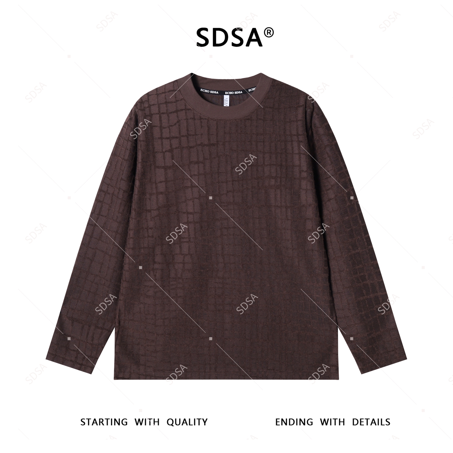 T4648SDSA男士秋冬新款轻奢痞帅男装美式格纹格子圆领长袖T恤复古百搭