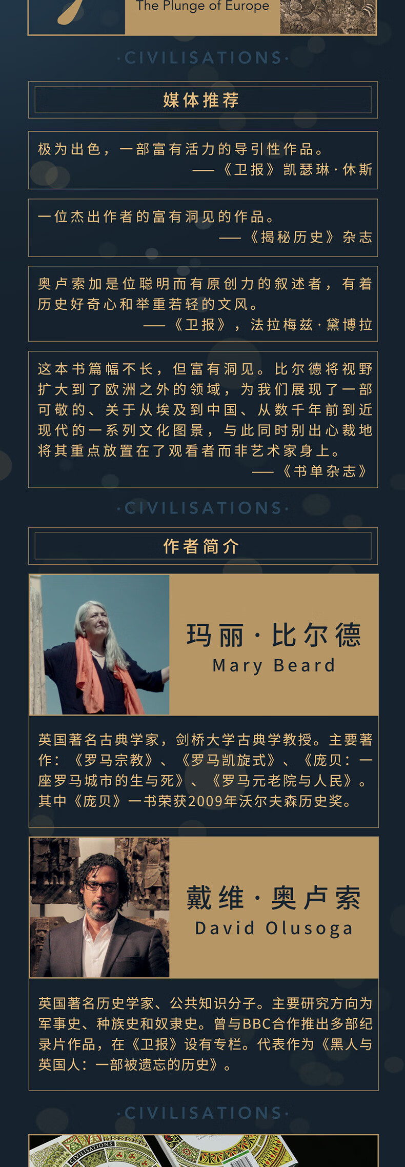 《文明 II》奥卢索加将目光投向了15世纪“地理大发现”时代之后,西方文明与世界其他地区文明相遇时在文化领域发生的冲突和交融。之前,人们对这段历史所做的叙事经常流于简单化,而奥卢索加用丰沛的史料和雄辩的论述告诉我们,故事远非如此简单。在两个乃到多个文明交会之时,发生了各种各样无法被归入这些宏大叙事的奇妙反应,其后果经常是每个文明都从中得到了一点新的东西。在这个全球化时代,所有文明都需要处理外来的异质元素带来的威胁和机遇,同时也都在不断吸纳他者,也不断被他者改变着。