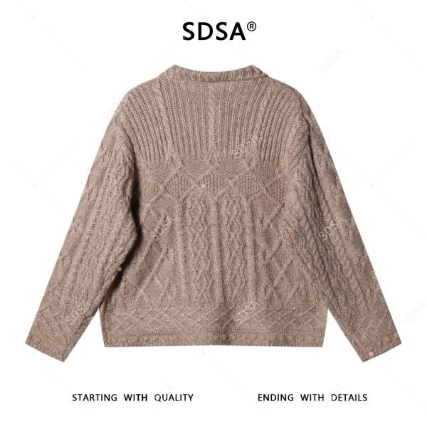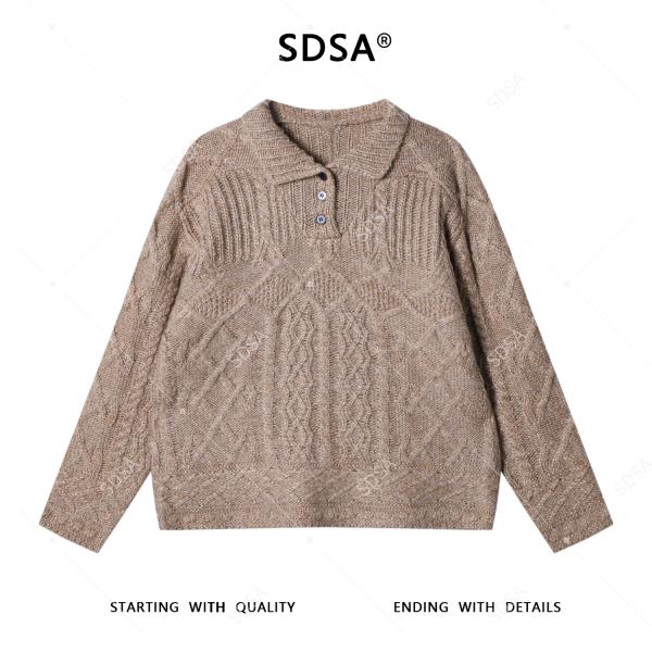 9925SDSA男士秋冬新款痞帅男装复古纽花polo领针织衫慵懒风百搭毛衣