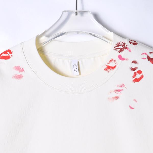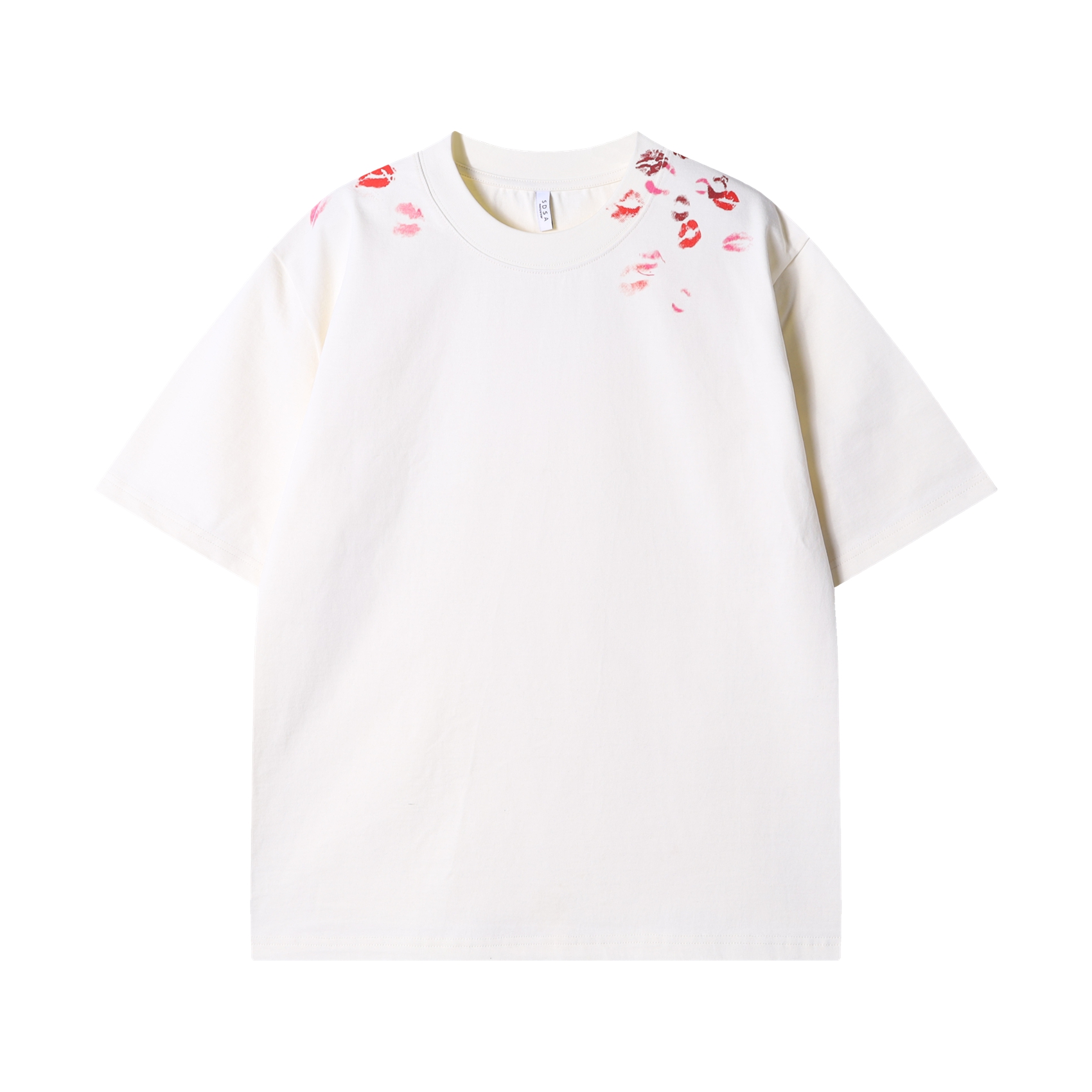 T2189早春新款时尚个性美式红唇印花圆领短袖T恤小众设计纯色百搭上衣
