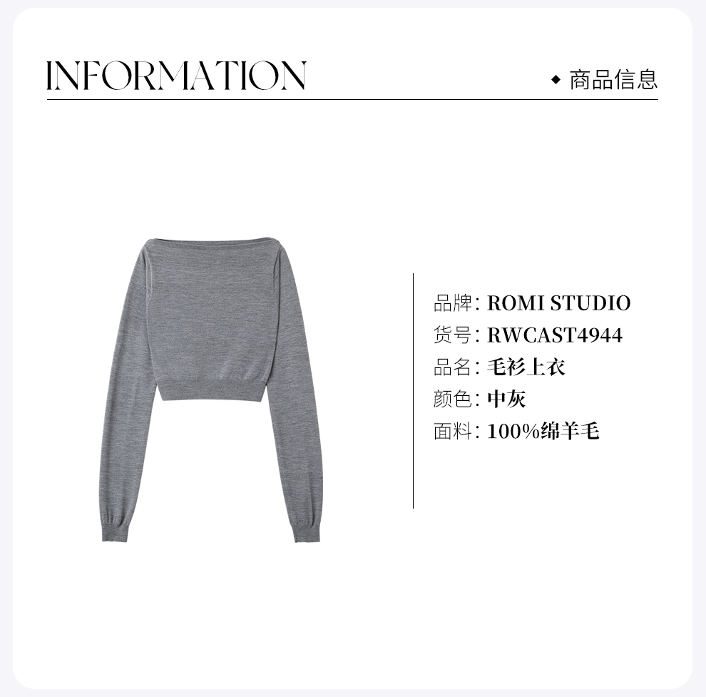 ROMI STUDIO”格雷优雅”16针美丽诺绵羊毛一字针织长袖RWCAST4944
