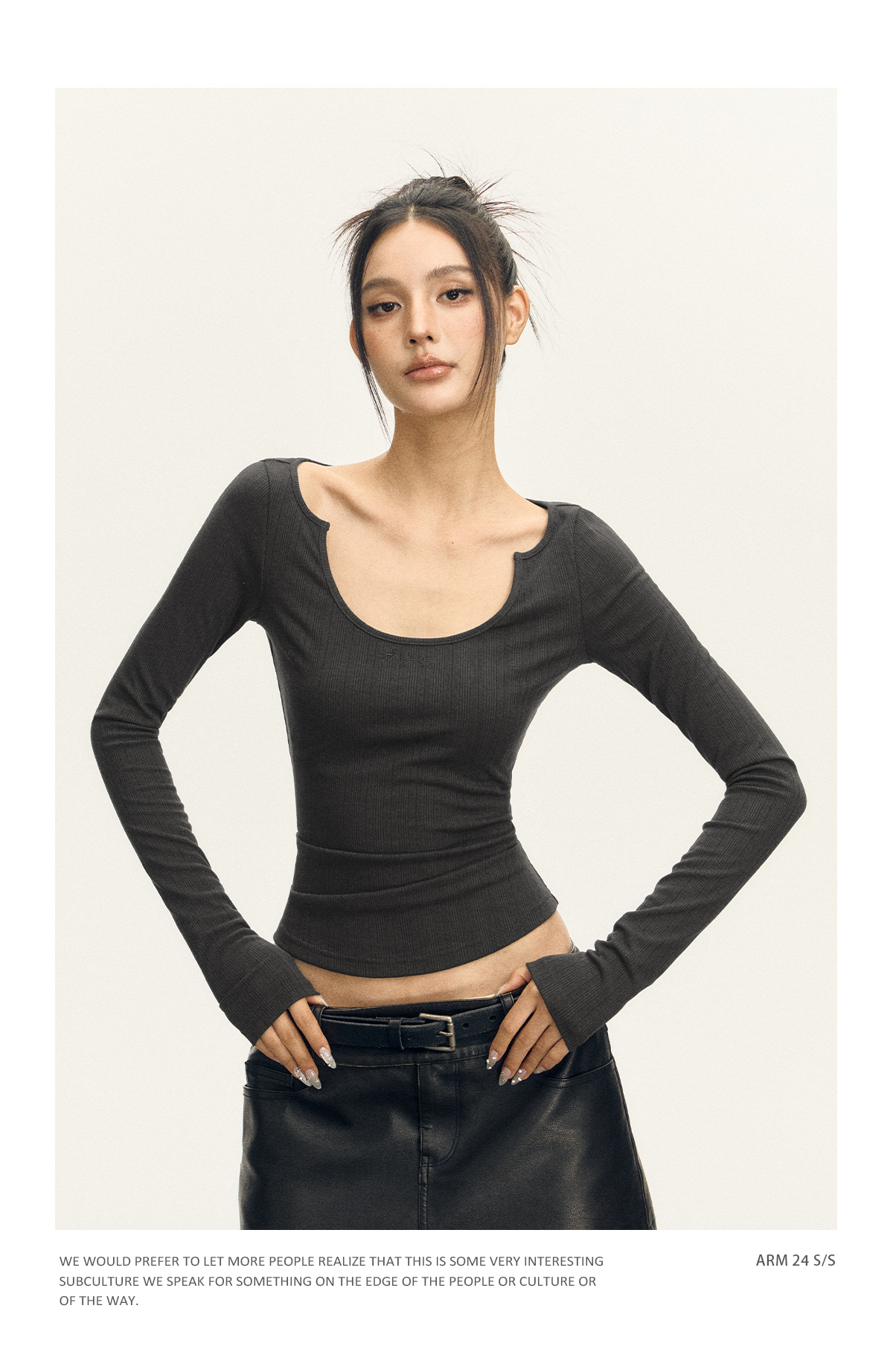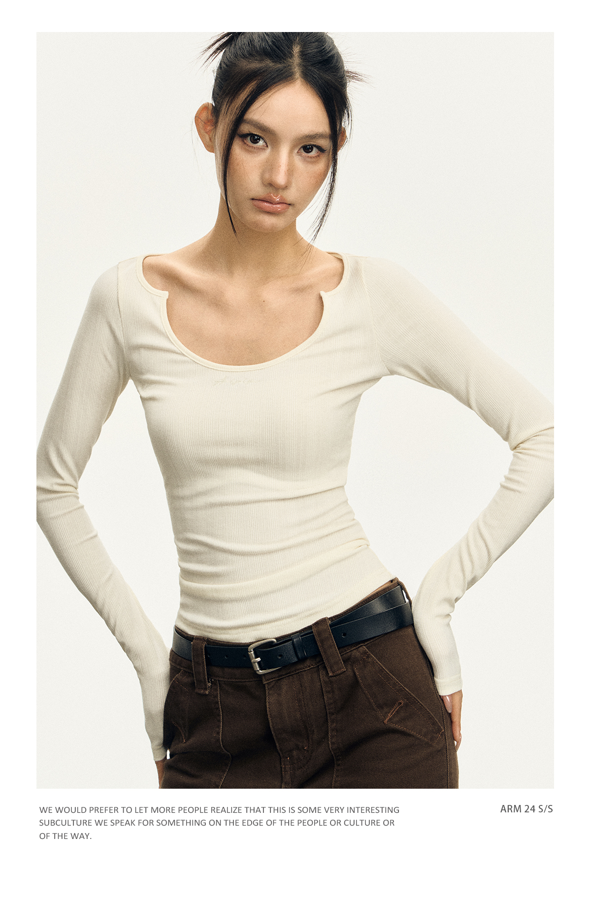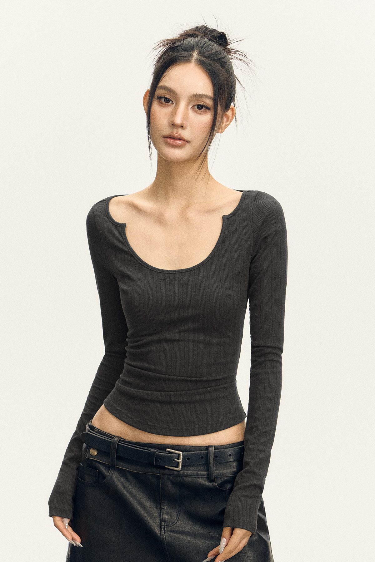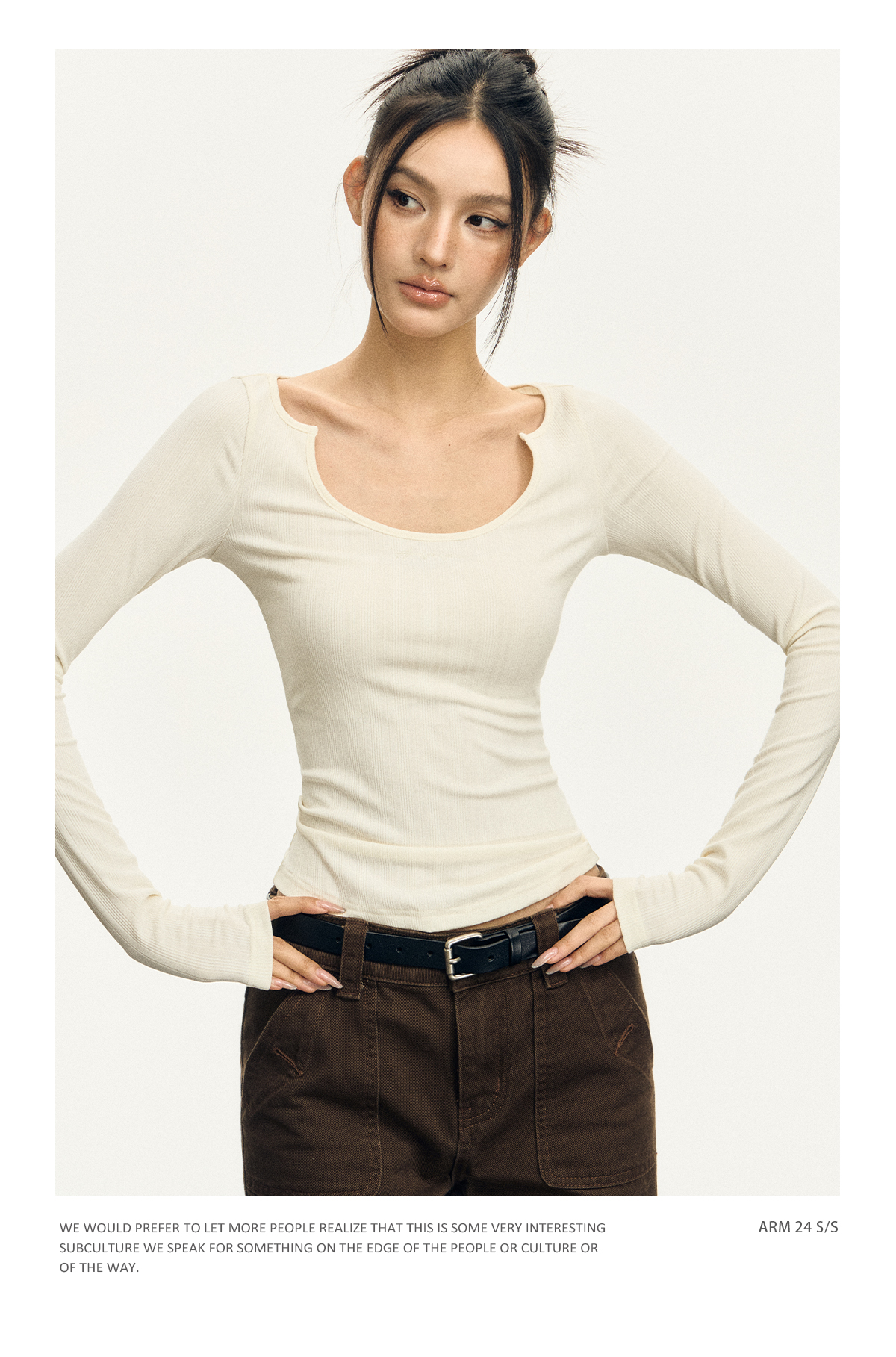 Ariseism 美式复古三色修身长袖T恤女2025春季新款修身上衣