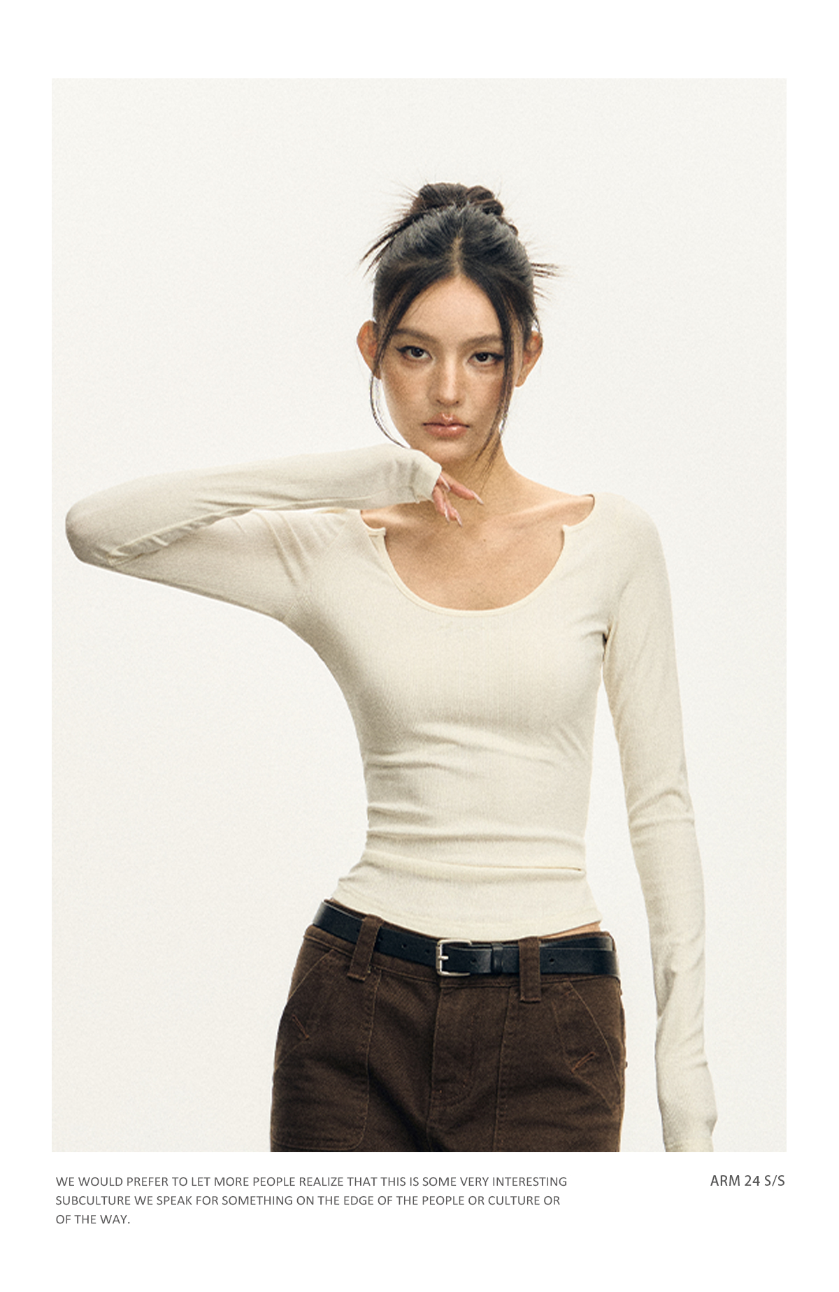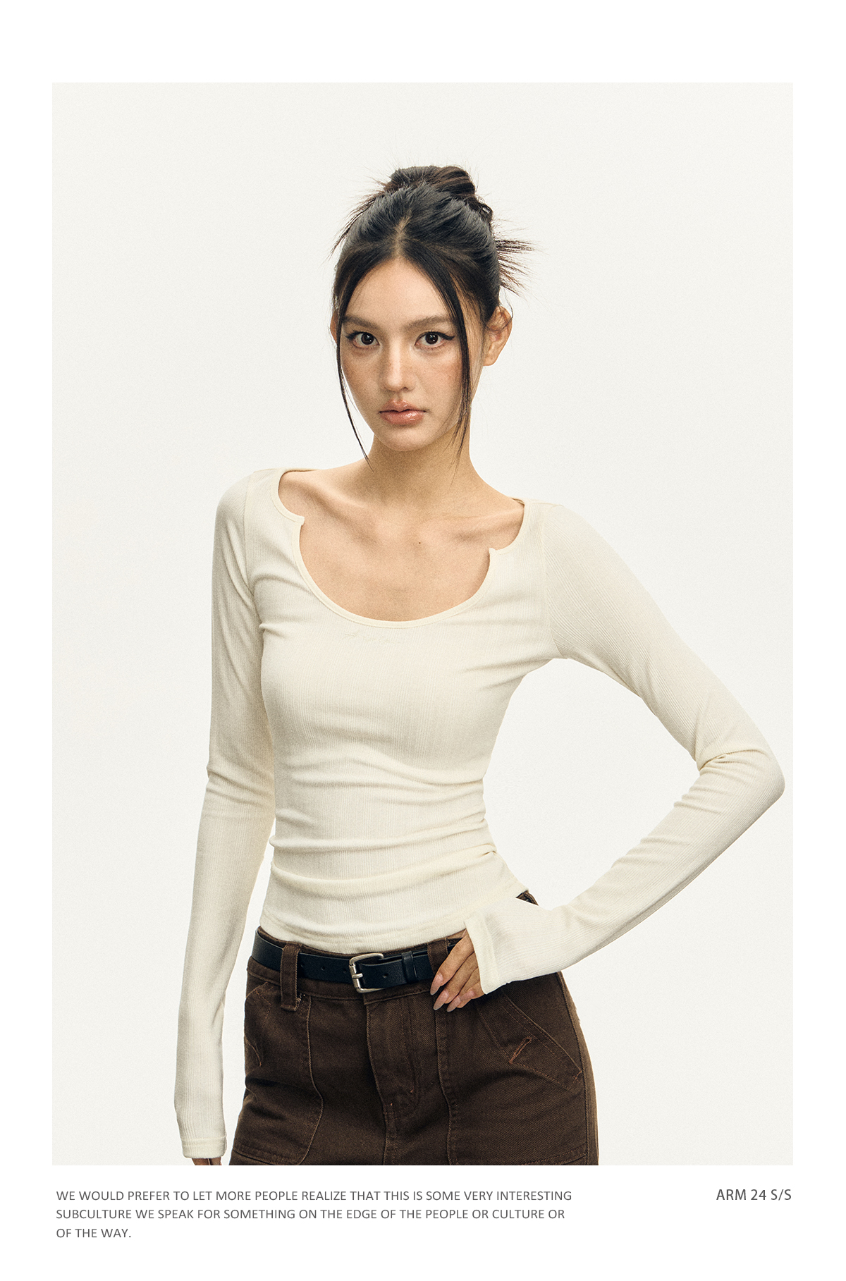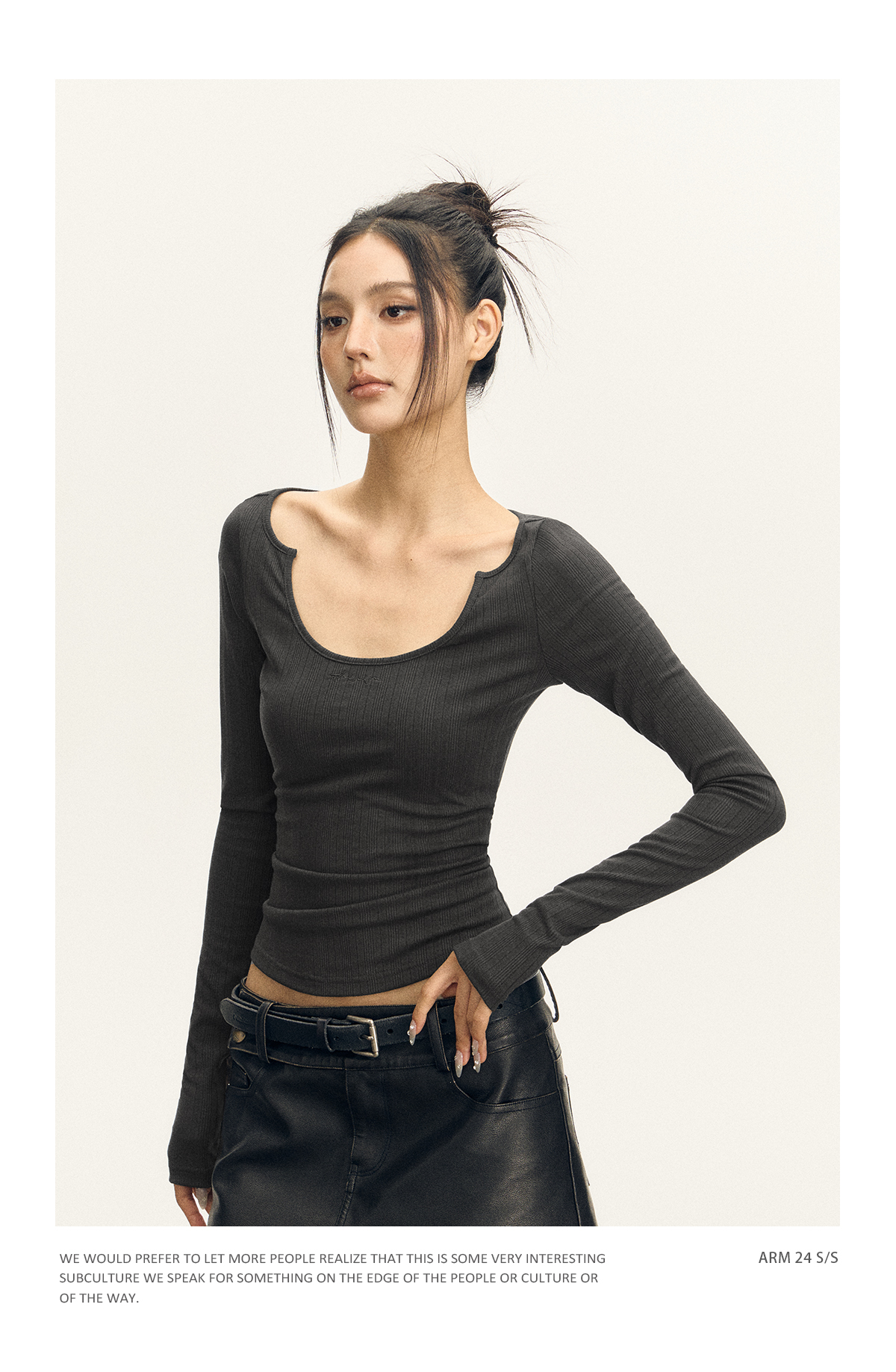 Ariseism 美式复古三色修身长袖T恤女2025春季新款修身上衣