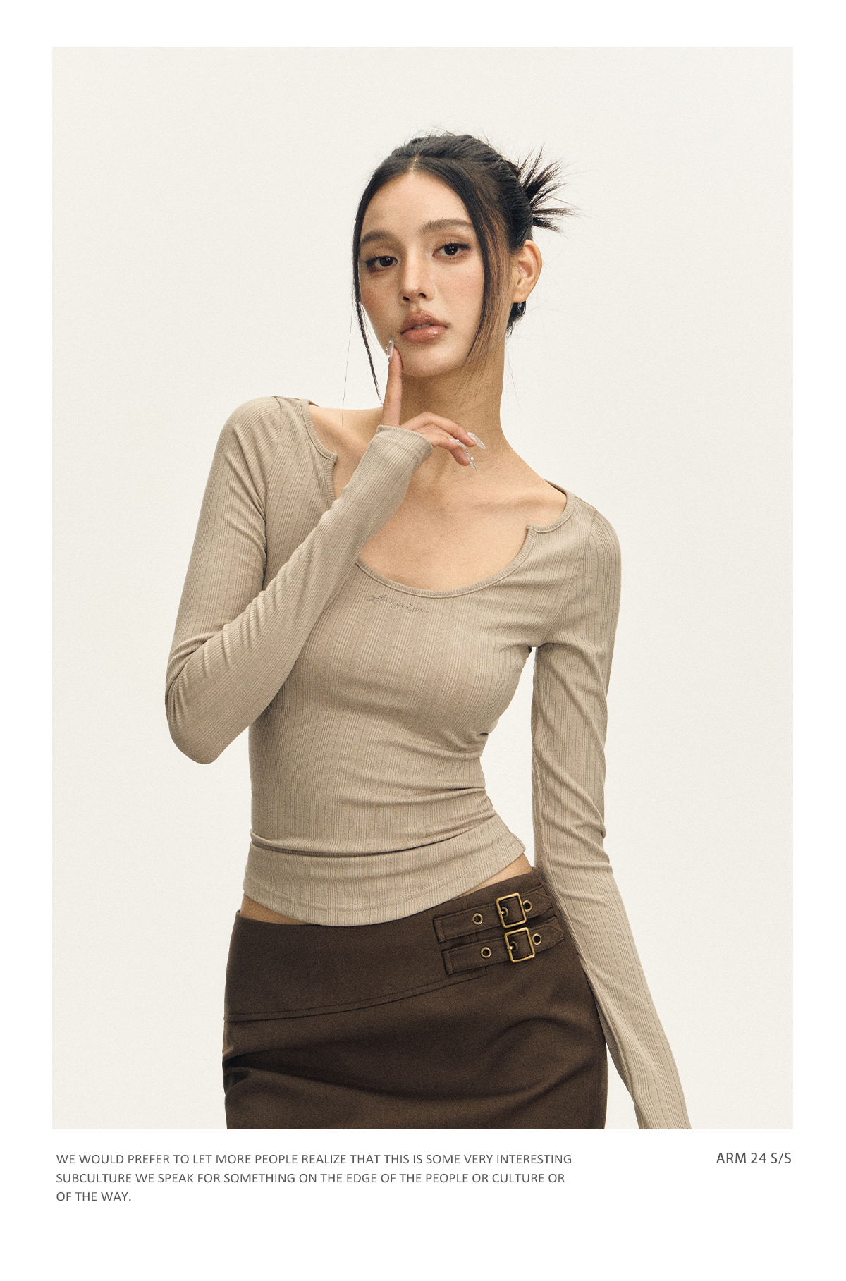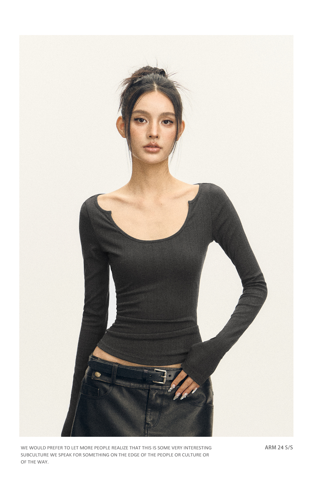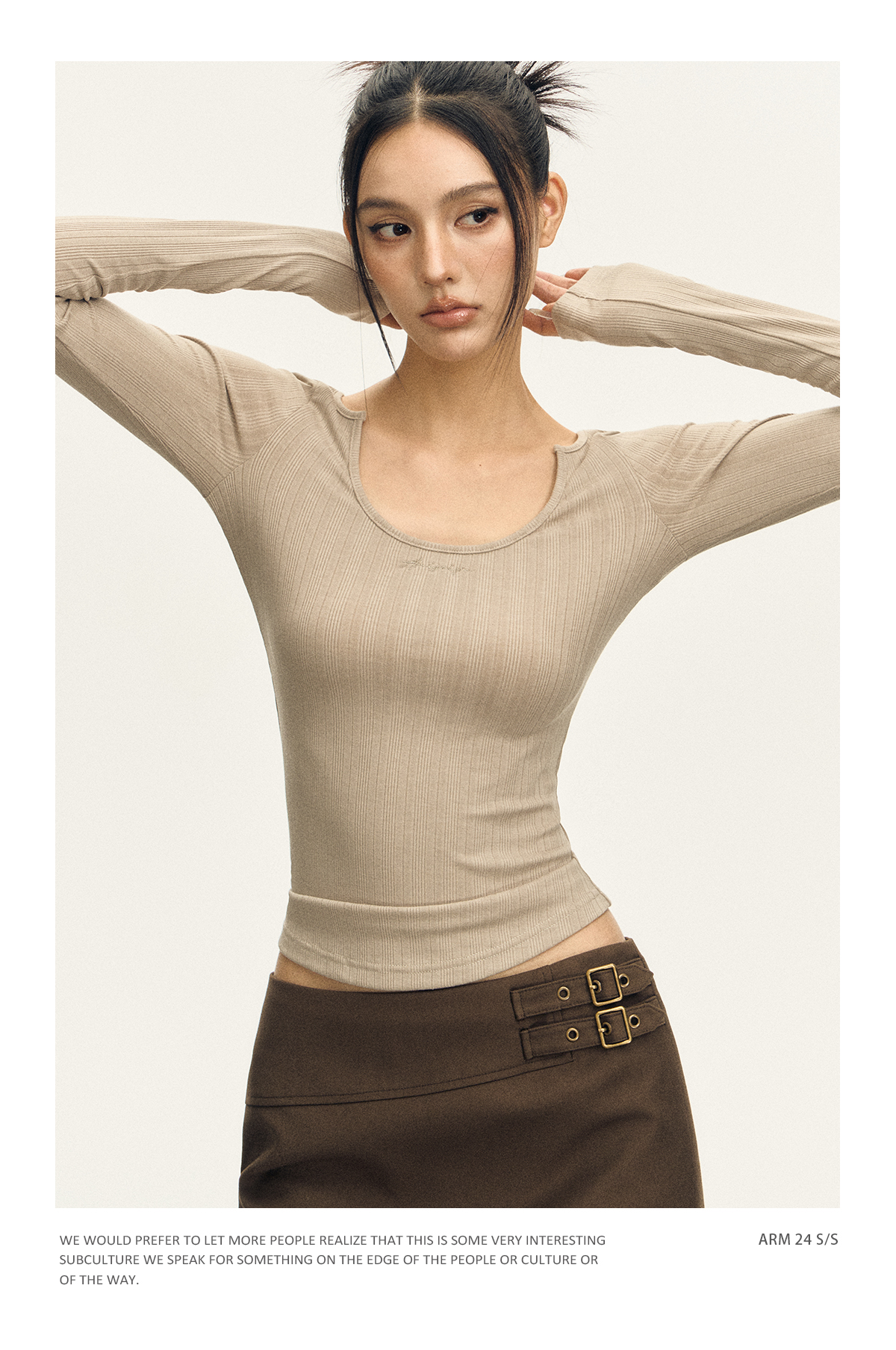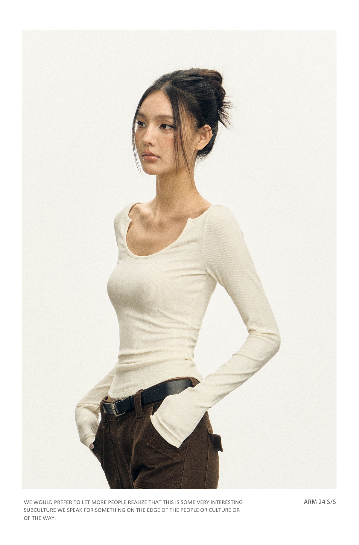 Ariseism 美式复古三色修身长袖T恤女2025春季新款修身上衣