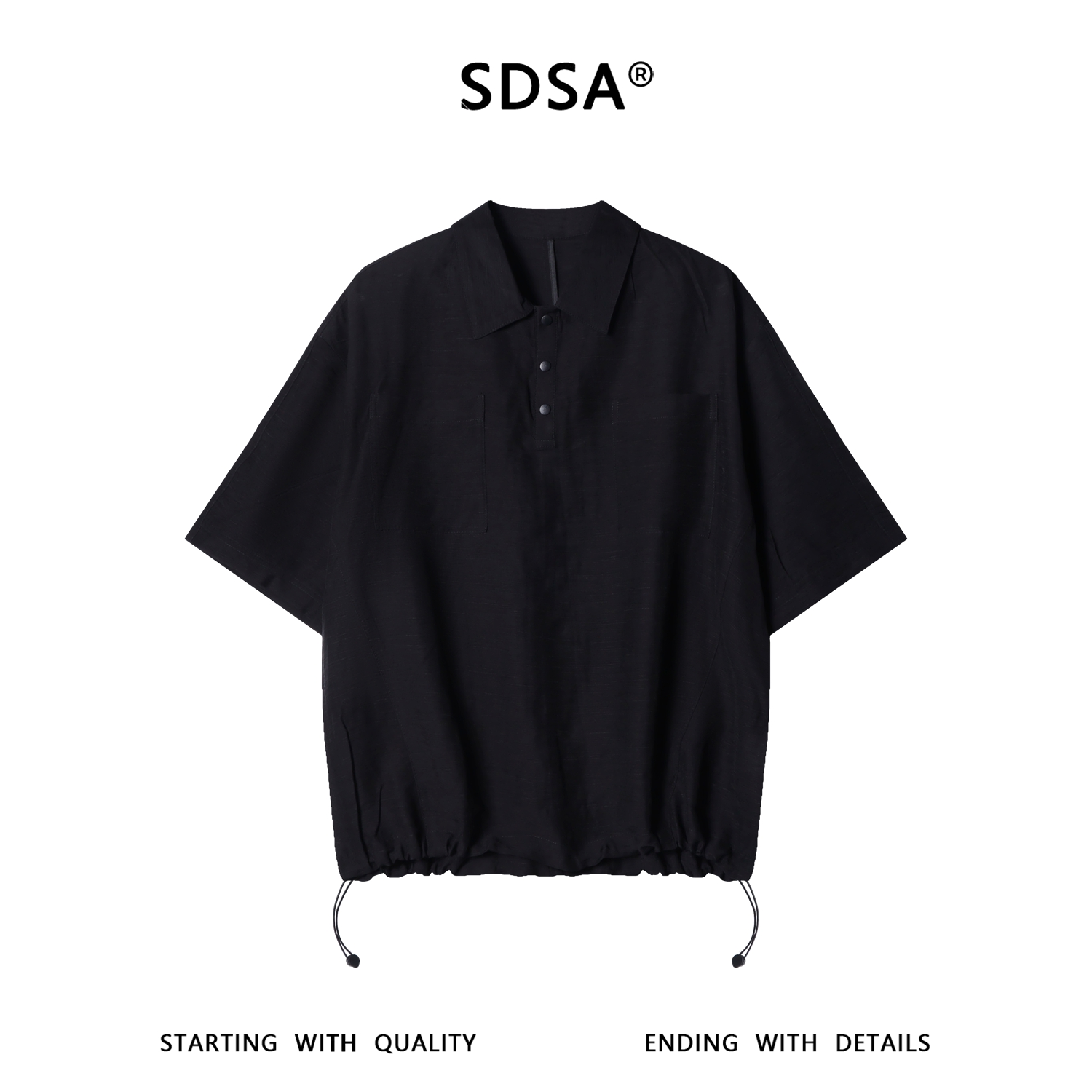 SDSA男装2026新款轻奢复古舒适半按扣翻领短袖衬衫下摆松紧百搭