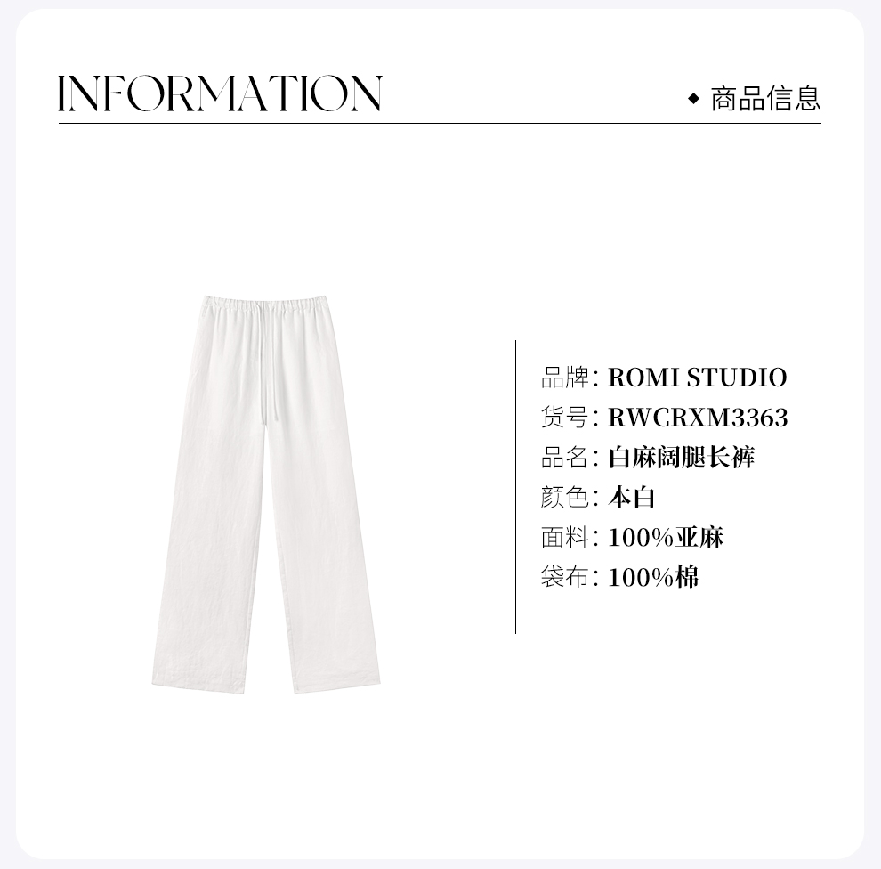 ROMI STUDIO 100%进口亚麻直筒长裤/轻薄宽松版松紧腰RWCRXM3363【发货时效25天】
