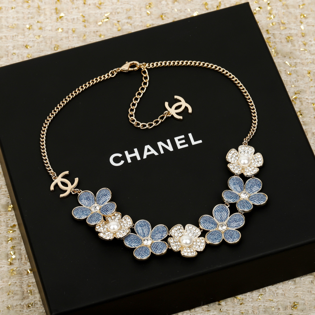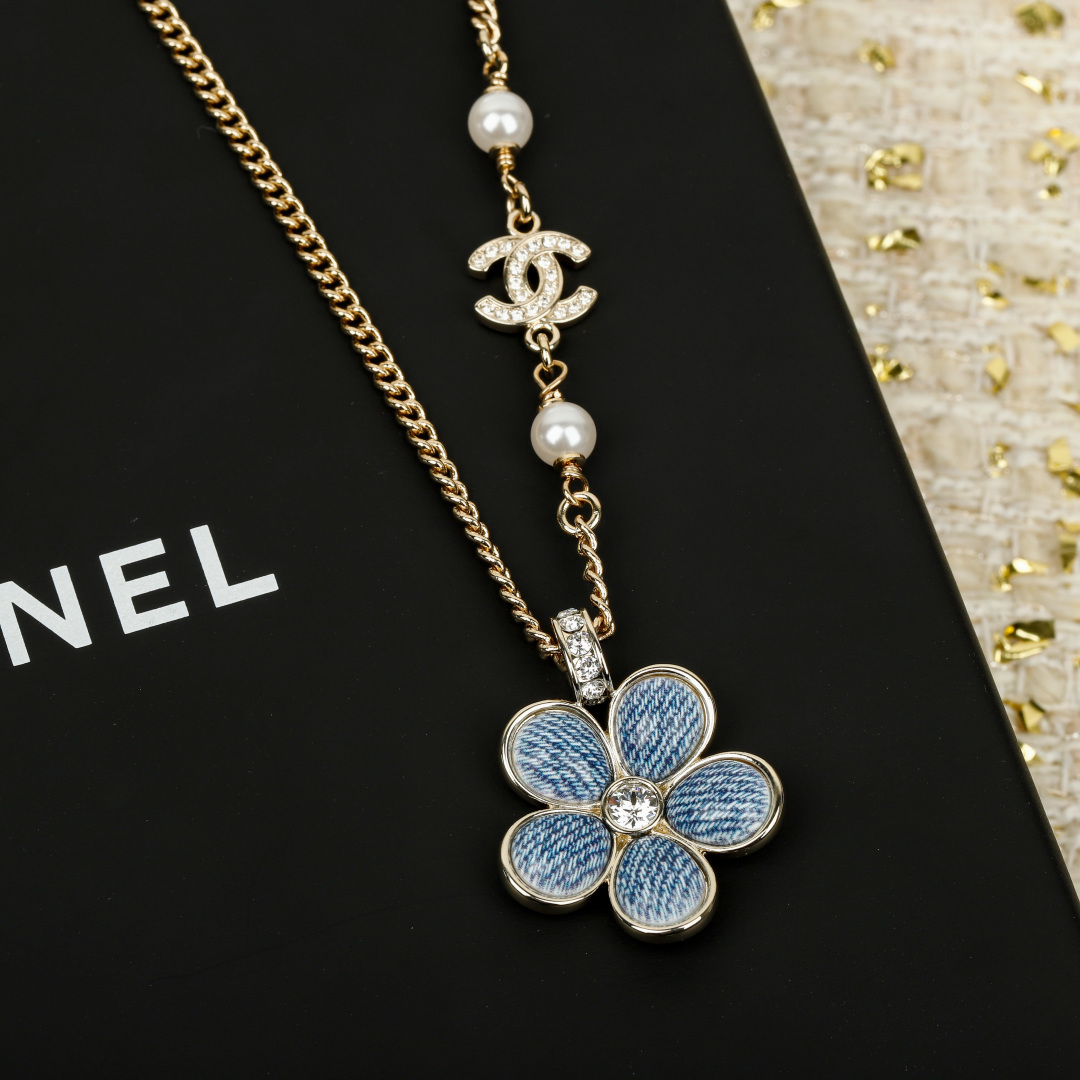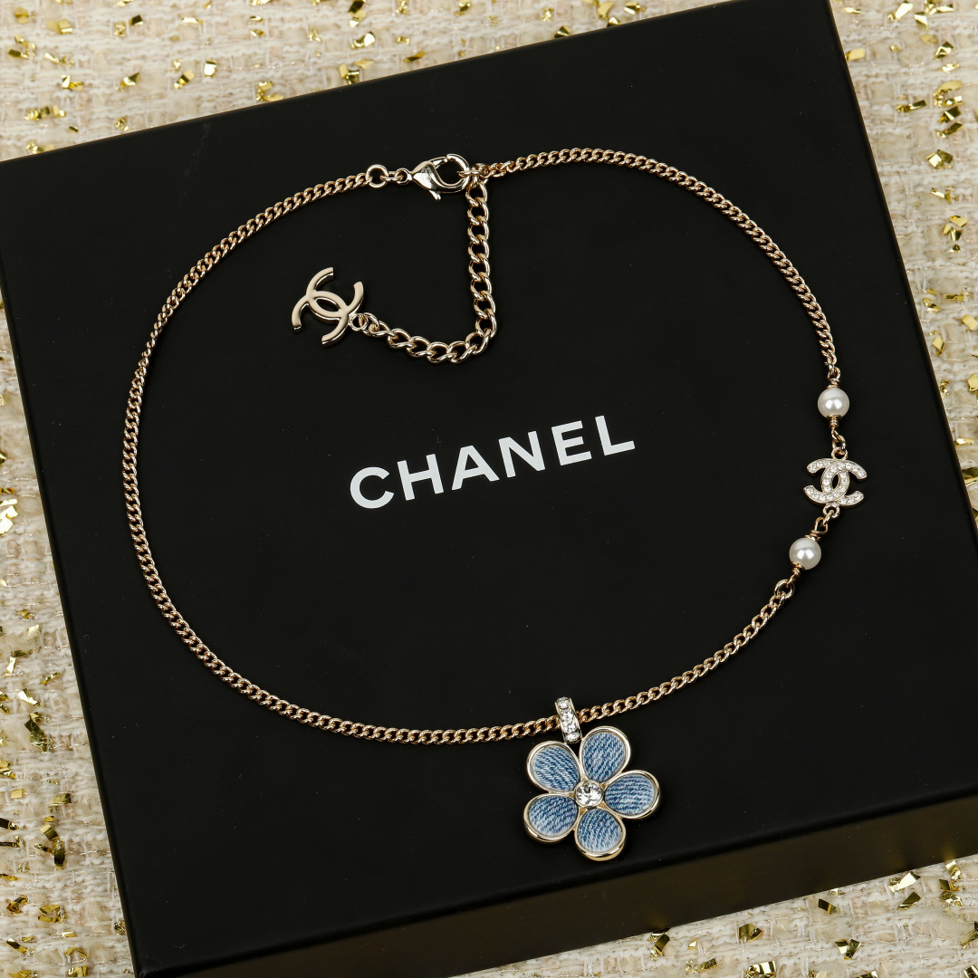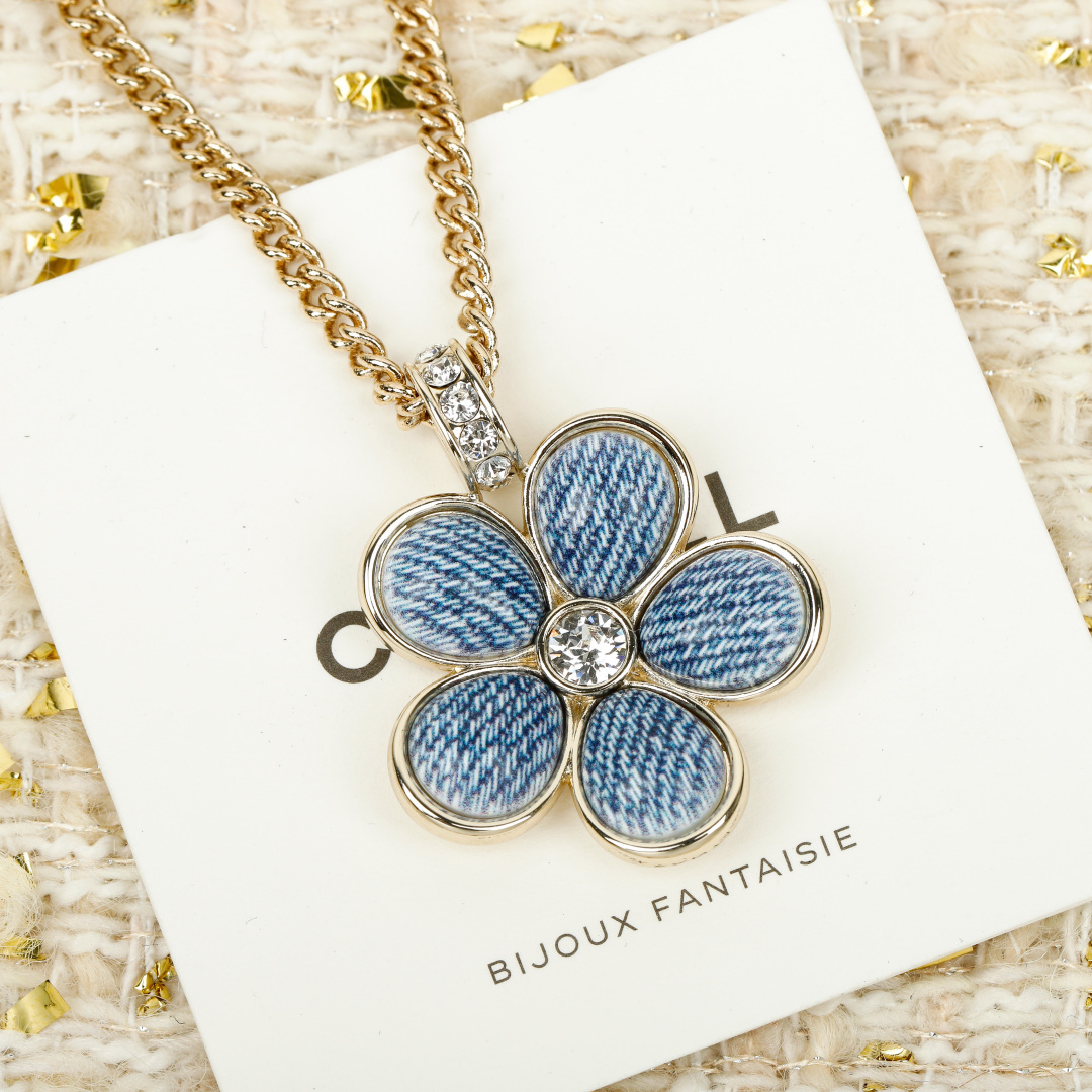 【小香 仿牛仔花花双c项链】😍26早春最🔥爆款仿牛仔系列❗️全网首发!老规矩先到先得💥太爱啦❣️超级断货王!巨巨巨难买!😭😭不买真心对不起自己❗️定制了好久的材料,超赞的仿牛仔效果,效果太惊艳了,细致的做出了牛仔布料肌理纹👍🏻蓝色茶花,真心太美了💙春夏气息拉🈵上身清新貌美🤩🤩巨巨巨好看!全系列陆续出货中🔥强烈推荐闭入自留哇❗️