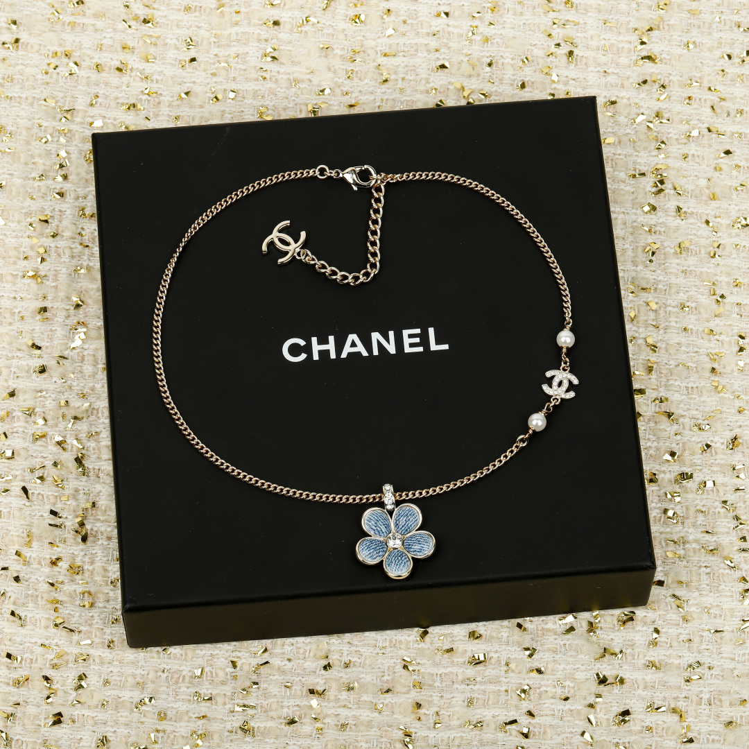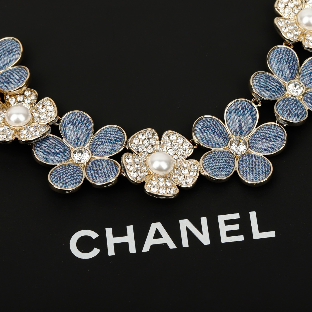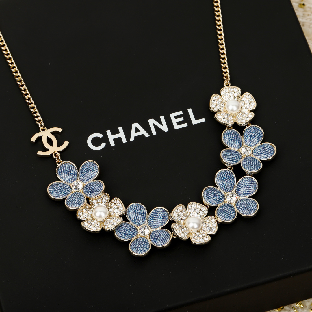 【小香 仿牛仔花花双c项链】😍26早春最🔥爆款仿牛仔系列❗️全网首发!老规矩先到先得💥太爱啦❣️超级断货王!巨巨巨难买!😭😭不买真心对不起自己❗️定制了好久的材料,超赞的仿牛仔效果,效果太惊艳了,细致的做出了牛仔布料肌理纹👍🏻蓝色茶花,真心太美了💙春夏气息拉🈵上身清新貌美🤩🤩巨巨巨好看!全系列陆续出货中🔥强烈推荐闭入自留哇❗️