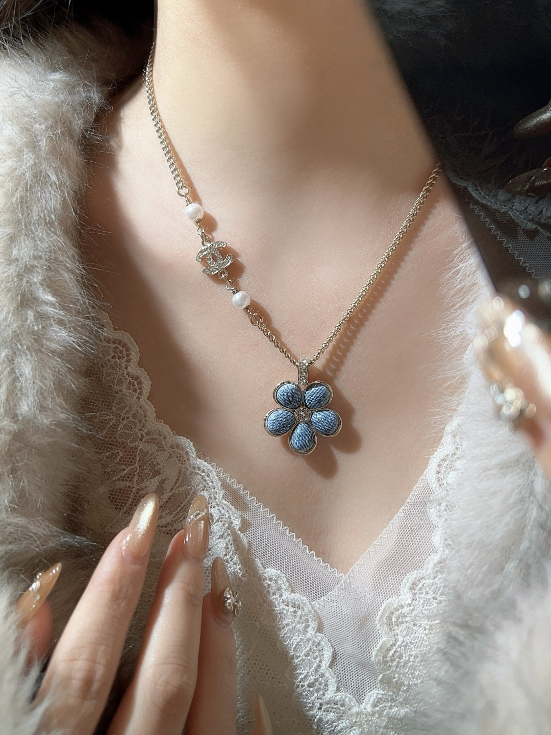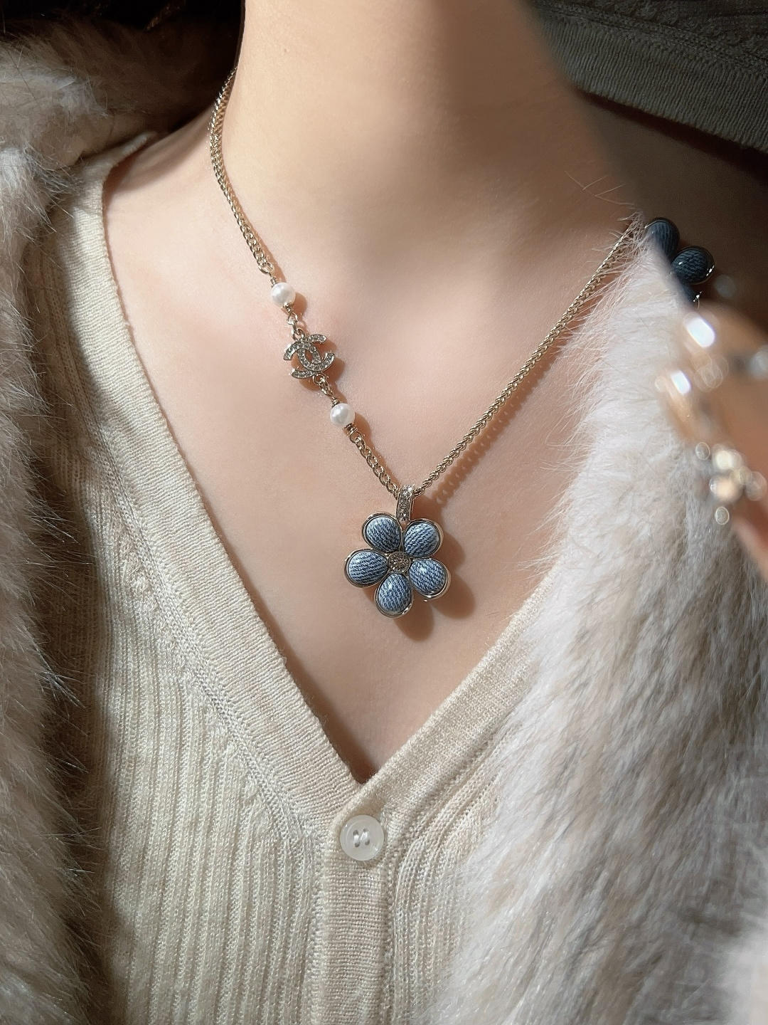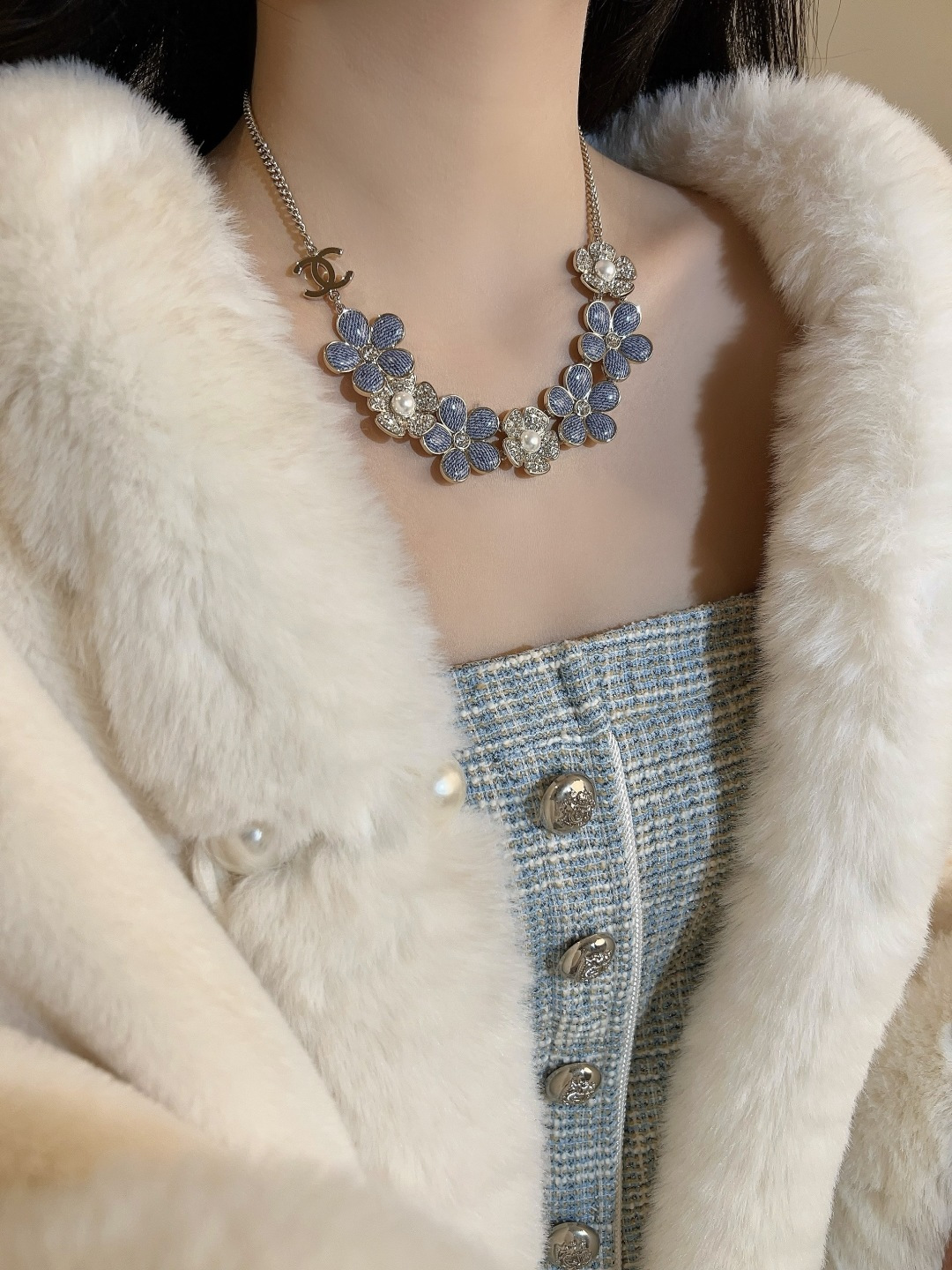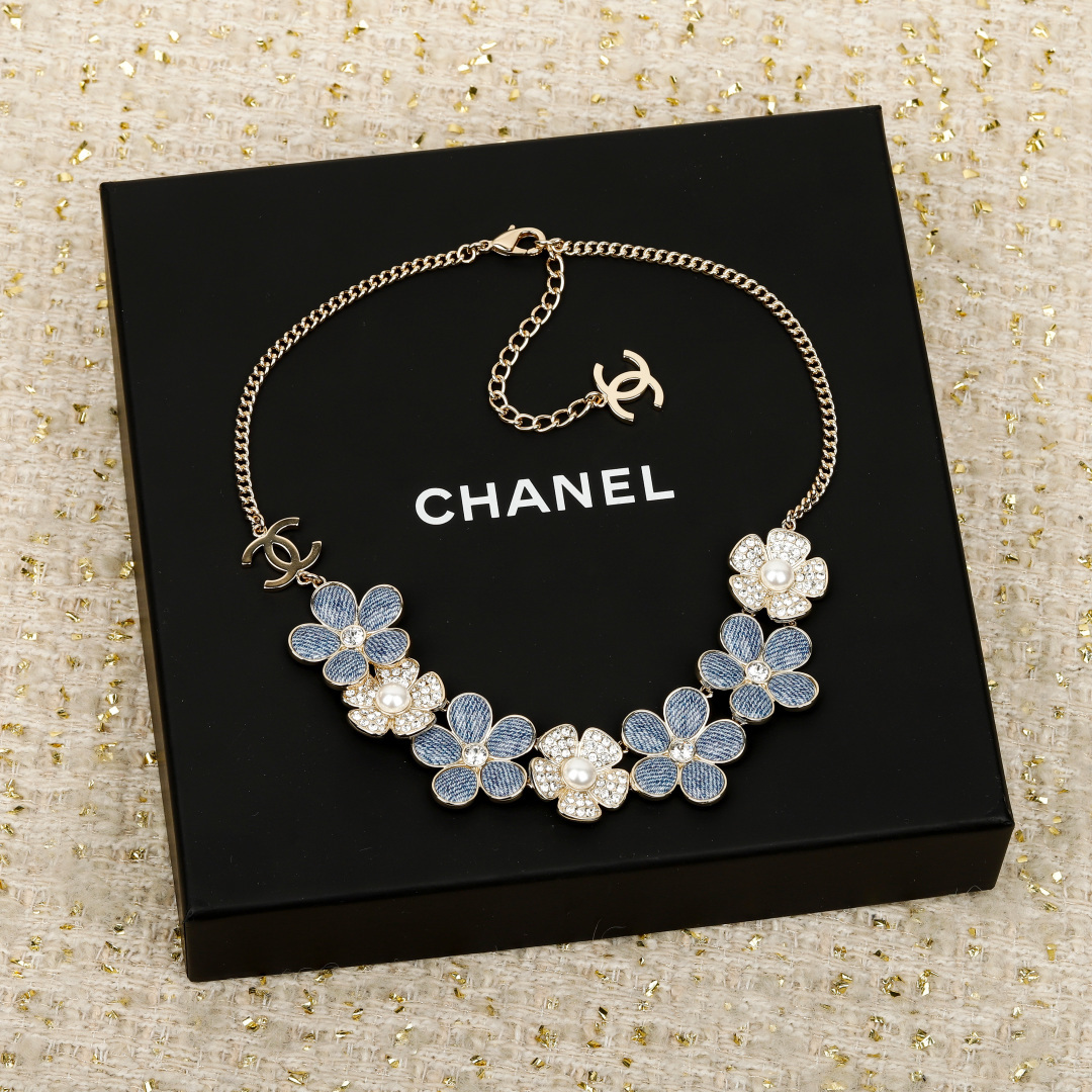 【小香 仿牛仔花花双c项链】😍26早春最🔥爆款仿牛仔系列❗️全网首发!老规矩先到先得💥太爱啦❣️超级断货王!巨巨巨难买!😭😭不买真心对不起自己❗️定制了好久的材料,超赞的仿牛仔效果,效果太惊艳了,细致的做出了牛仔布料肌理纹👍🏻蓝色茶花,真心太美了💙春夏气息拉🈵上身清新貌美🤩🤩巨巨巨好看!全系列陆续出货中🔥强烈推荐闭入自留哇❗️