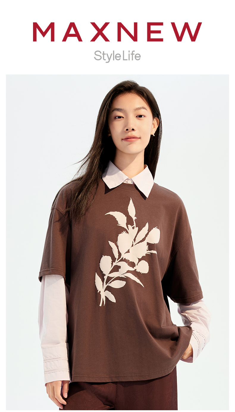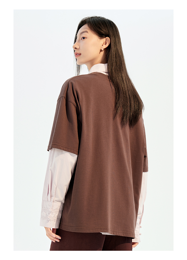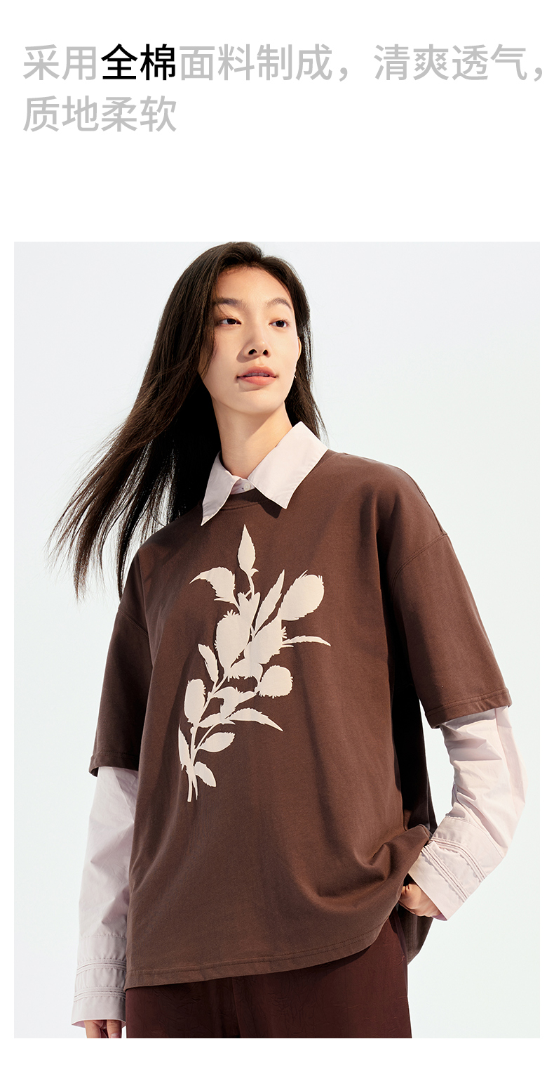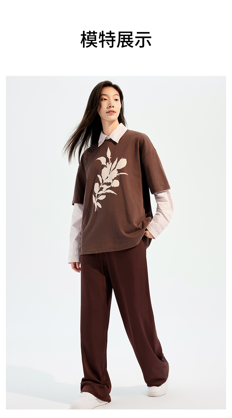【门店同款】极简风全棉女180G重磅柔软圆领百搭长袖T恤1Q1222207