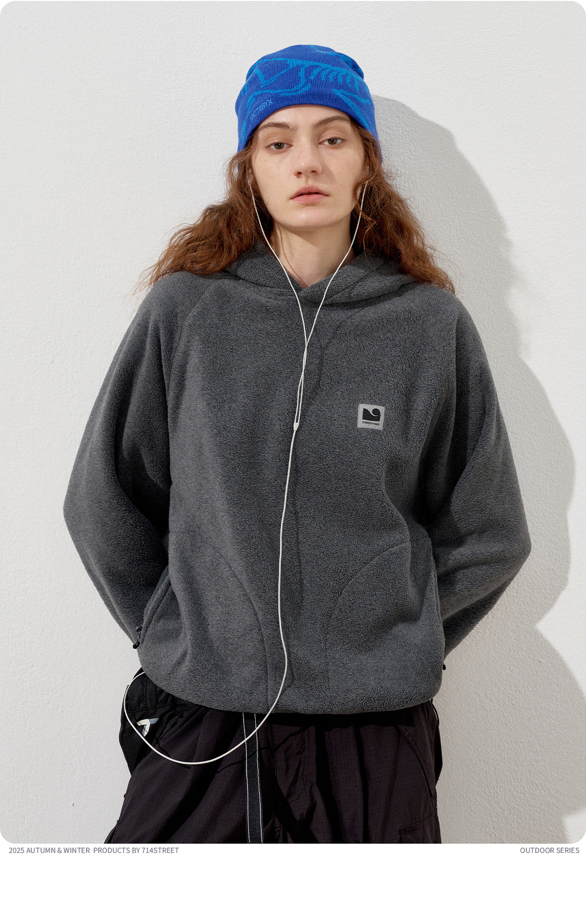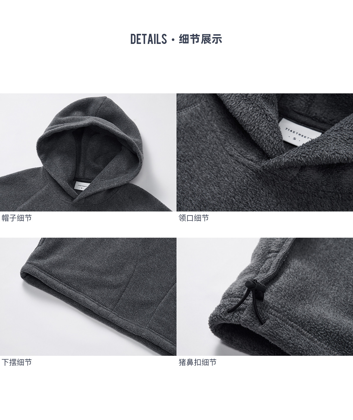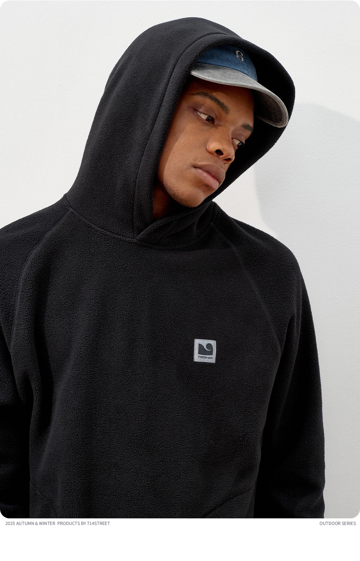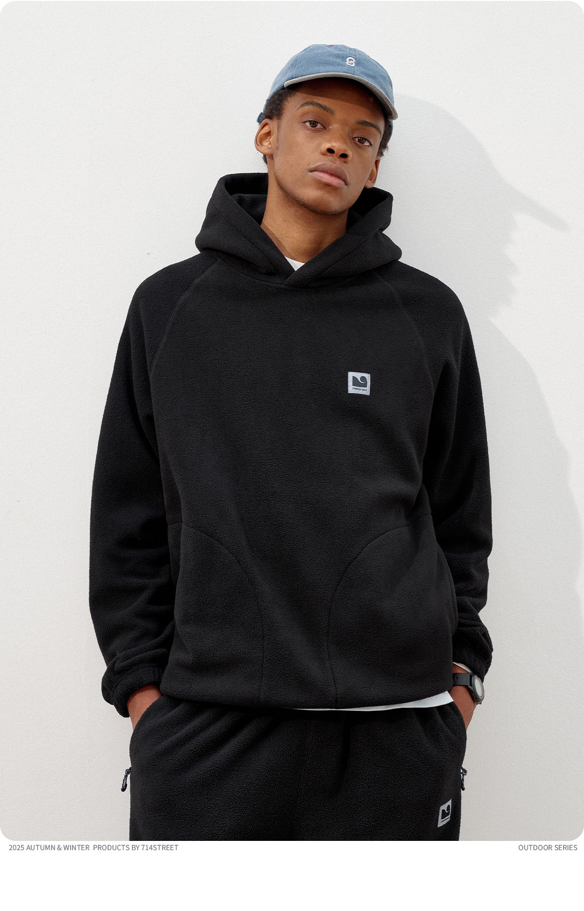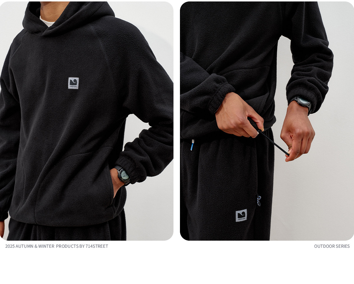 714street摇粒绒连帽卫衣男2025秋冬季情侣长袖上衣宽松训练帽衫