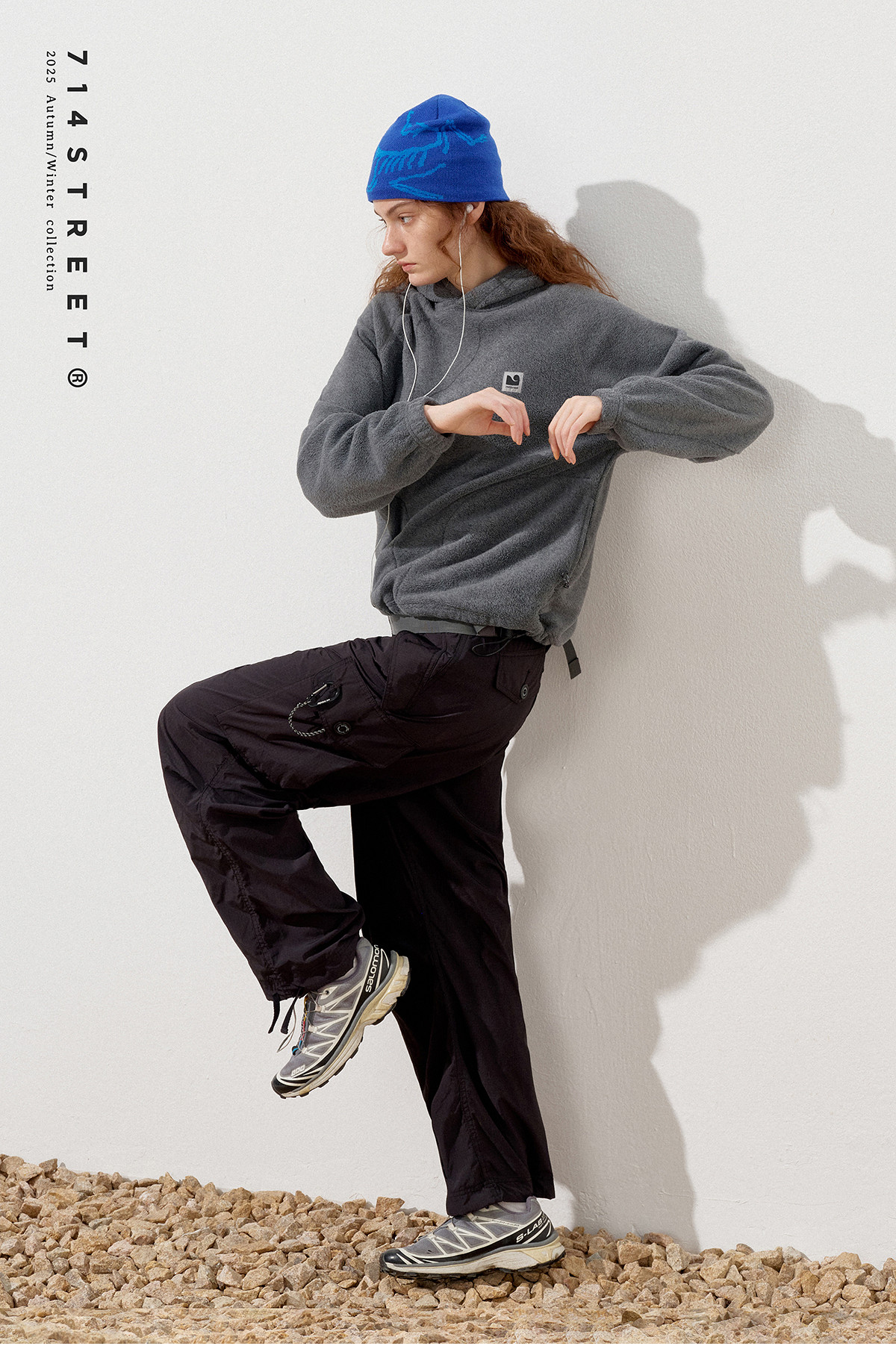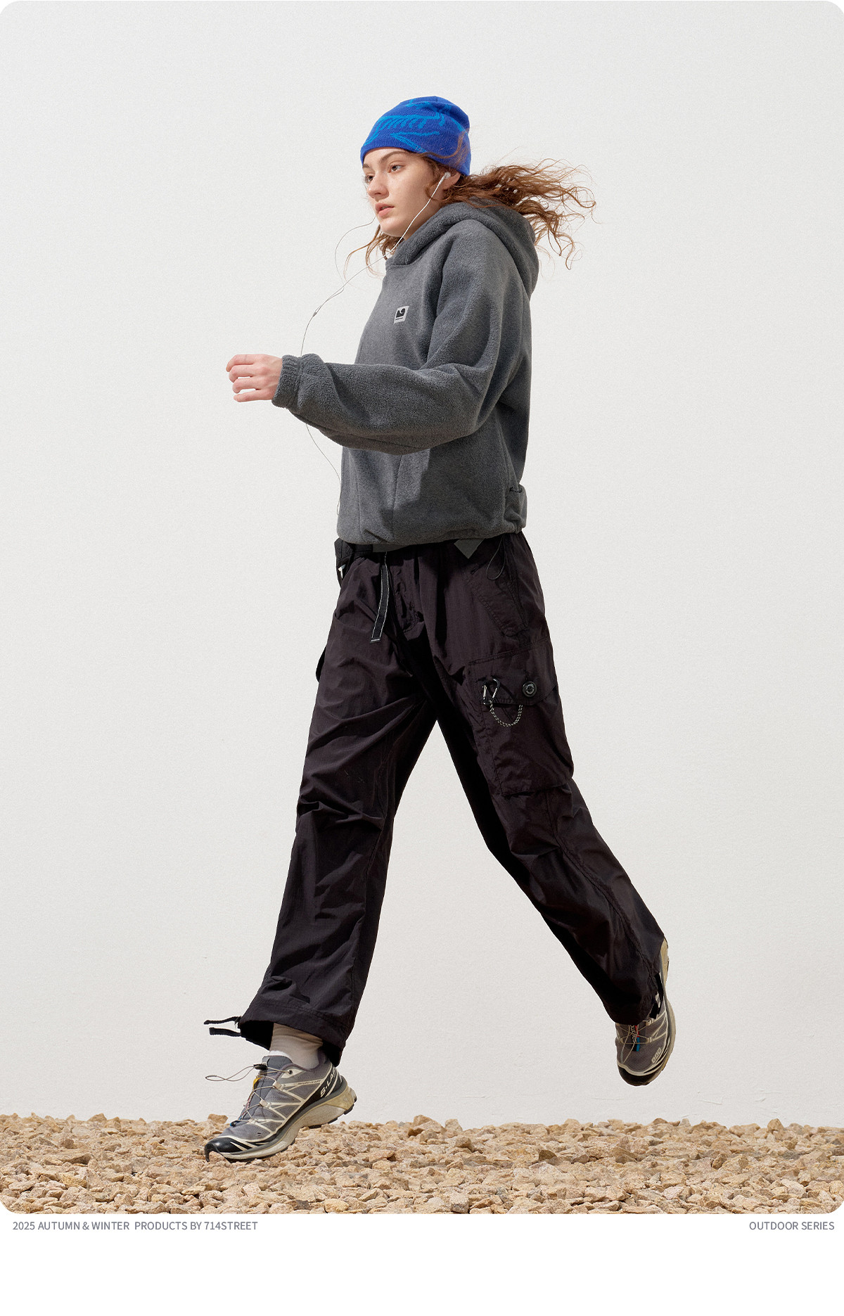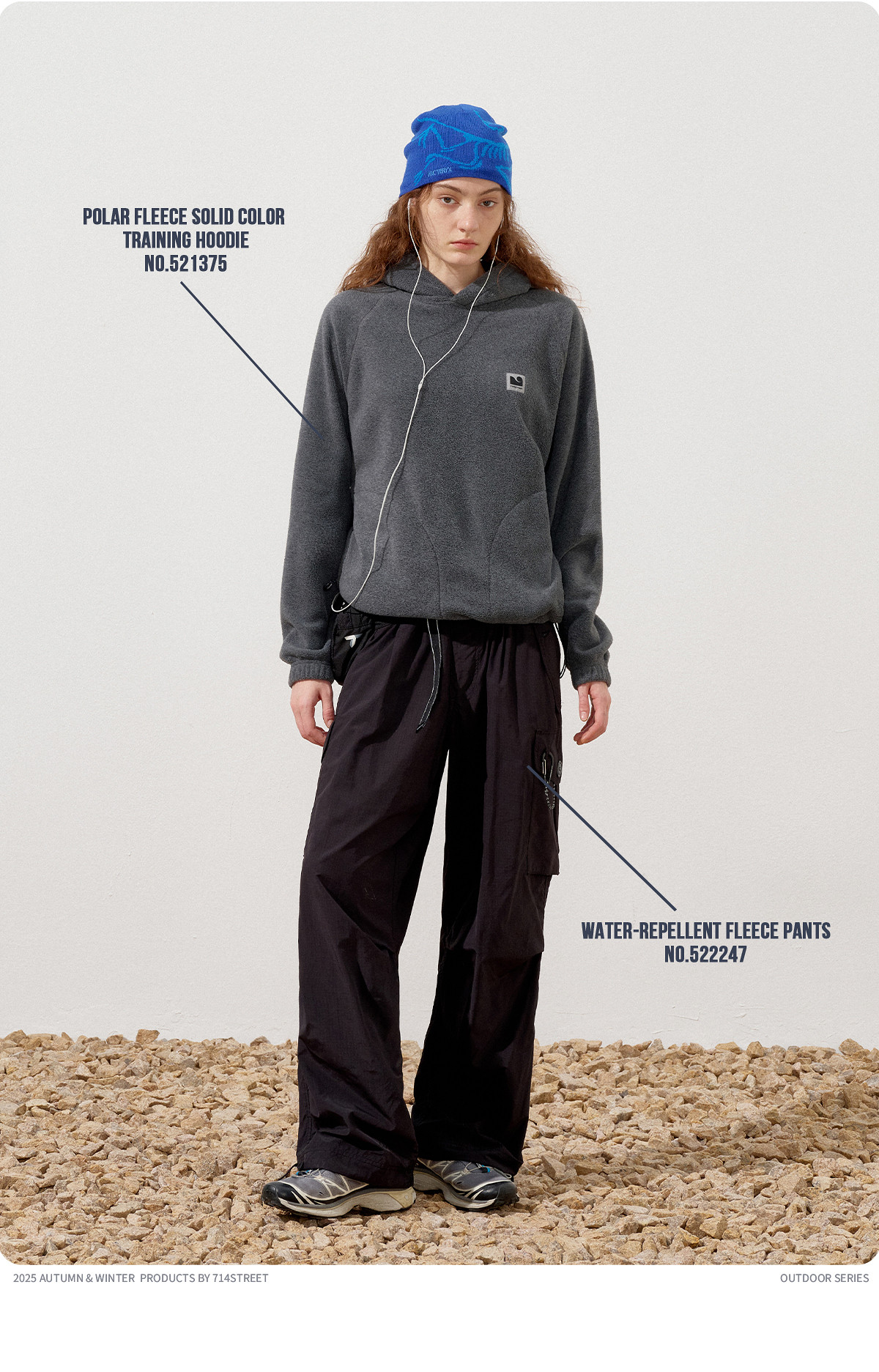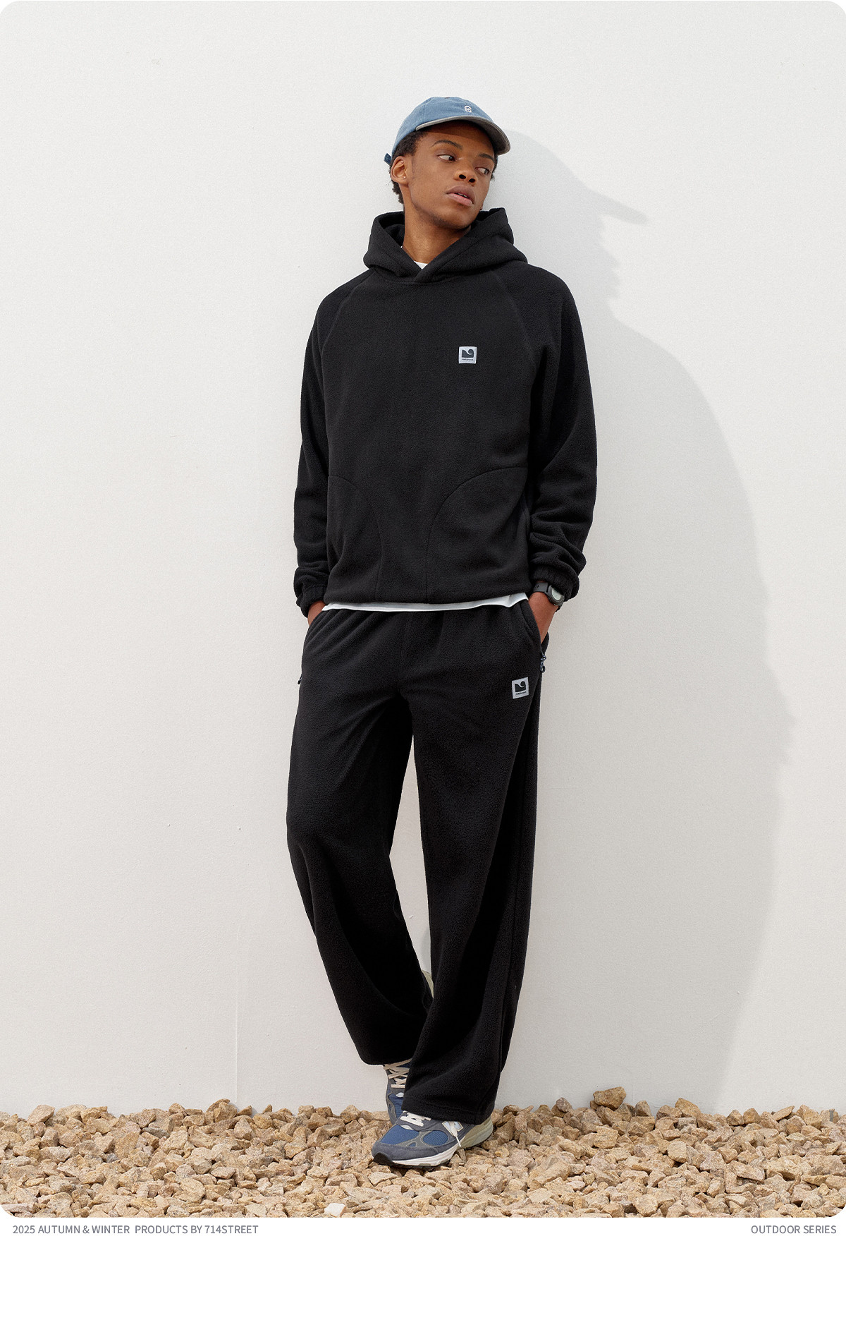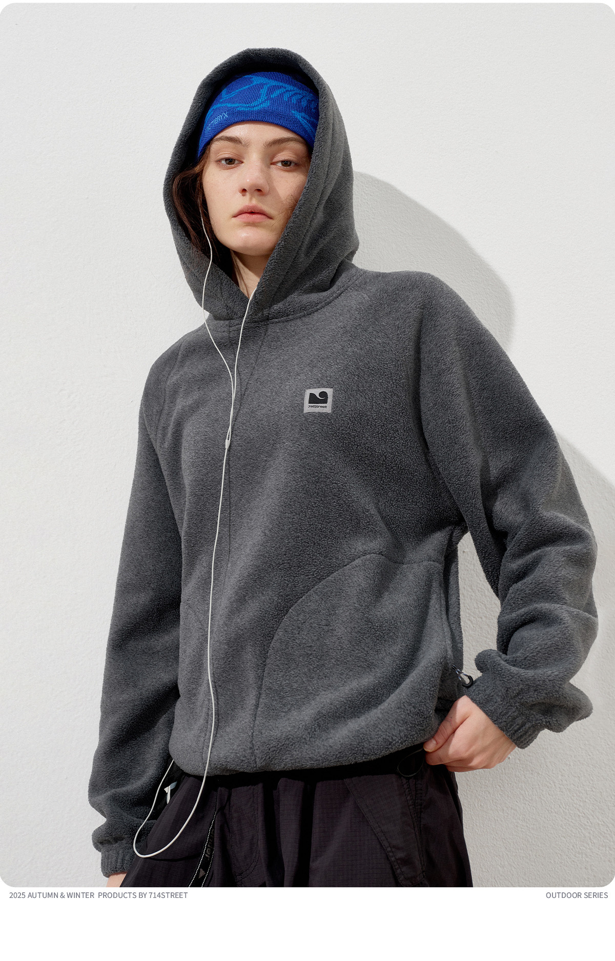 714street摇粒绒连帽卫衣男2025秋冬季情侣长袖上衣宽松训练帽衫