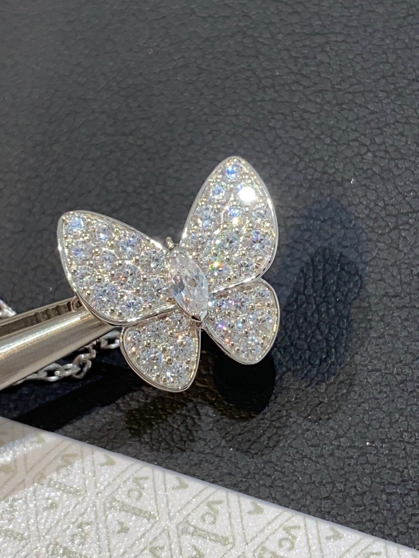 中间镶嵌马眼型钻,切面丰富,十分透亮
