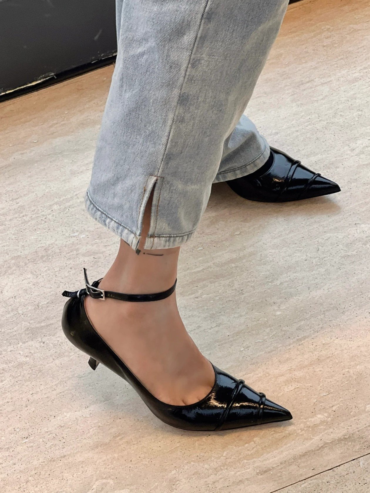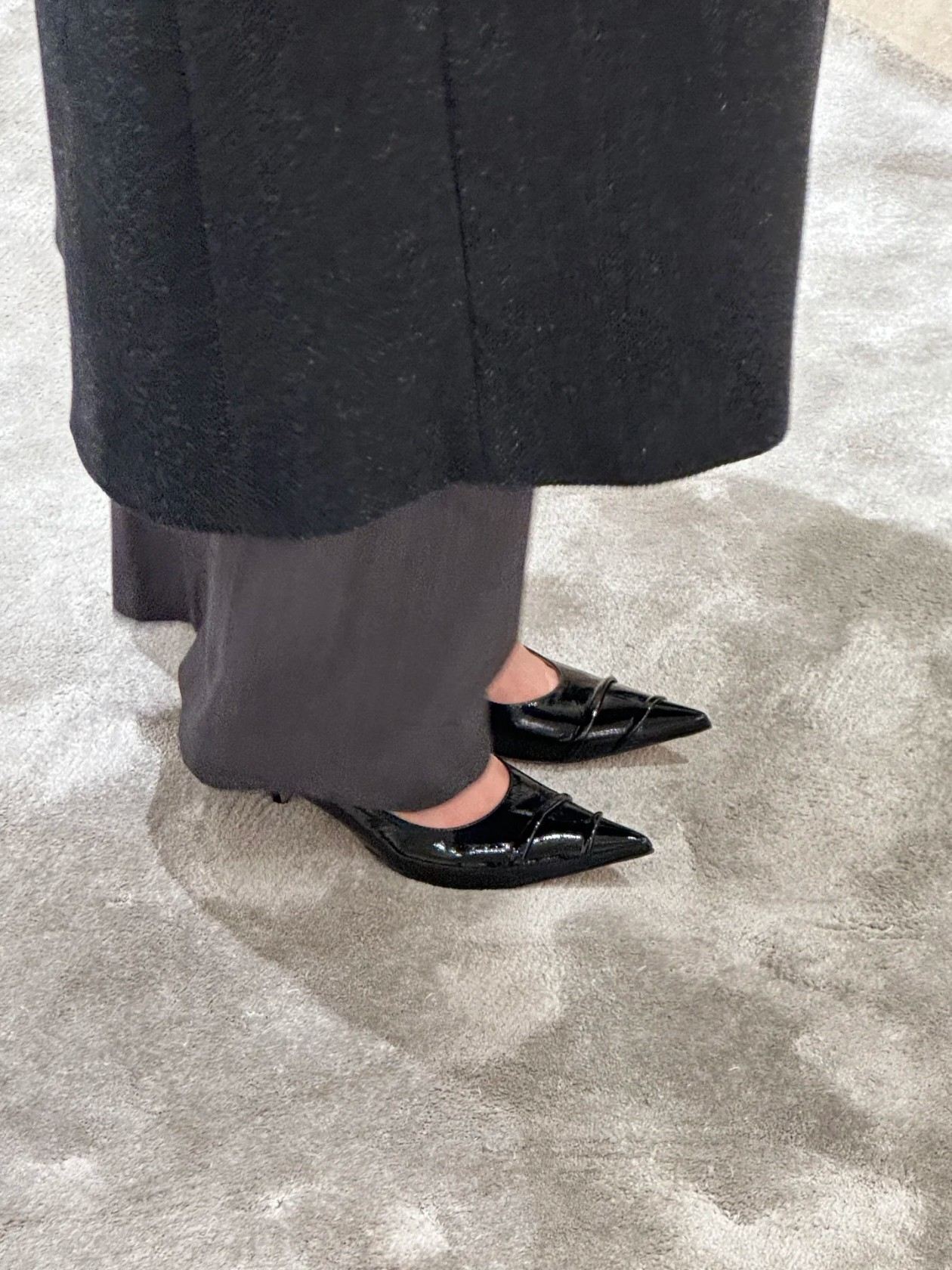 小尖头的设计修饰脚型,后跟鞋型收窄,让内收缩,避免上脚不跟脚的问题,整体鞋型长而窄,整体也没有过多的装饰,就显得很干练!很适合日常上班穿搭!