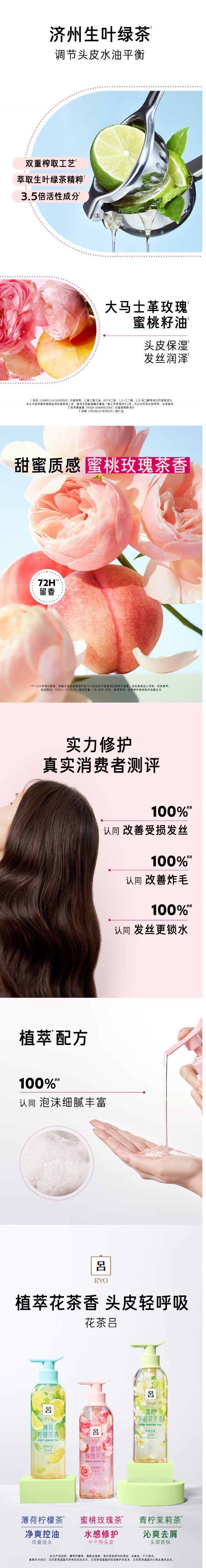 吕花茶清漾凝润保湿修护洗发水400ml蜜桃玫瑰香
