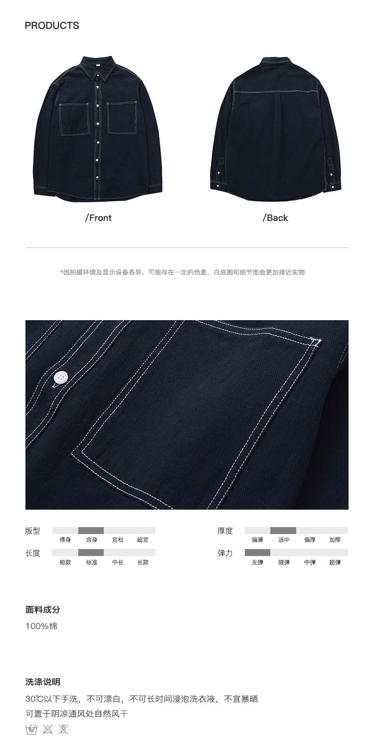 徐太浪春季长袖衬衫男日系复古休闲衬衣高级感潮牌痞帅寸衫外套潮