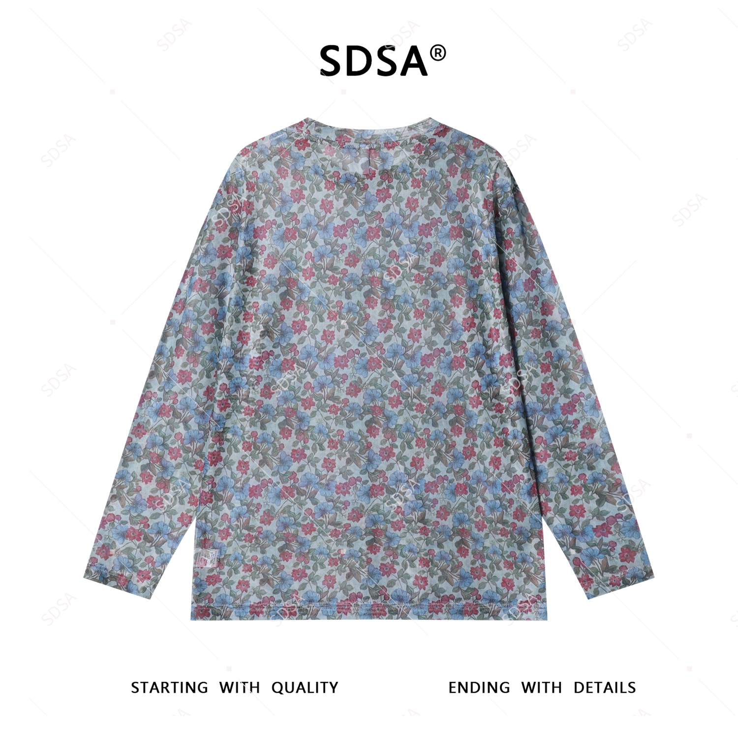 T4504SDSA秋季新款男士痞帅简约撞色植物花卉图案满印圆领长袖T恤休闲