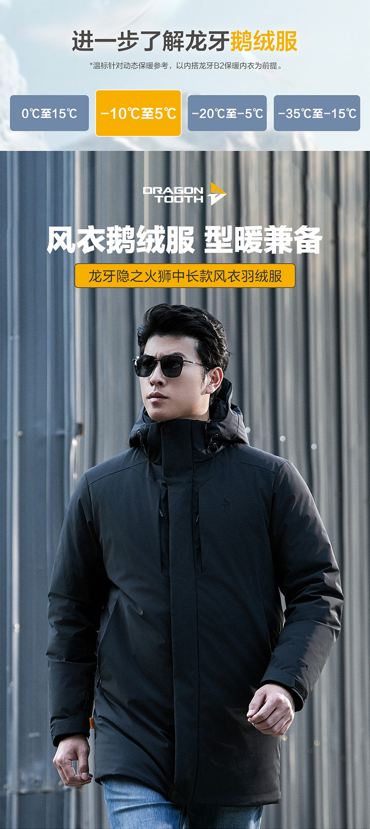 隐之火狮中长款风衣羽绒服男冬季防风保暖舒适男士外套