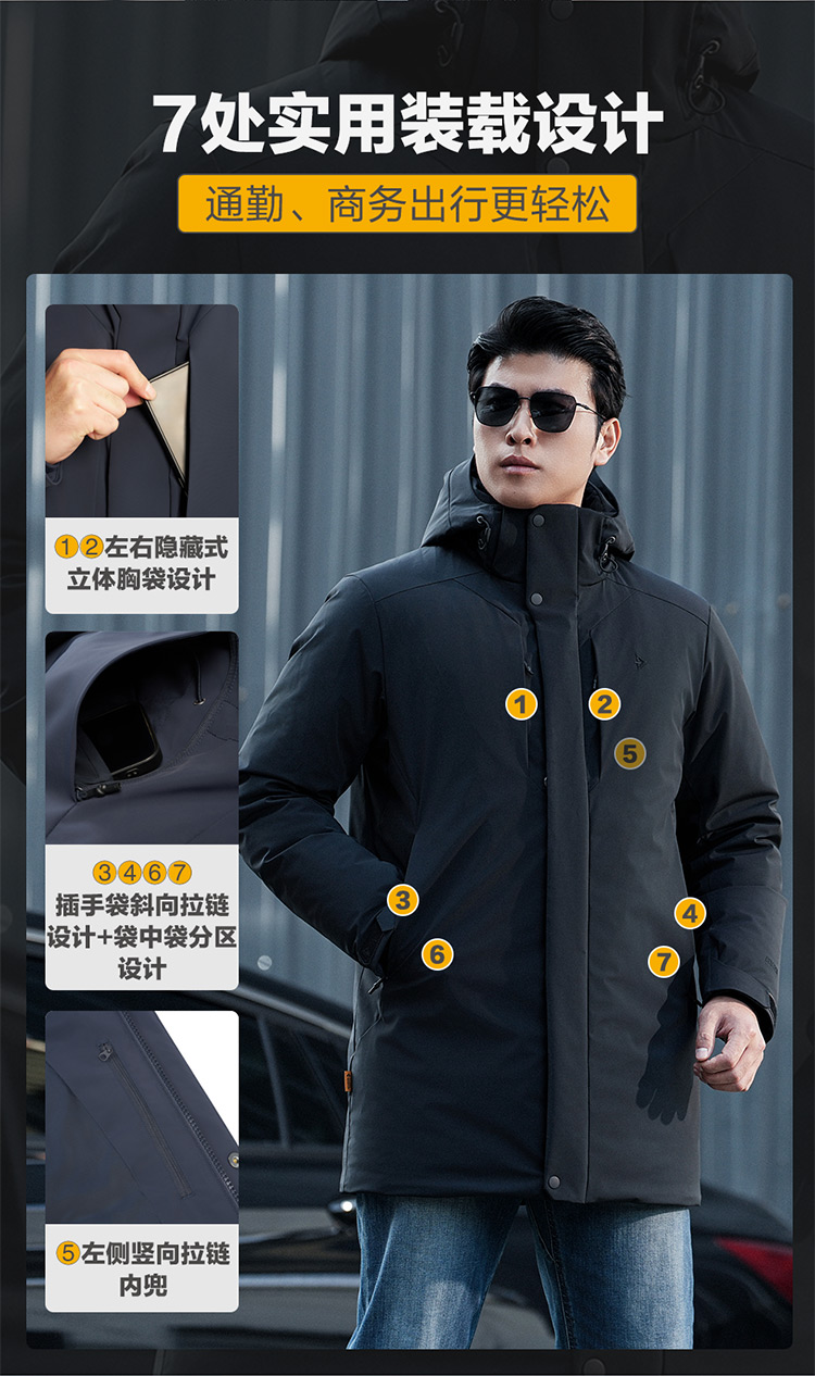 隐之火狮中长款风衣羽绒服男冬季防风保暖舒适男士外套 商品图4
