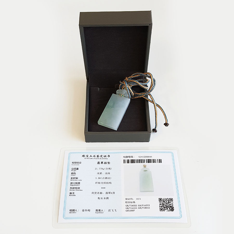 名称 | 天然糯冰种春带彩平安无事牌翡翠(吉祥、如意)吊坠项链 |