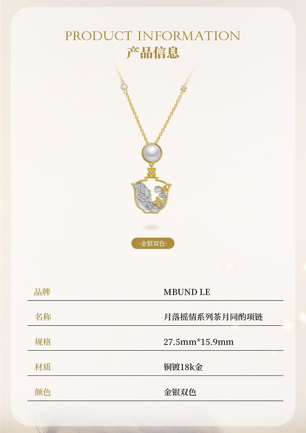 摩邦珠宝 月落摇情系列茶月同酌项链
