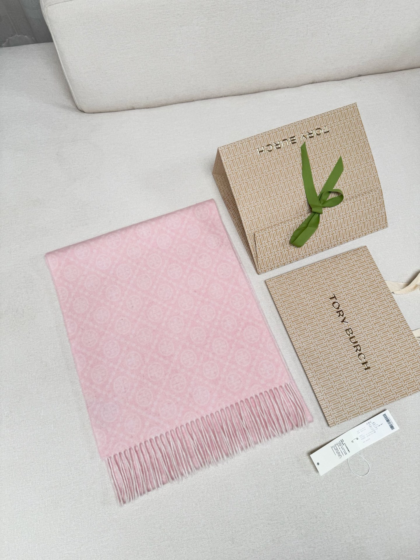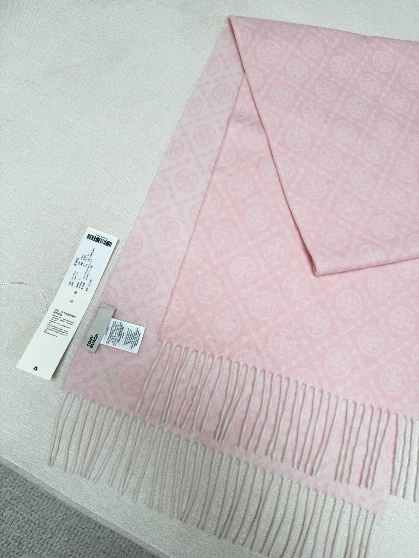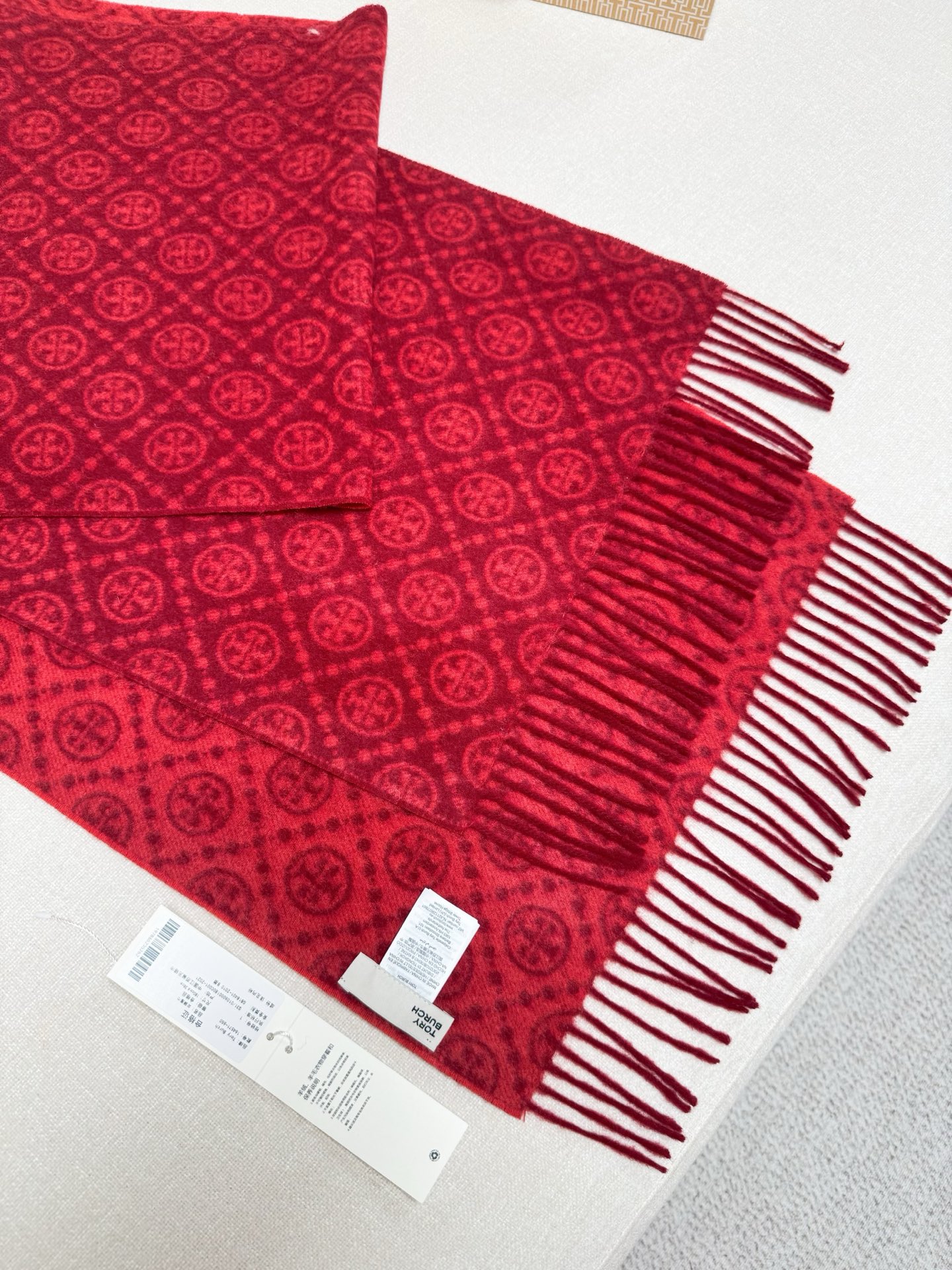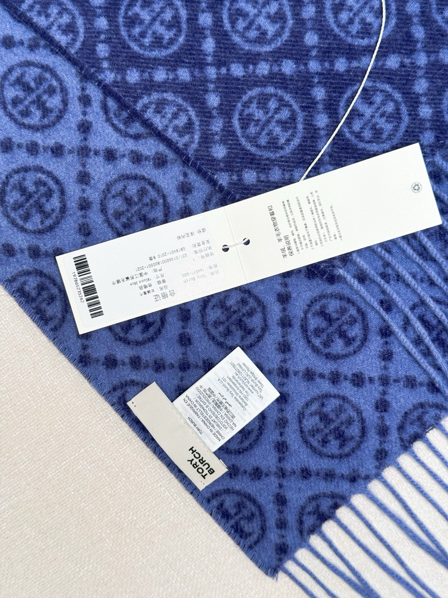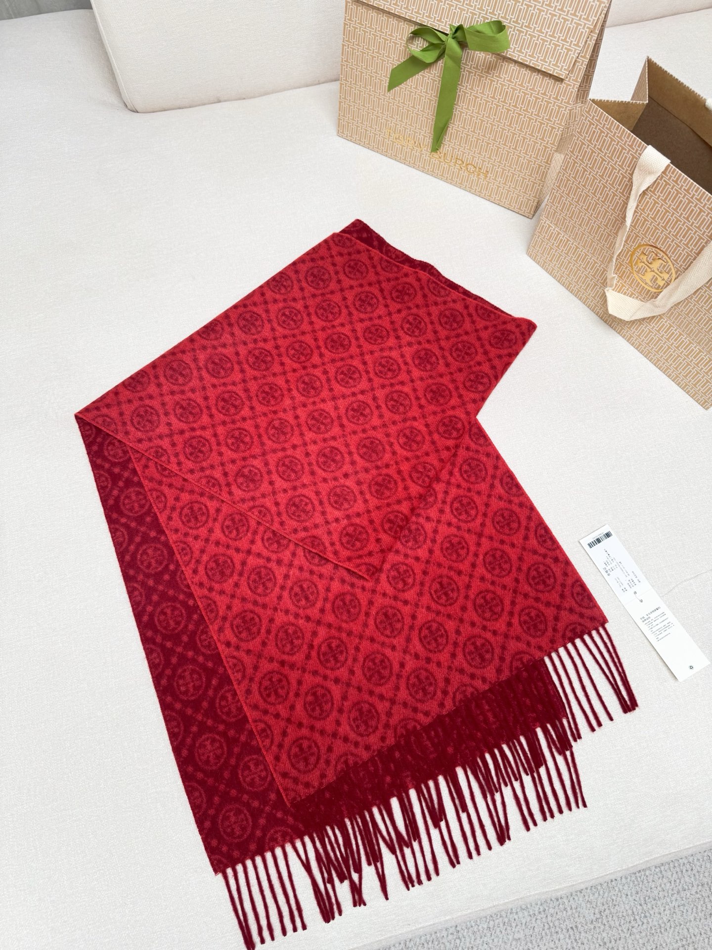 TORY BURCH.TB 原版包装,信封包装➕手提袋 材质:90%绵羊羊毛+10%山羊绒 尺寸:180CM*38CM 顶部和底部饰以扭结式流苏,轻奢搭配,简单的深浅印花大logo上身很有气质,超级百搭,个性小姐姐轻奢选择,不张扬,凸显温柔气质!