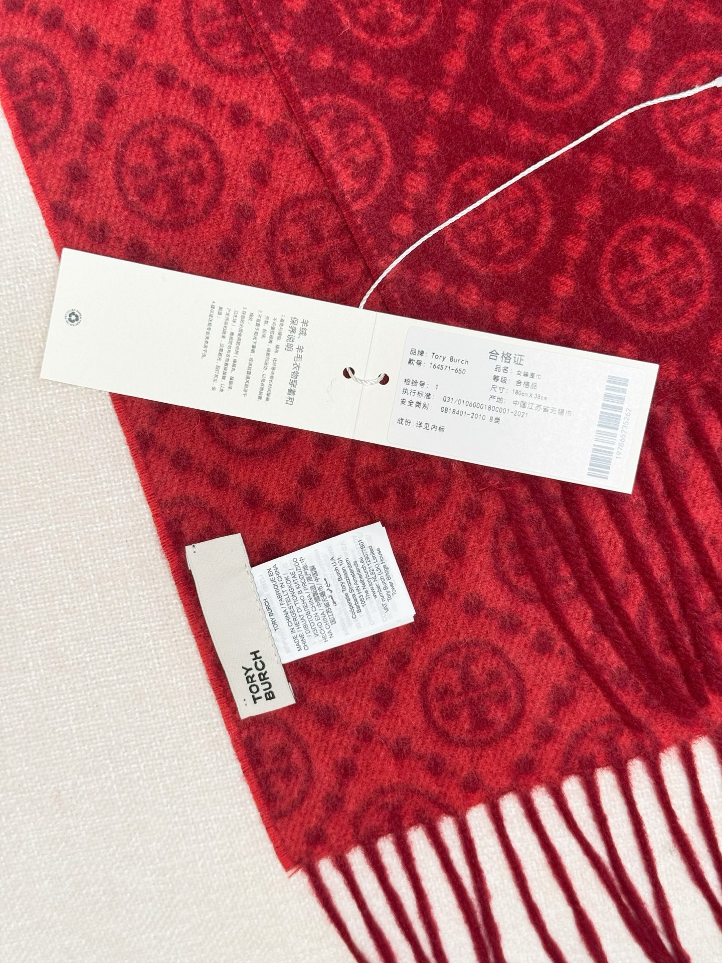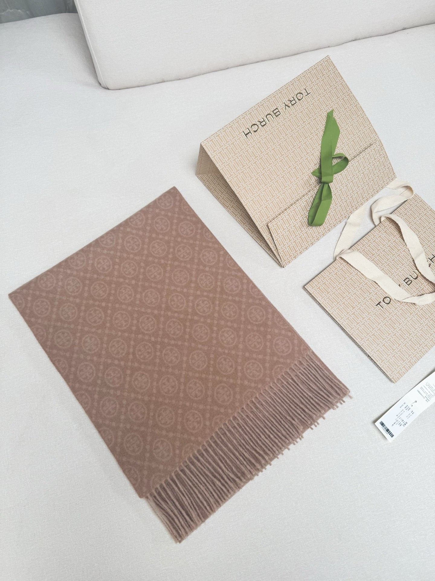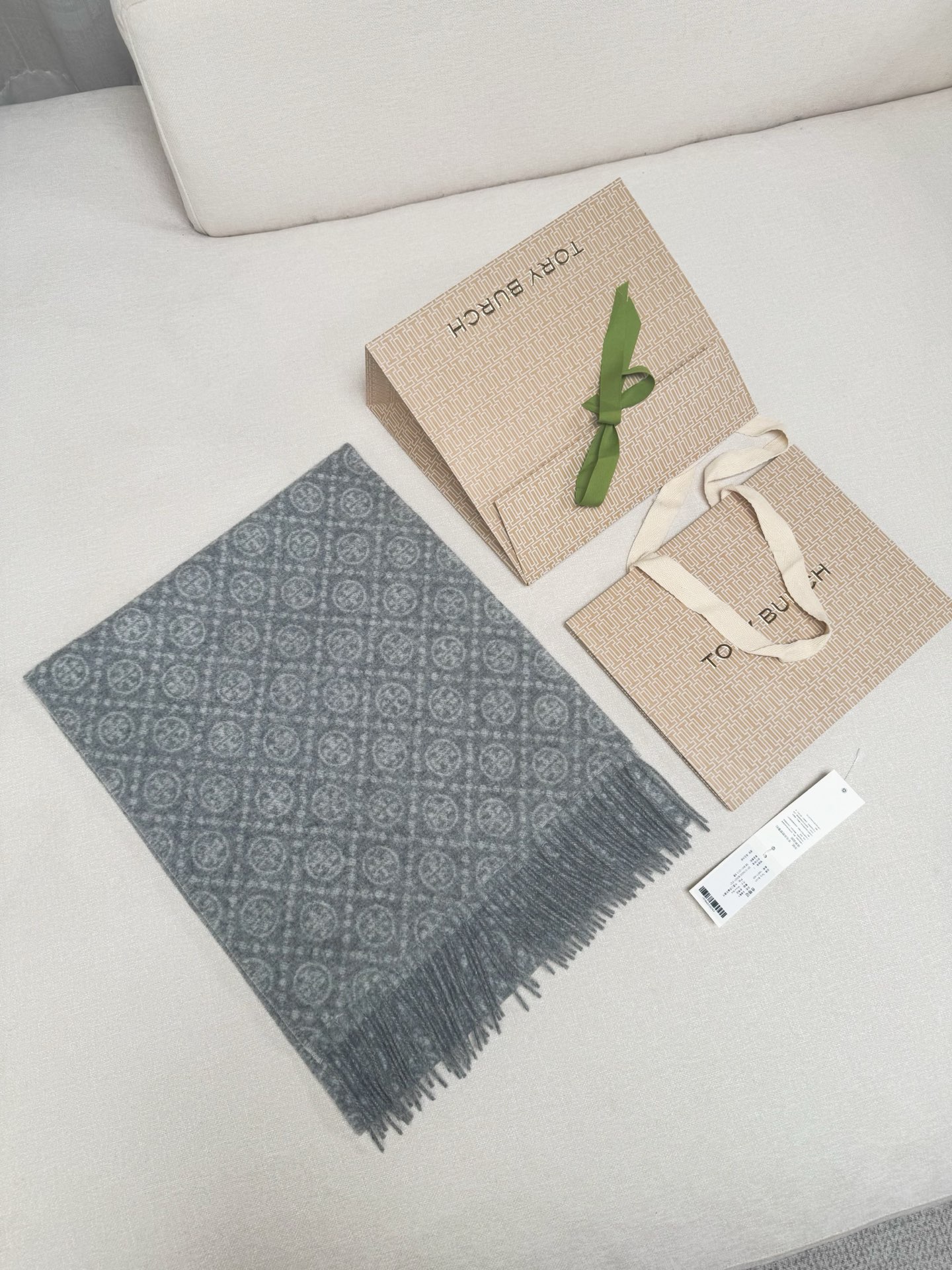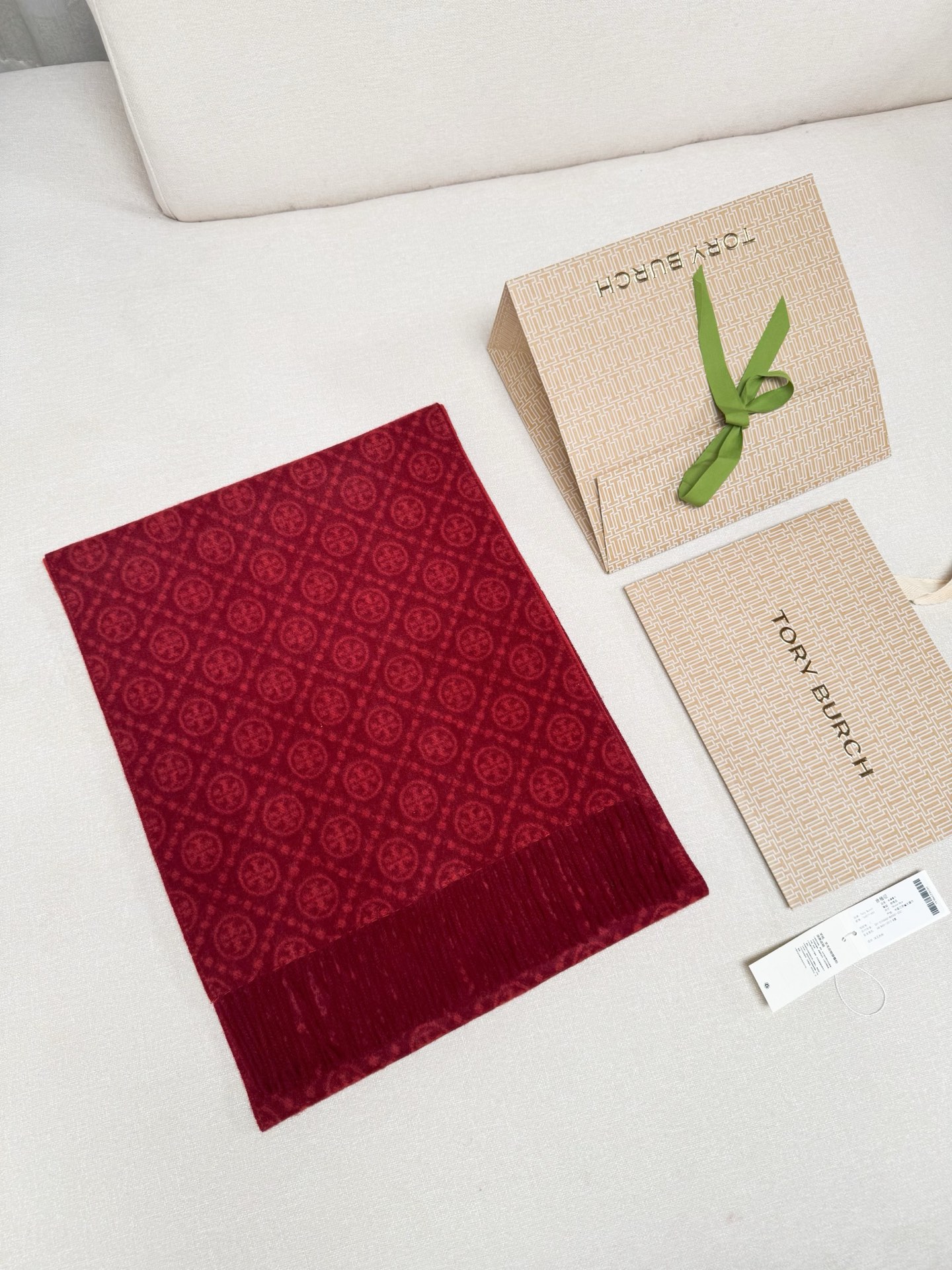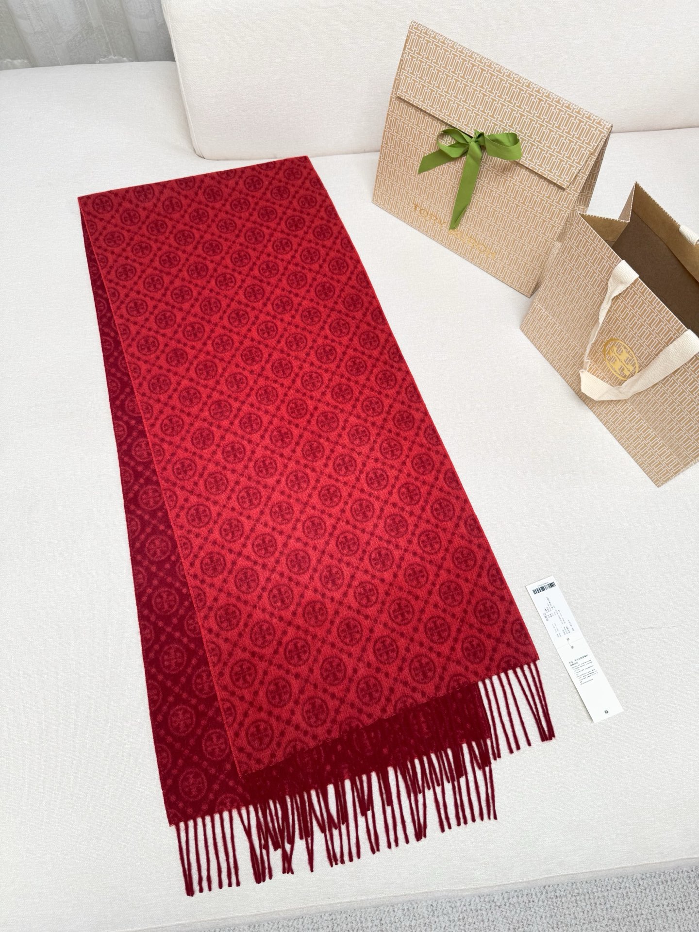 TORY BURCH.TB 原版包装,信封包装➕手提袋 材质:90%绵羊羊毛+10%山羊绒 尺寸:180CM*38CM 顶部和底部饰以扭结式流苏,轻奢搭配,简单的深浅印花大logo上身很有气质,超级百搭,个性小姐姐轻奢选择,不张扬,凸显温柔气质!