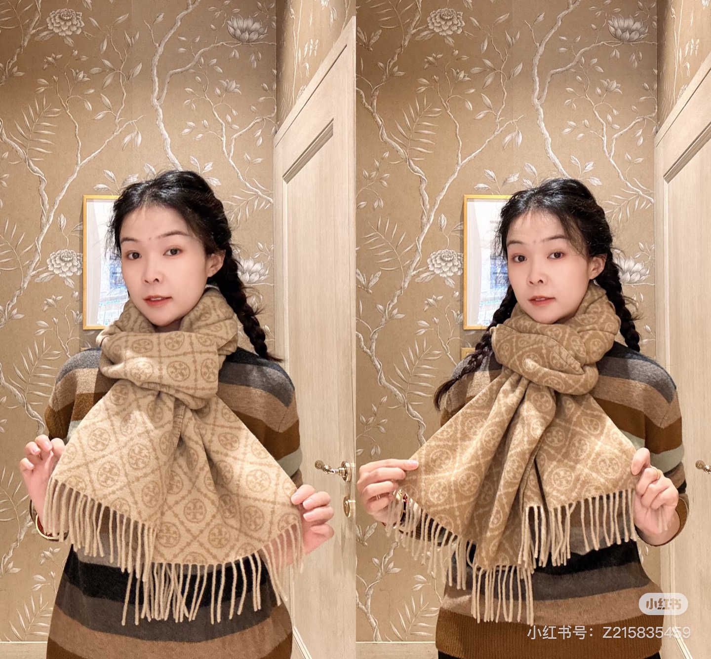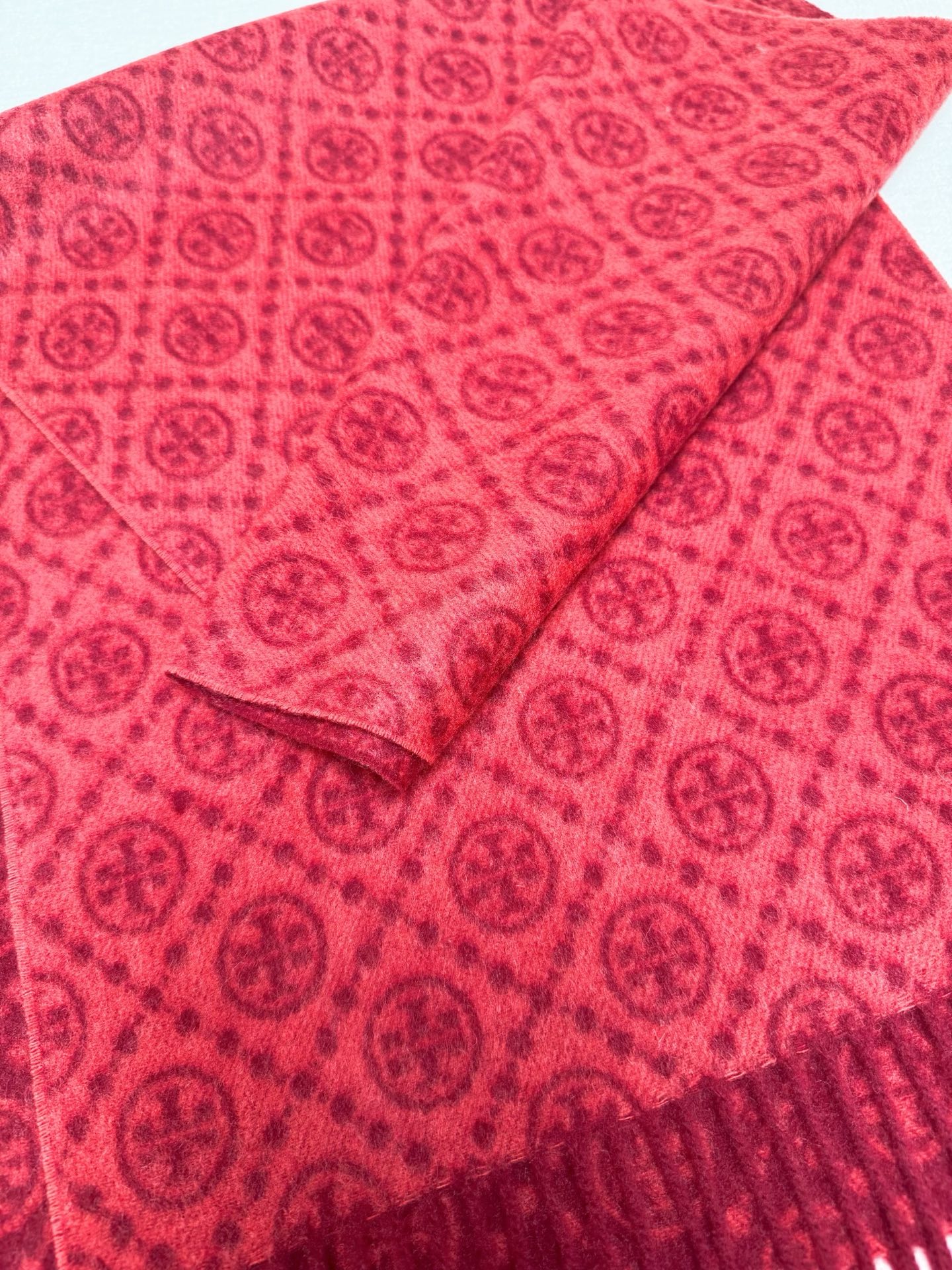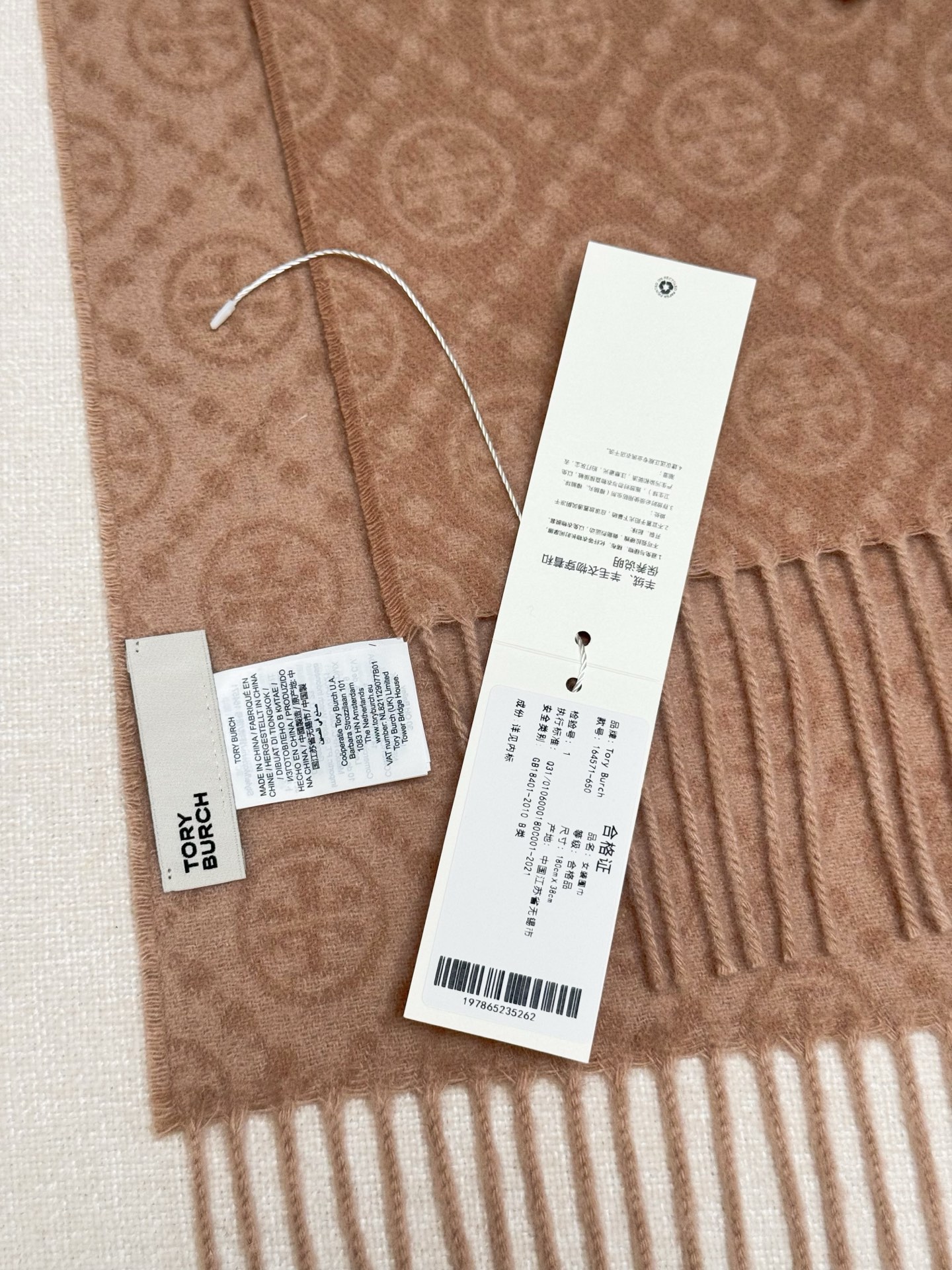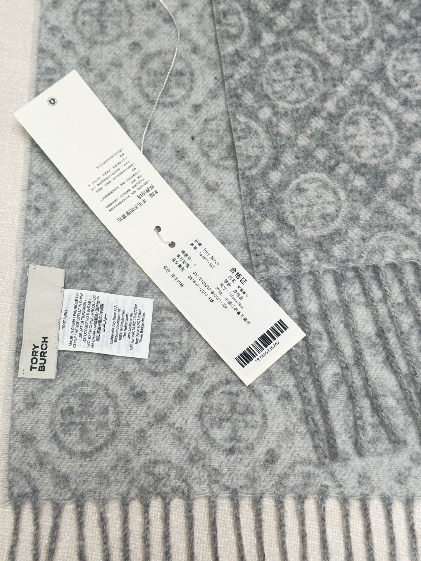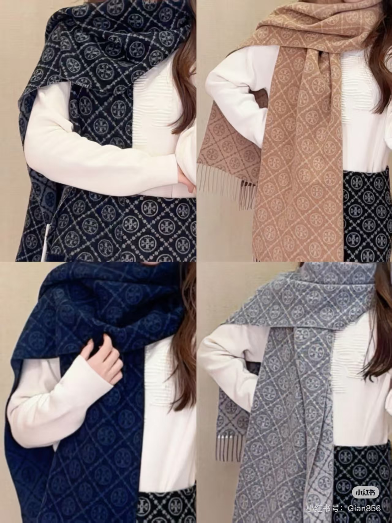 TORY BURCH.TB 原版包装,信封包装➕手提袋 材质:90%绵羊羊毛+10%山羊绒 尺寸:180CM*38CM 顶部和底部饰以扭结式流苏,轻奢搭配,简单的深浅印花大logo上身很有气质,超级百搭,个性小姐姐轻奢选择,不张扬,凸显温柔气质!