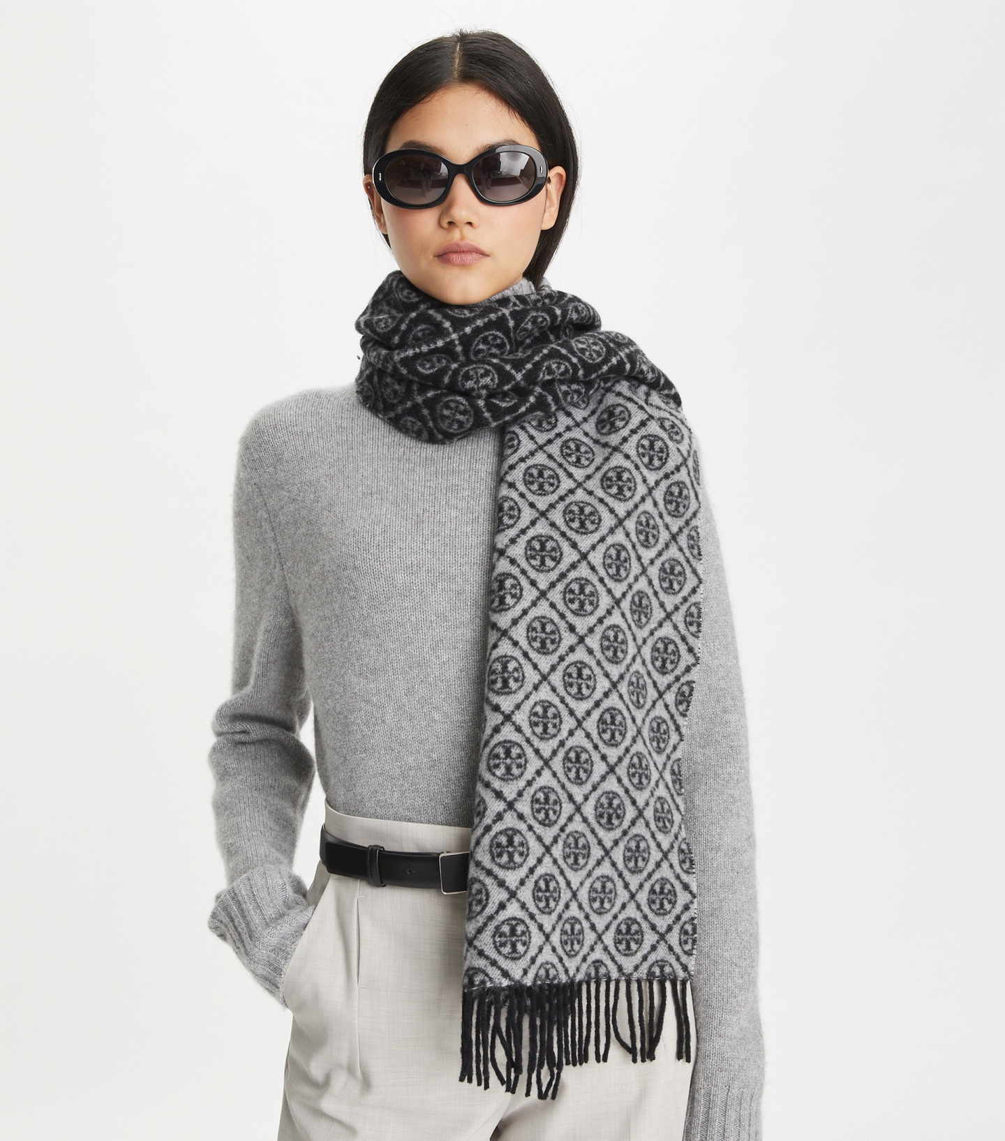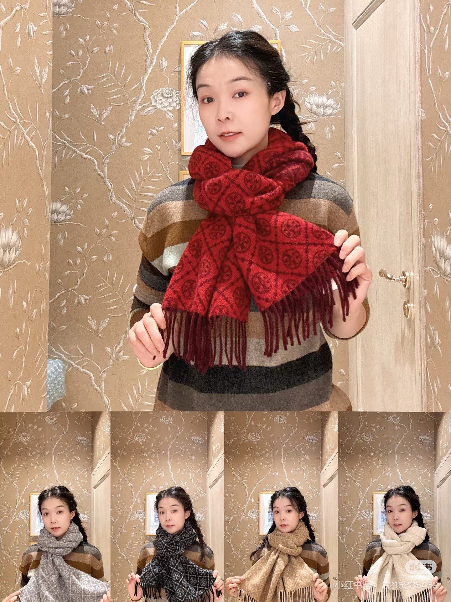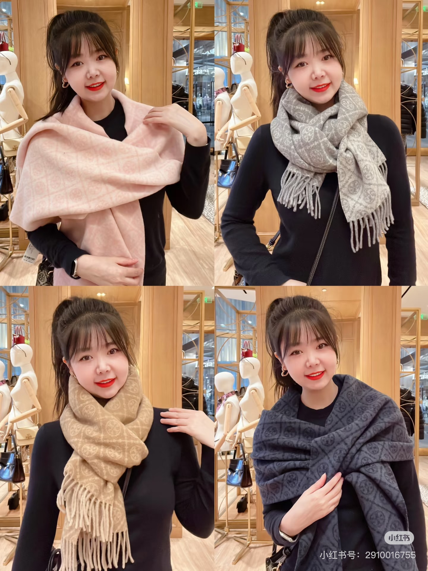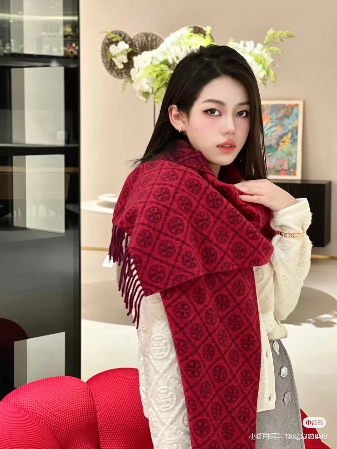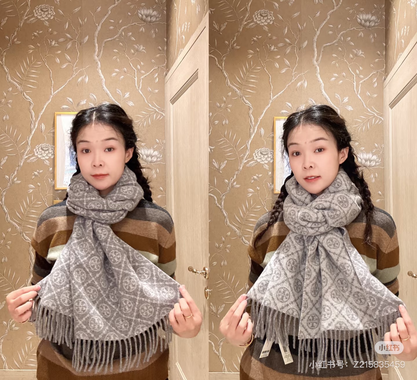 TORY BURCH.TB 原版包装,信封包装➕手提袋 材质:90%绵羊羊毛+10%山羊绒 尺寸:180CM*38CM 顶部和底部饰以扭结式流苏,轻奢搭配,简单的深浅印花大logo上身很有气质,超级百搭,个性小姐姐轻奢选择,不张扬,凸显温柔气质!