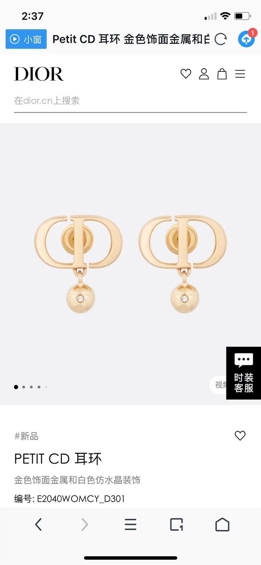 新款 DIOR耳环;一致专柜品质,黄酮材质+施华洛世奇单钻,百搭时髦值得入手 配全套包装