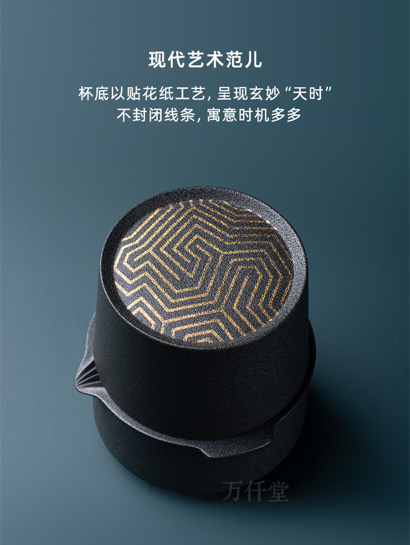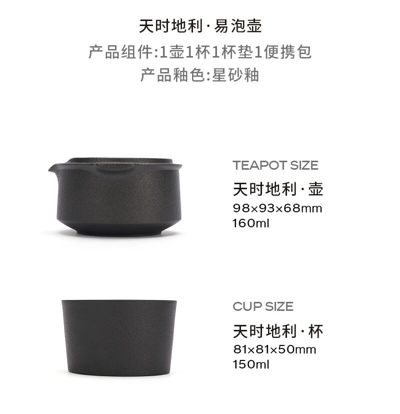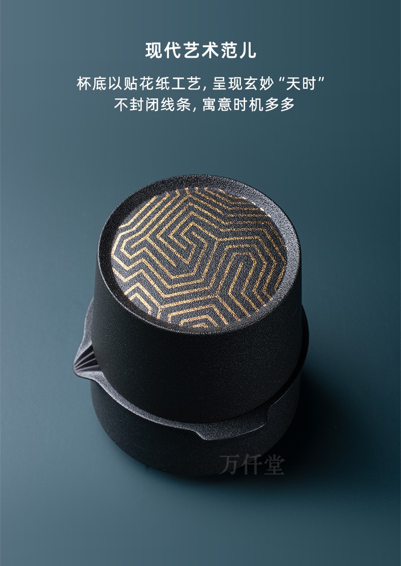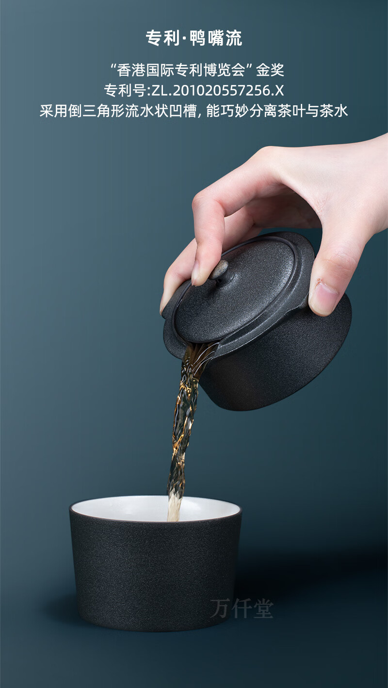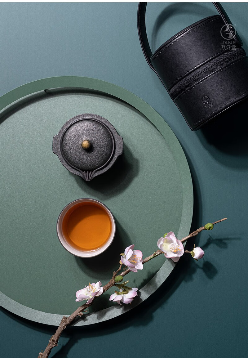 万仟堂 茶具 单人旅行茶具套装便携包快客杯一壶一杯礼品茶具 天时地利A 星砂釉 1壶1杯1便携包