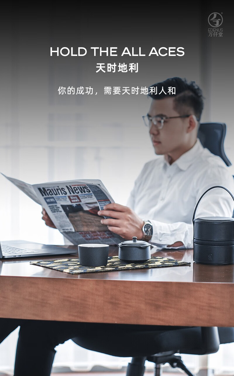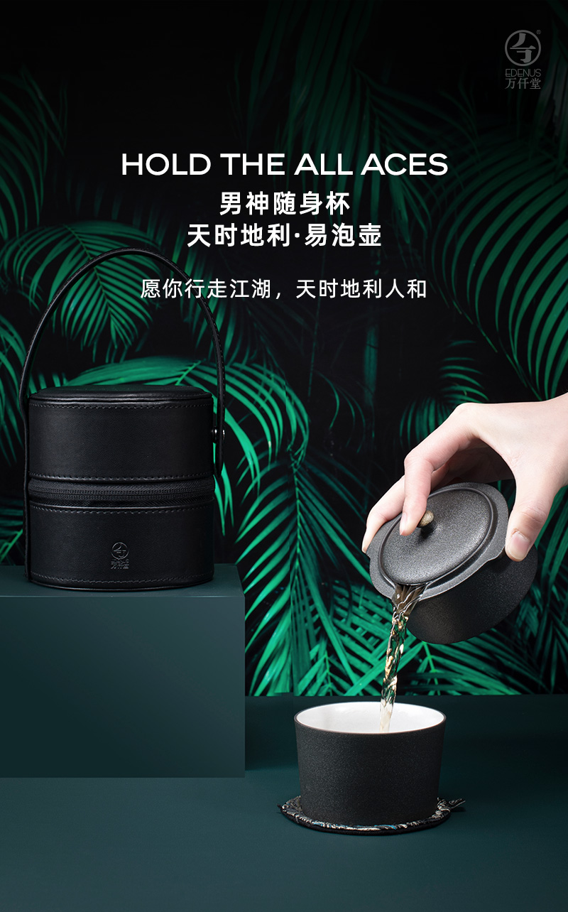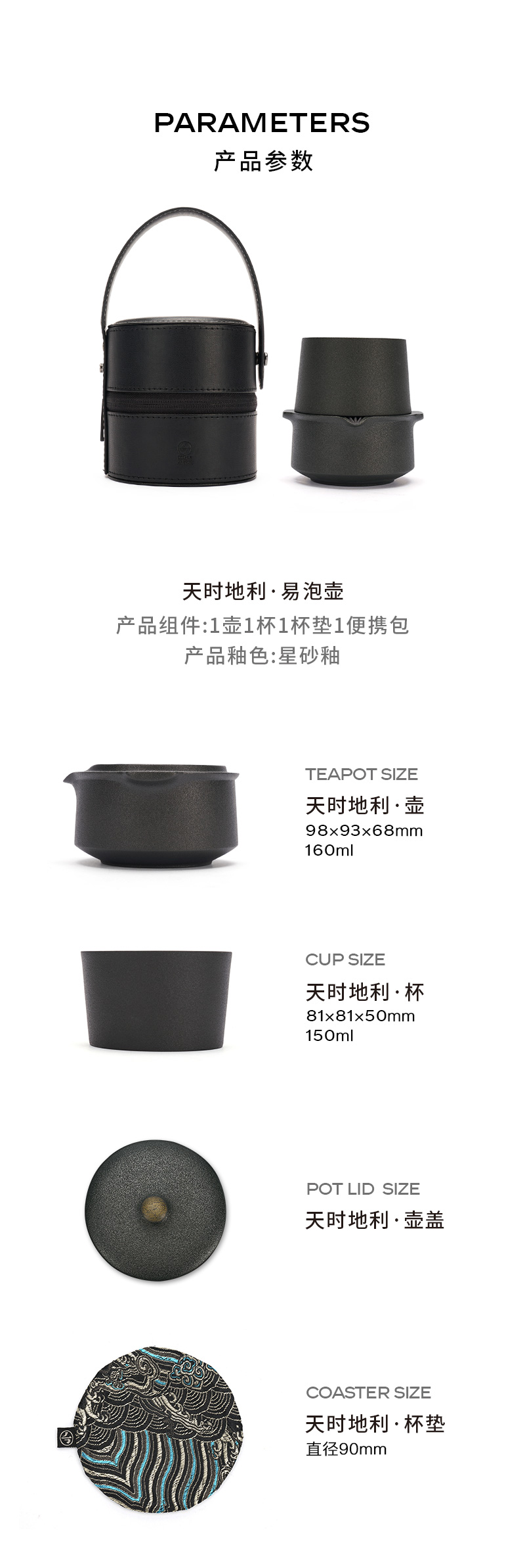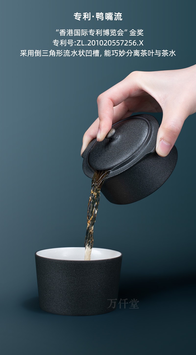 万仟堂 茶具 单人旅行茶具套装便携包快客杯一壶一杯礼品茶具 天时地利A 星砂釉 1壶1杯1便携包