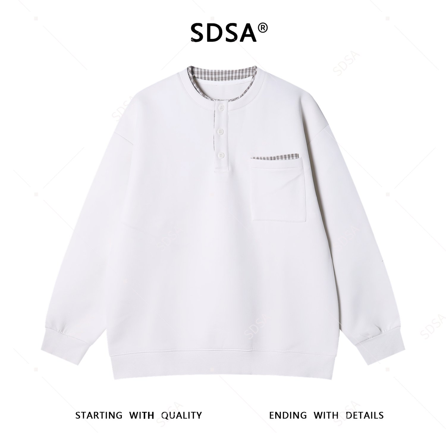 9537SDSA秋冬新款痞帅男装时尚简约拼接半纽扣圆领卫衣百搭宽松上衣